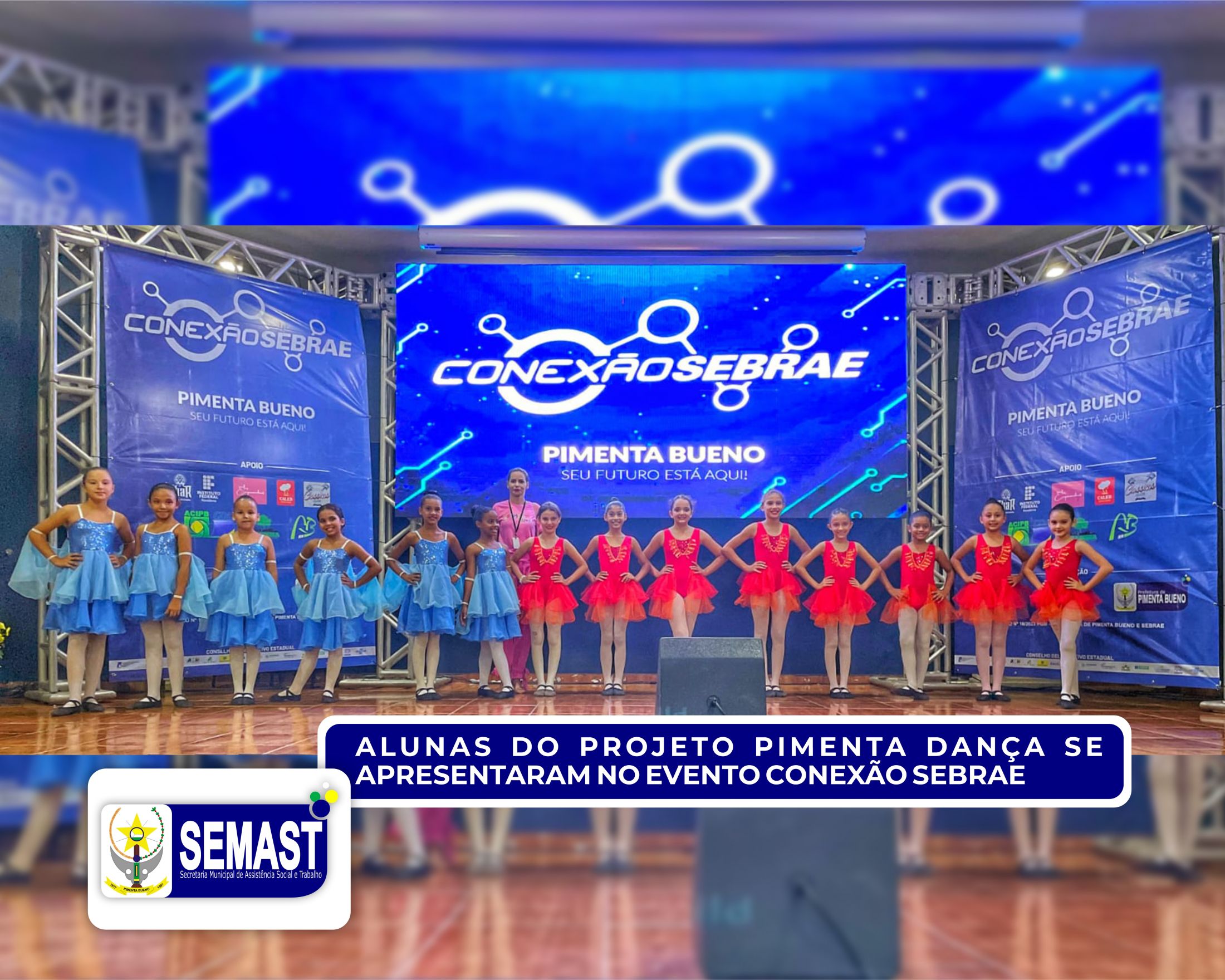 Nos dias 08 e 09 de agosto/2023, atendendo o convite da Prefeitura Municipal de Pimenta Bueno e do SEBRAE, alunas de quatro turmas do Projeto Pimenta Dança, projeto social realizado pela SEMAST no bairro Nova Pimenta, se apresentaram no Evento Conexão Sebrae, sediado neste Município. As coreografias apresentadas fazem parte do repertório do Espetáculo de Dança “Jardim Encantado”.