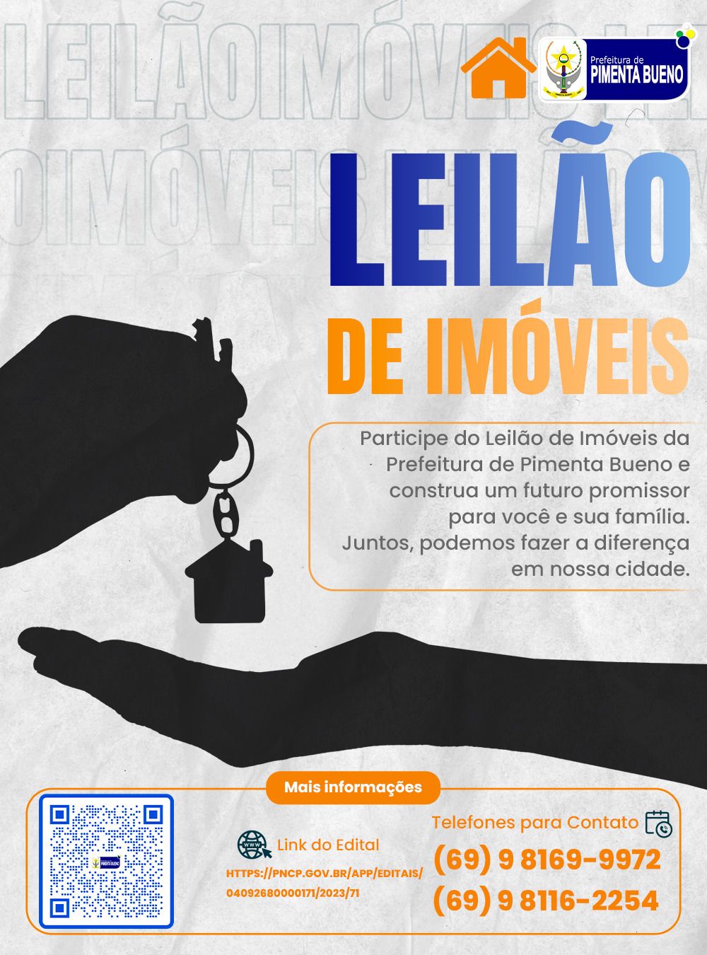 Participe do Leilão de Imóveis da Prefeitura e faça a diferença na nossa cidade. O futuro de Pimenta Bueno depende de todos nós.