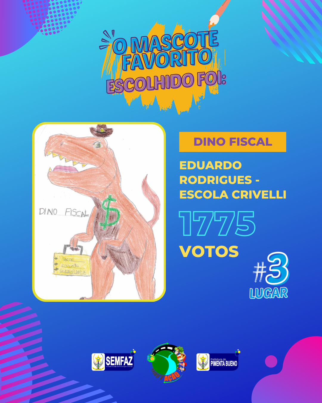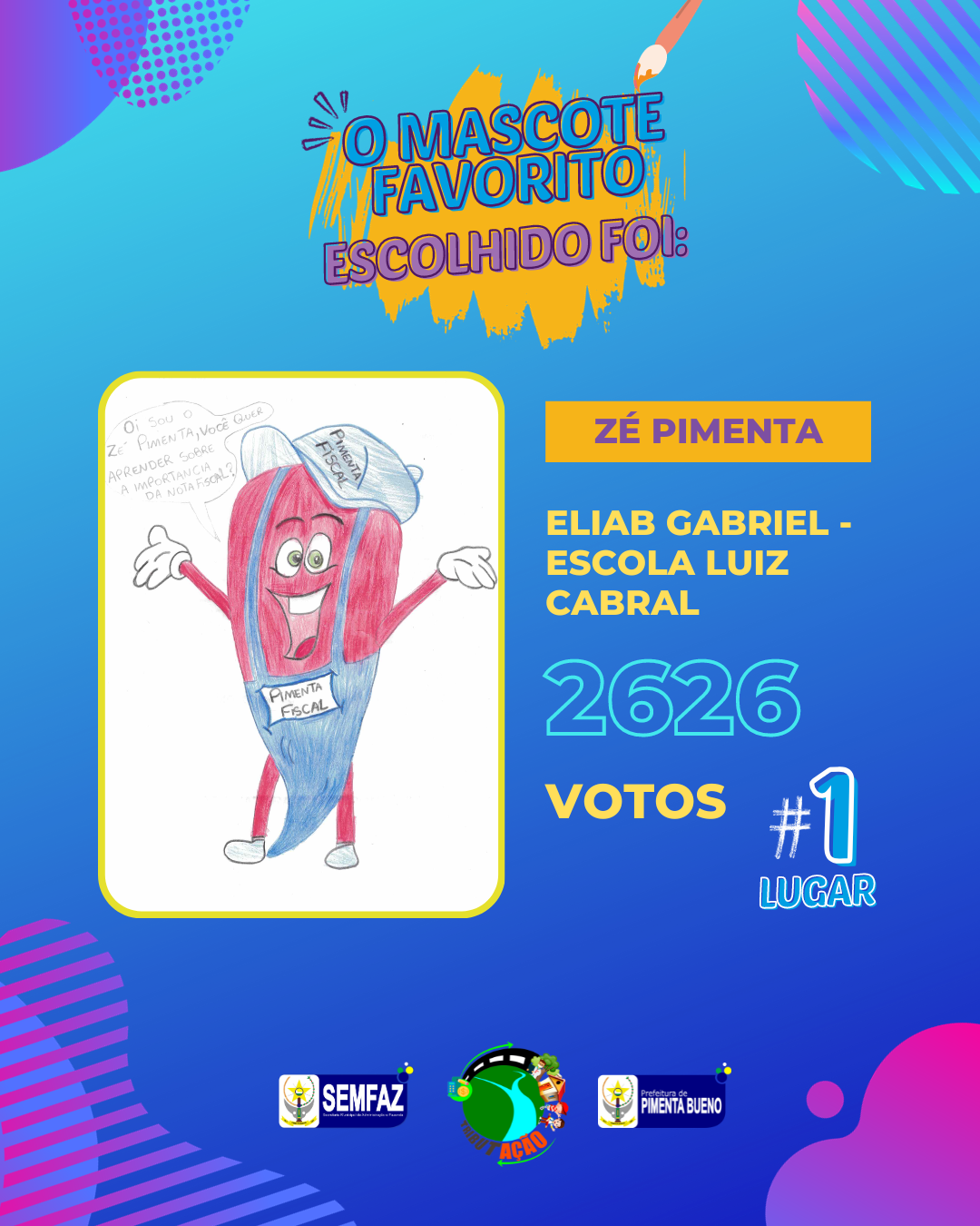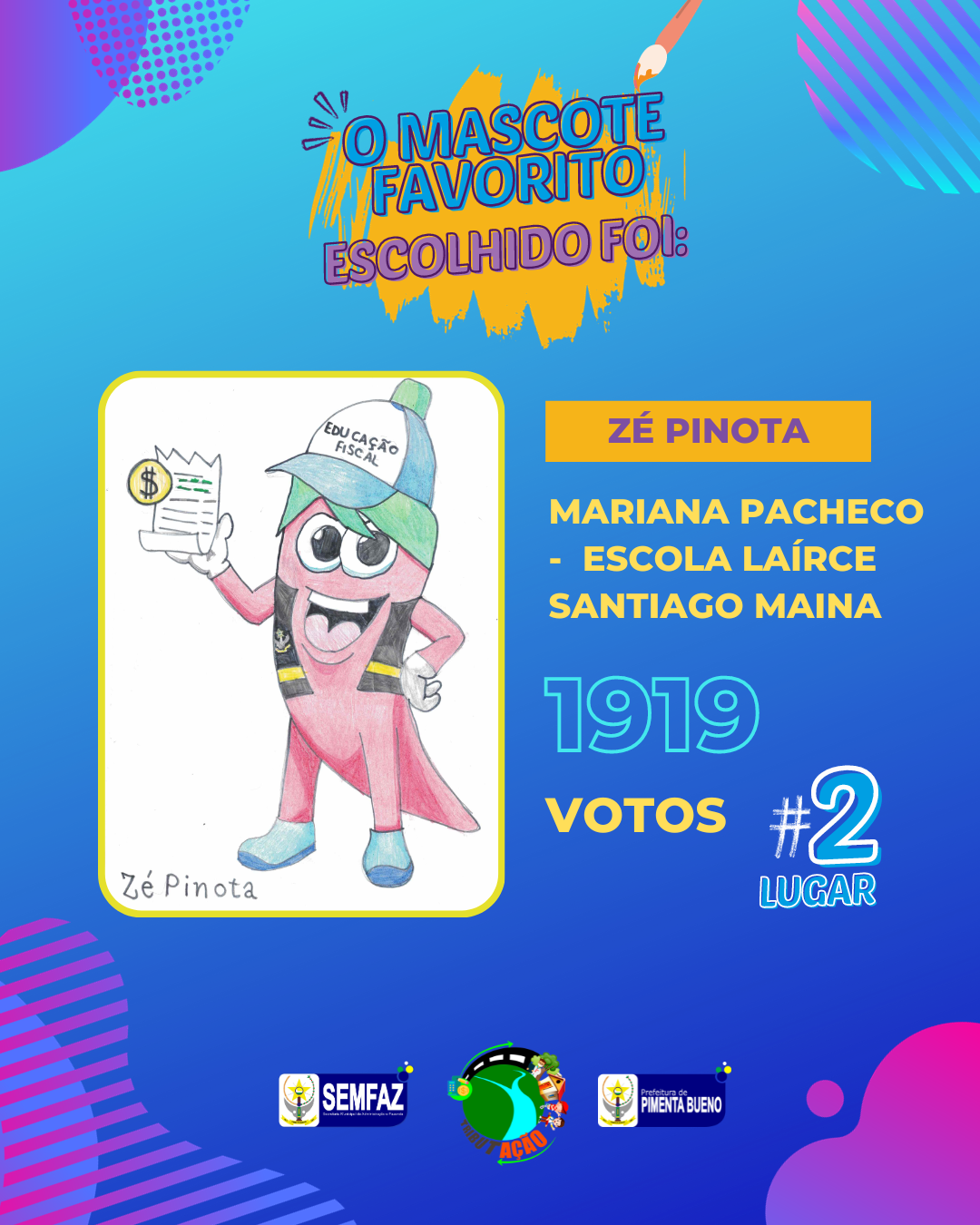 É com grande satisfação que anunciamos os vencedores do Concurso Mascote da Educação Fiscal de Pimenta Bueno. Após uma competição acirrada, os seguintes participantes se destacaram e conquistaram o título de criadores do mascote que representará nossa Educação Fiscal: