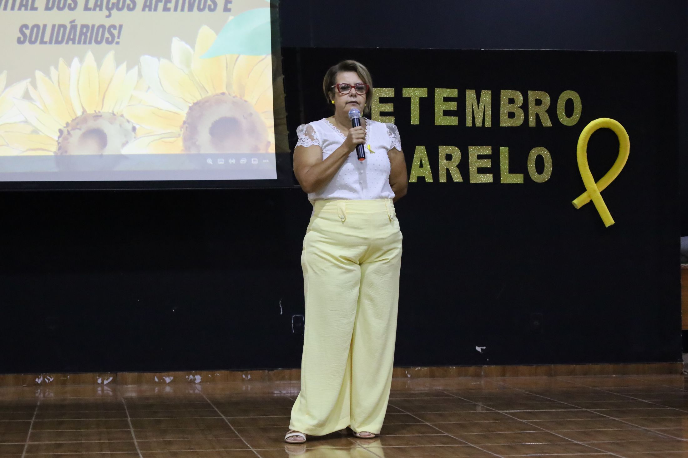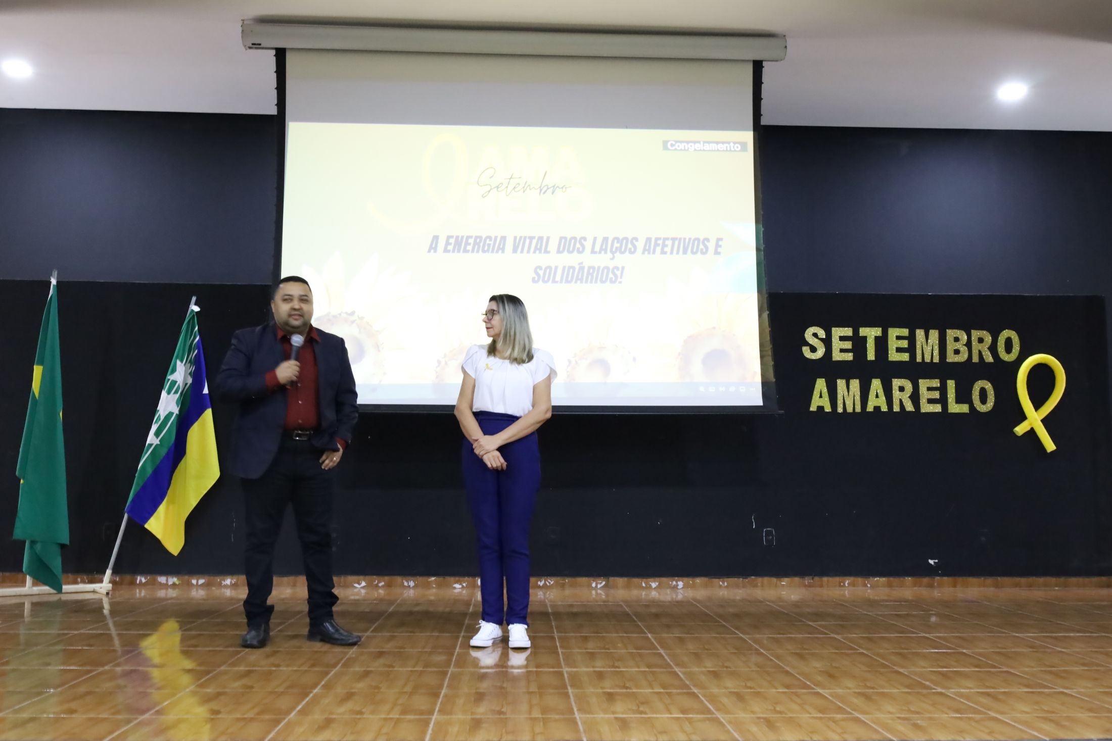 De início, Elizane da abertura ao evento com uma exposição sobre a origem do setembro amarelo e sua importância; a Secretária de Educação, Marcilene Rodrigues em sua fala aborda a necessidade de diálogos sobre o suicídio e sua prevenção, e como podemos acolher pessoas em sofrimento; o vereador Sóstenes Silva, reforça que precisamos desfazer mitos sobre o suicídio e pontua atitudes favoráveis para a prevenção; a Psicopedagoga da SEMED, Helena Grilli explorou a poesia “Metade” de Osvaldo Montenegro, complementando com a música “Manhas de setembro” da cantora Vanusa, abordando de maneira reflexiva, o cuidado e a importância do outro e da vida; a Psicóloga Isabella Goulart realizou uma dinâmica com o público presente, o objetivo era promover vínculos e atitudes que fortaleçam a percepção e empatia com o próximo; o assessor técnico do núcleo de Psicologia Douglas Antoni abordou em palestra sobre “A energia vital dos laços afetivos e solidários”, reforçando a importância do fortalecimento das redes solidarias e afetivas e da sensibilidade com o outro, como alternativas de cuidado e prevenção ao auto extermínio; o Psicólogo Rudi Felberg, destacou em sua palestra a importância da escuta, ressaltando que em primeiro lugar precisamos ter espaço de fala e escuta como ponto fundamental, orientou também sobre as redes de apoio e tratamento.
