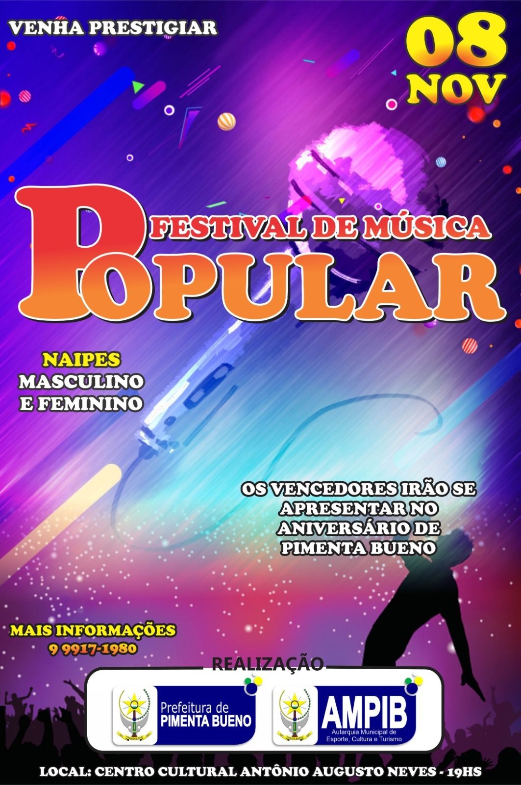 Festival de música popular acontecerá neste dia 08 em Pimenta Bueno, confira: