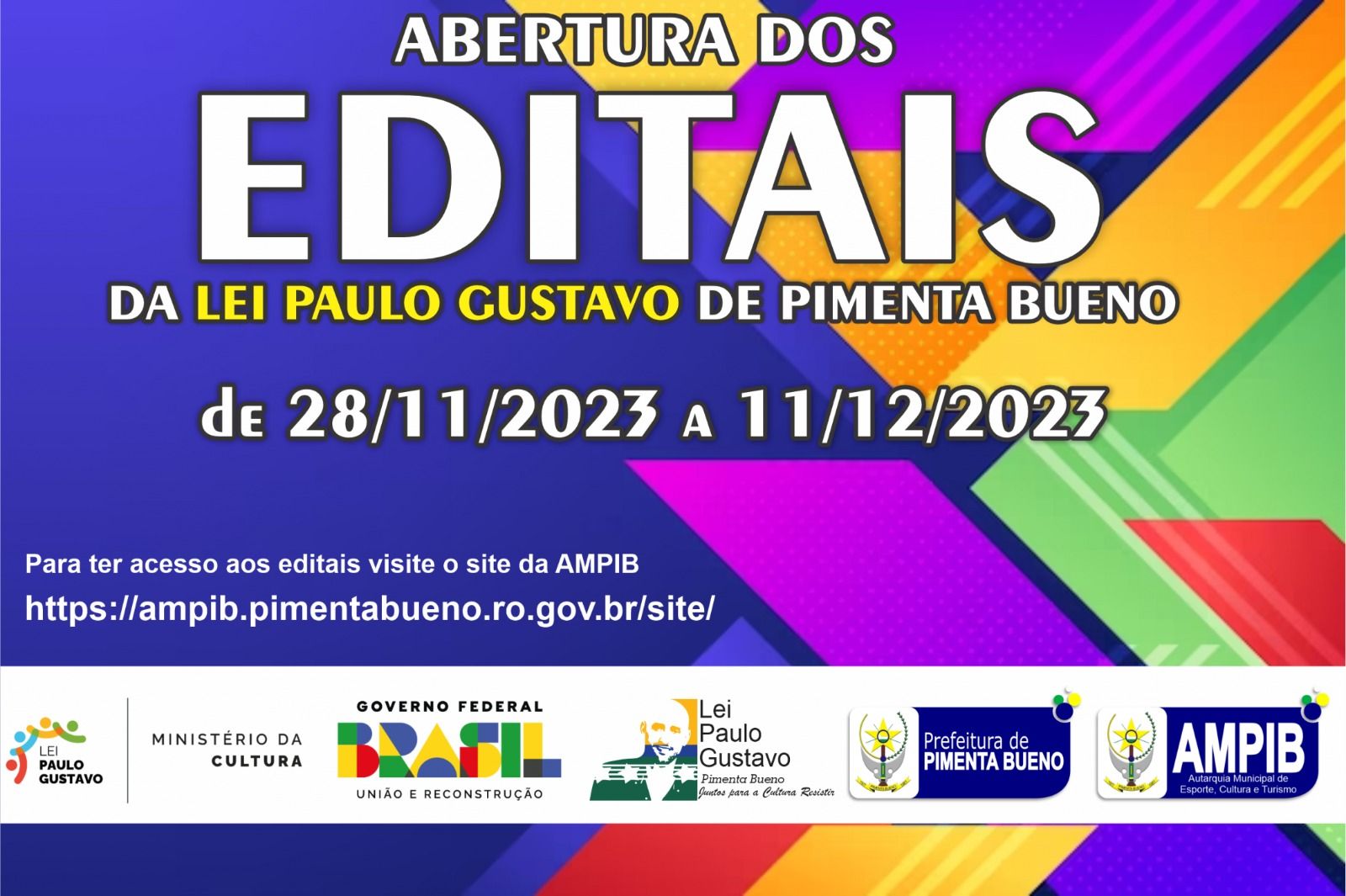 Em um passo significativo em direção ao fortalecimento da cultura, arte e audiovisual da cidade, a Prefeitura de Pimenta Bueno, por meio da Autarquia de Esporte, Cultura e Turismo (Ampib), lançou no último dia 28, os aguardados editais da Lei Paulo Gustavo. Essa iniciativa busca não apenas fomentar a produção cultural, mas também presta homenagem ao legado do saudoso ator brasileiro.