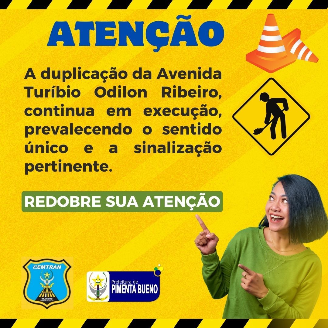A Avenida Turíbio Odilon Ribeiro está passando por melhorias! Estamos trabalhando para facilitar o trânsito. Contamos com a colaboração de todos os motoristas para garantir a fluidez, respeitando a sinalização.