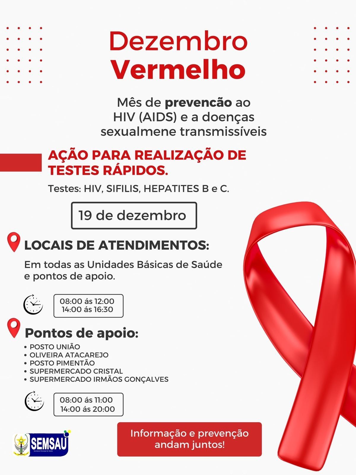 Atenção Pimenta Bueno, vem aí campanha dezembro vermelho, mês de prevenção ao HIV.