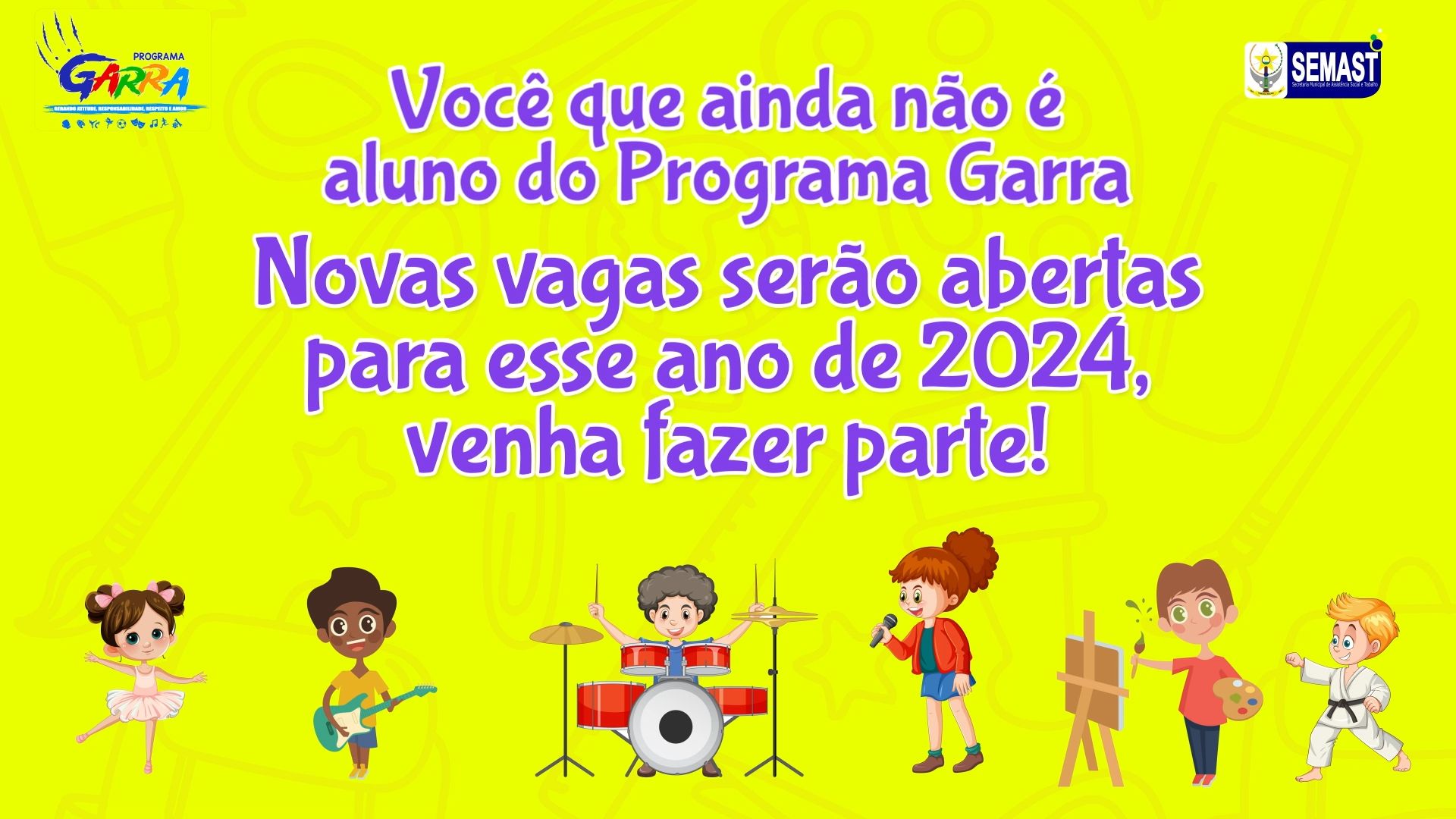 Você que ainda não é aluno do Programa Garra, novas vagas serão abertas para esse ano de 2024, venha fazer parte!