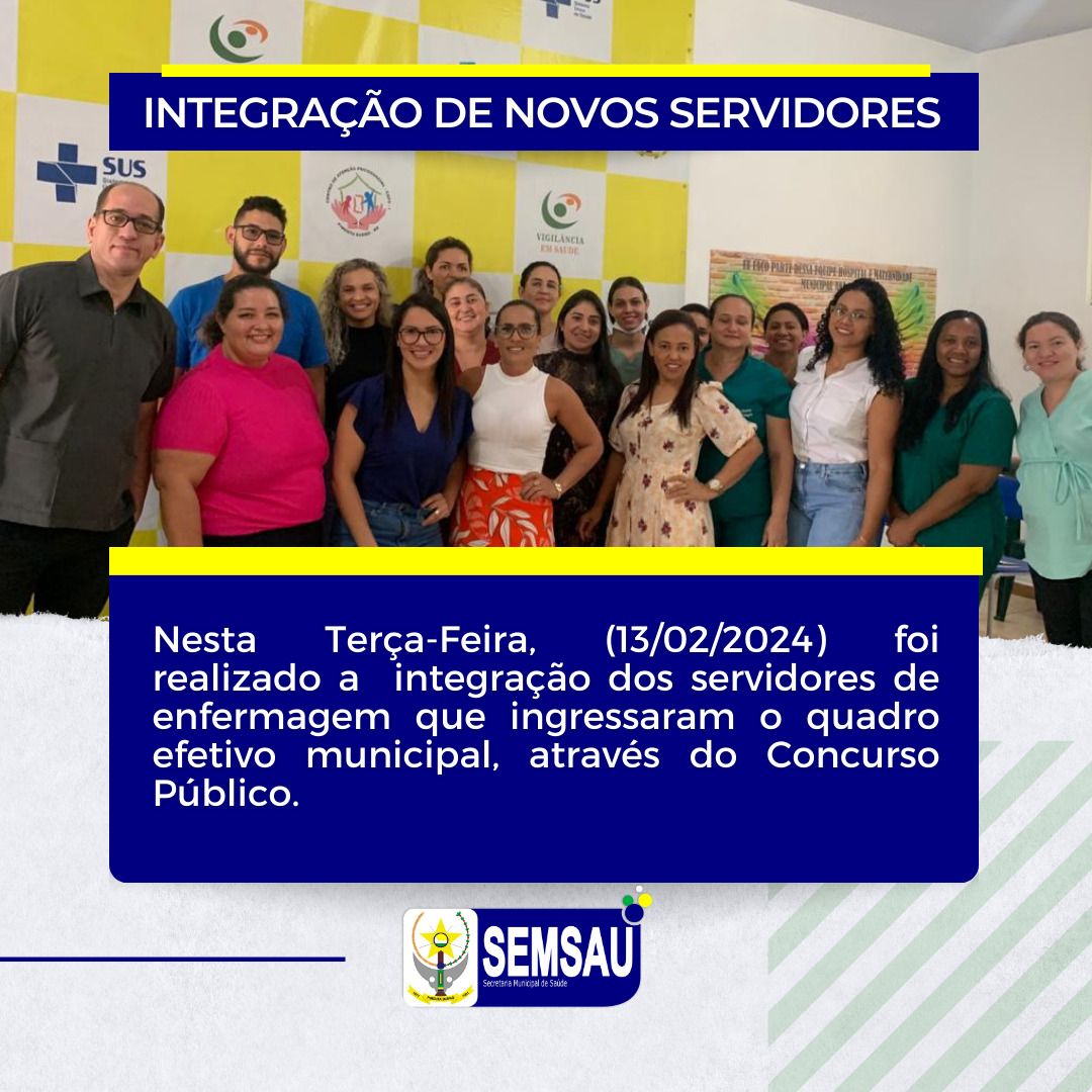 Nesta Terça-feira (13/02/2024), realizou-se no Hospital e Maternidade Municipal Ana Neta (HMMAN), a integração de servidores de enfermagem – 09 (nove) enfermeiros e 11 (onze) técnicos de enfermagem, que ingressaram o quadro efetivo de servidores por meio do Concurso Público. Os temas da integração, tinham como objetivo abordar o cumprimento da Lei Municipal nº 1.386/2007.