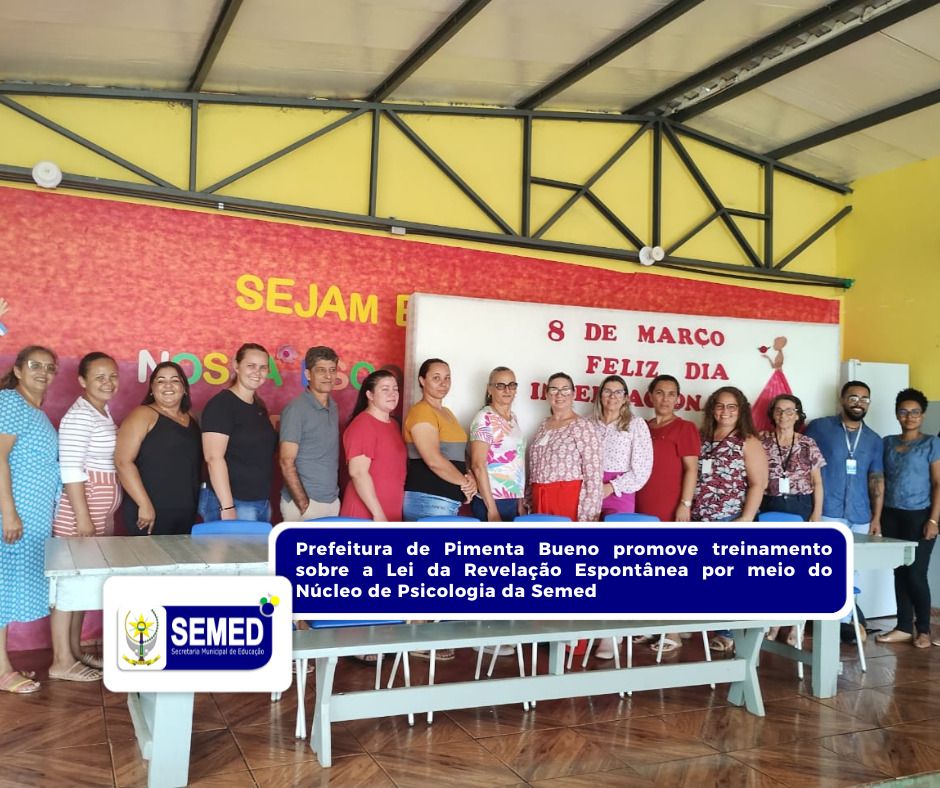 No dia 07 de março de 2024, a Prefeitura de Pimenta Bueno, através do COMGECO, CONDICRA e Secretaria Municipal de Educação (SEMED) e demais órgãos de proteção de direitos, organizou uma importante sensibilização e orientação sobre a Lei da Revelação Espontânea. O evento foi realizado pelo Núcleo de Psicologia Semed e teve como público-alvo os profissionais da Escola Águia Dourada, visando contribuir com orientações pertinentes à escuta e acolhimento para lidar com situações envolvendo vítimas e testemunhas de violência.