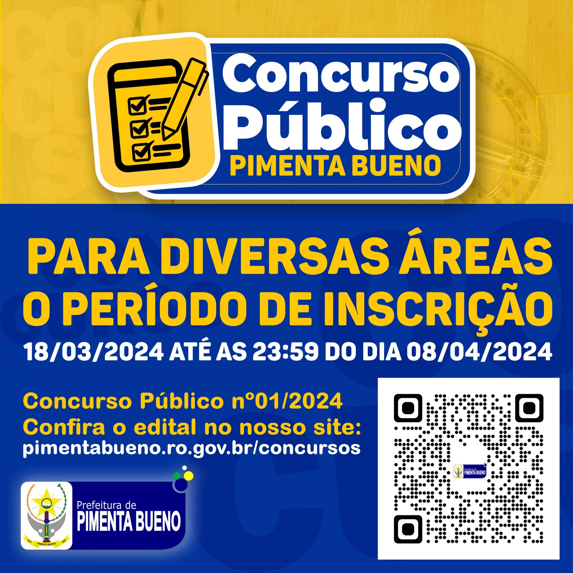 A Secretaria Municipal de Fazenda e Administração Geral, por meio da Comissão de Organização e Execução do Concurso Público nº 01/2024, conforme resultado do processo administrativo Nº 12.355/2023, anuncia a realização de um concurso público para preenchimento de cargos no quadro de servidores da Prefeitura do Município de Pimenta Bueno, em Rondônia.