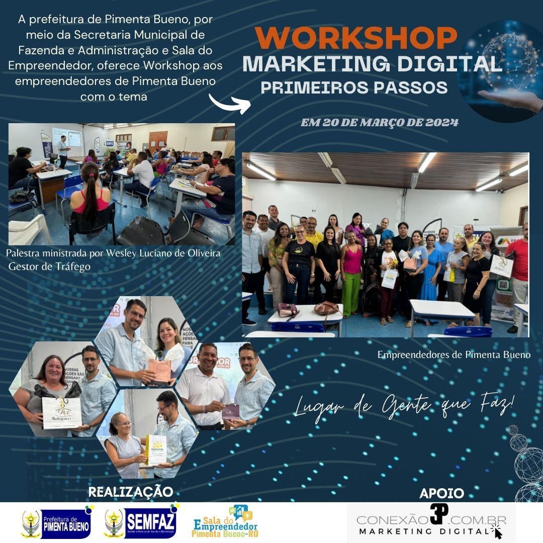 A prefeitura de Pimenta Bueno, por meio da Secretaria Municipal de Fazenda e Administração e Sala do Empreendedor, ofereceu Workshop aos empreendedores de Pimenta Bueno com o tema Marketing Digital – Primeiros Passos, ministrado por Wesley Luciano de Oliveira - Gestor de Tráfego.