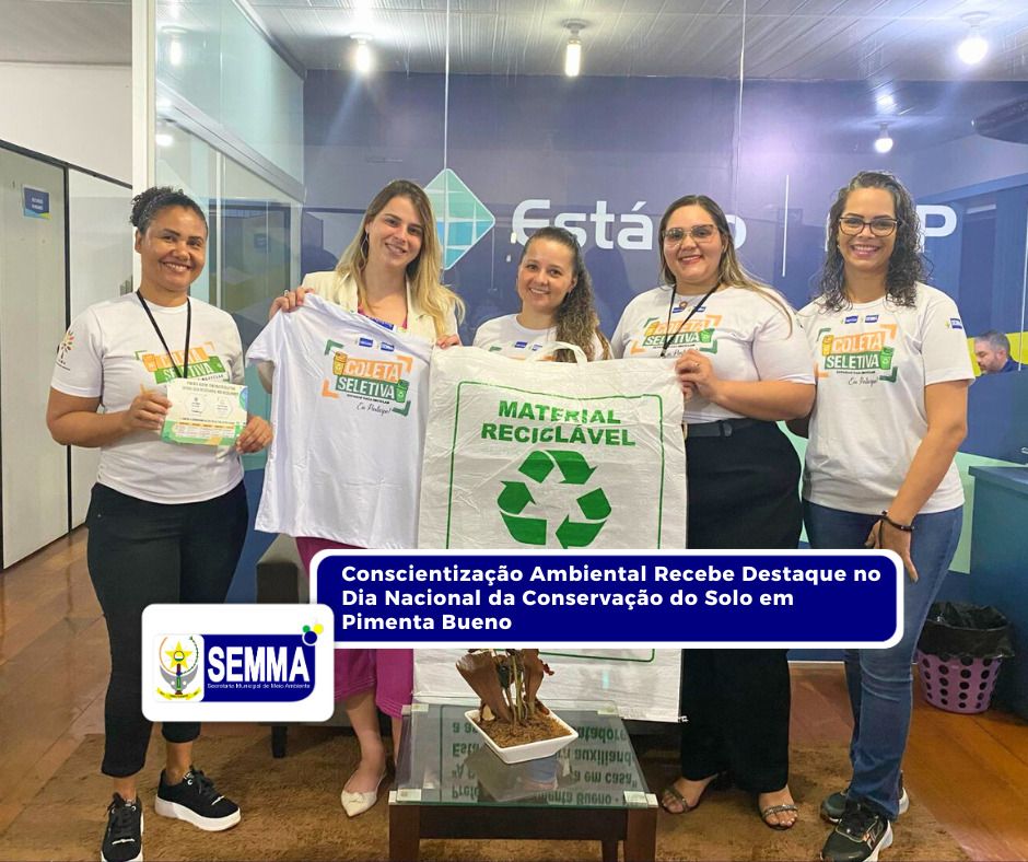 No "Dia Nacional da Conservação do Solo", a Secretaria Municipal de Meio Ambiente - SEMMA promoveu uma Educação Ambiental focada na conscientização sobre coleta seletiva e arborização, impactando positivamente o ambiente local.