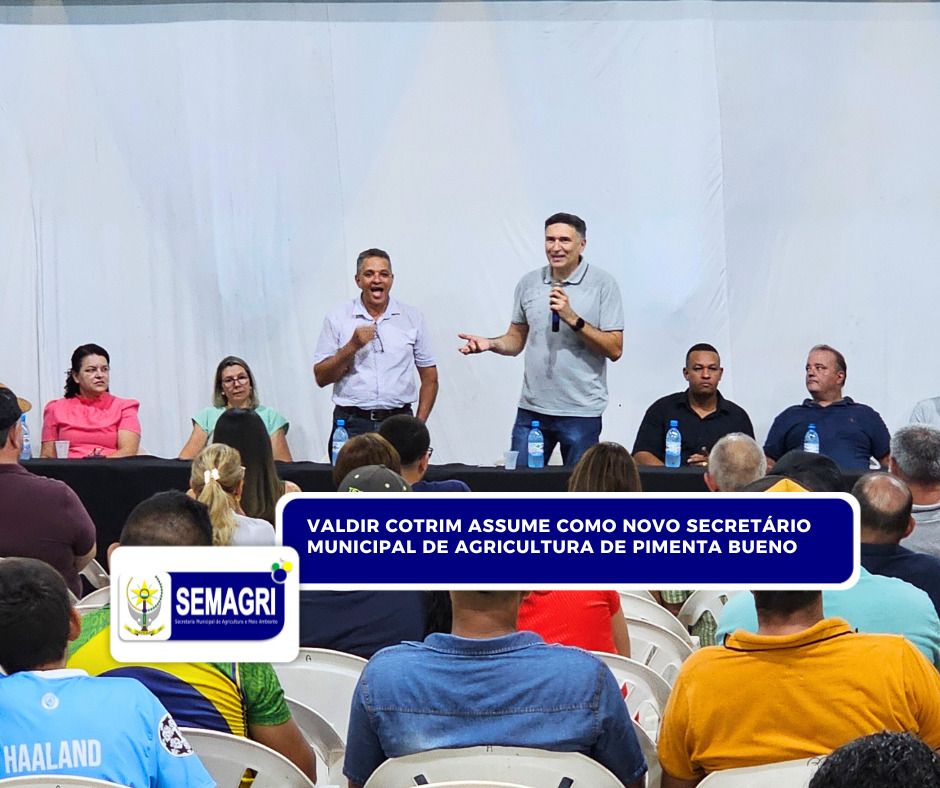 Pimenta Bueno deu as boas-vindas ao novo Secretário Municipal de Agricultura, Valdir Cotrim, em uma cerimônia realizada no Parque de Exposições nesta quinta-feira, 02 de maio. Com vasta experiência na área agrícola, Cotrim assumiu o cargo com o compromisso de impulsionar o desenvolvimento rural sustentável na região. A posse contou com a presença de autoridades locais, líderes comunitários e produtores rurais, que demonstraram apoio ao novo gestor.