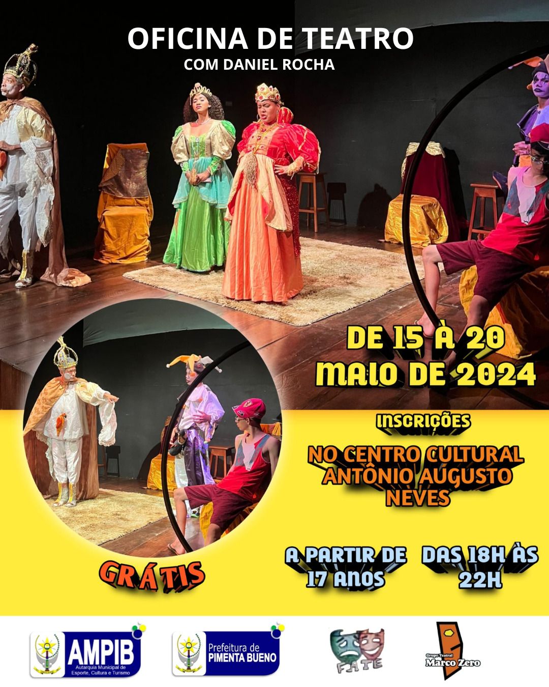 Prefeitura de Pimenta Bueno e Ampib Apresentam Oficina de Teatro Gratuita com Daniel Rocha