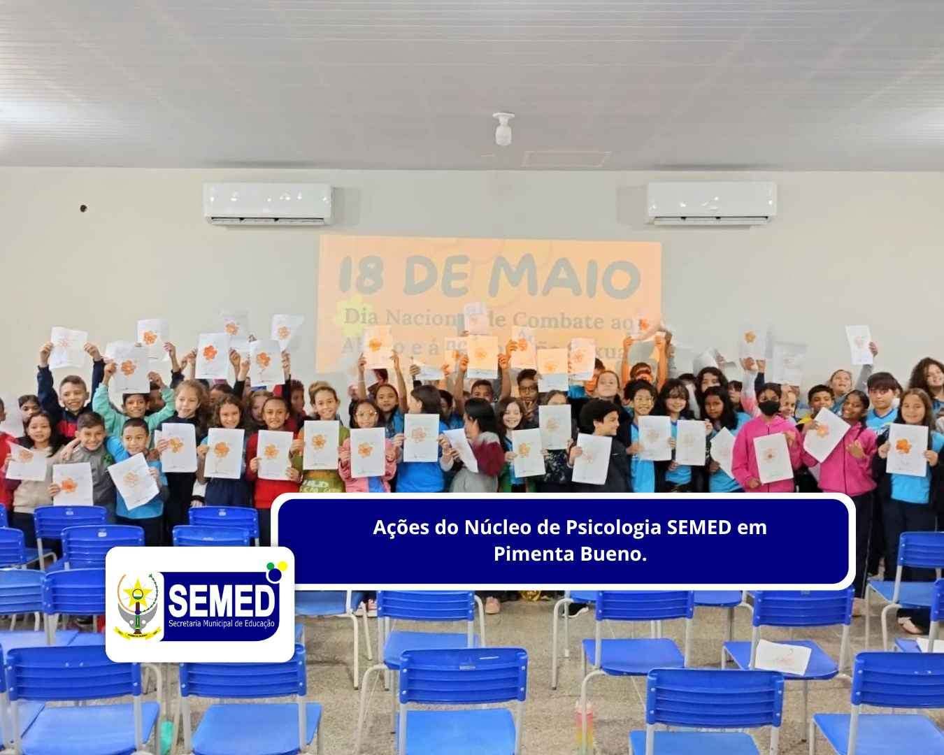 Em alusão ao Maio Laranja, o Núcleo de Psicologia da Secretaria Municipal de Educação (SEMED) de Pimenta Bueno realizou diversas atividades no mês de maio, em parceria com o Conselho Municipal dos Direitos da Criança e do Adolescente (CONDICRA), o Comitê Municipal de Gestão Colegiada da Rede de Cuidado e de Proteção Social das Crianças e dos Adolescentes Vítimas ou Testemunhas de Violência (COMGECO) e Conselho Tutelar, nas escolas públicas municipais. As ações tiveram como objetivo conscientizar e orientar a comunidade escolar sobre estratégias de prevenção e do enfrentamento da violência contra crianças e adolescentes. Foram realizados workshops e rodas de conversa com alunos, professores e familiares, abordando temas como o Estatuto da Criança e do Adolescente, os tipos de violência e as formas de denúncia.