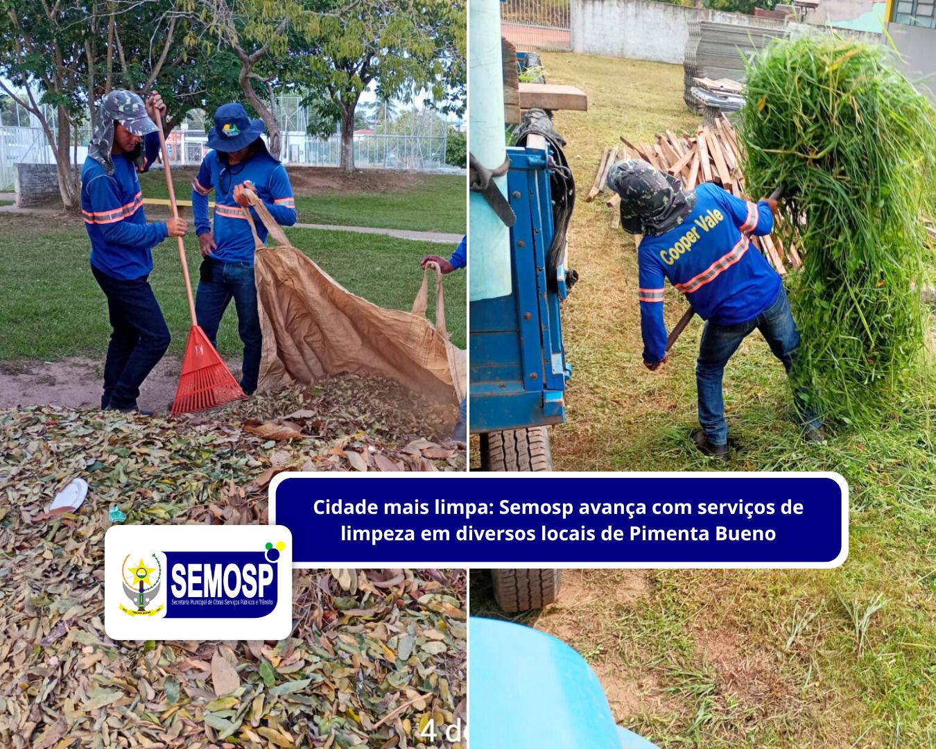 A Prefeitura de Pimenta Bueno, por meio da Secretaria Municipal de Obras (Semosp), continua avançando com seus serviços de limpeza, abrangendo diversas áreas da cidade. As equipes dedicadas seguem concentradas na manutenção dos espaços públicos e na remoção de galhos, garantindo um ambiente mais limpo e seguro para todos os cidadãos.