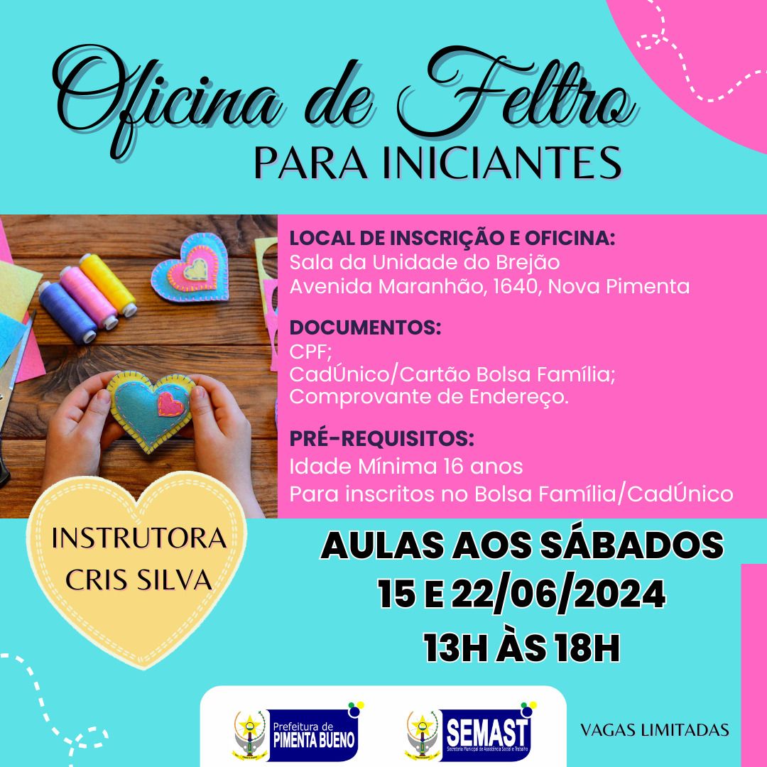 A Secretaria Municipal de Assistência Social e Trabalho – SEMAST, promove a OFICINA DE FELTRO.