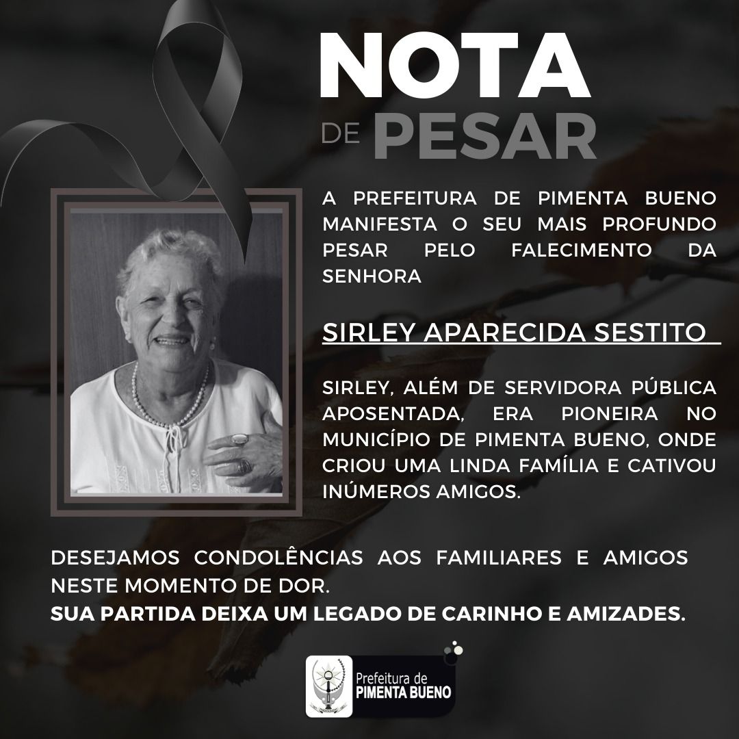 A Prefeitura de Pimenta Bueno manifesta o seu mais profundo pesar pelo falecimento da senhora