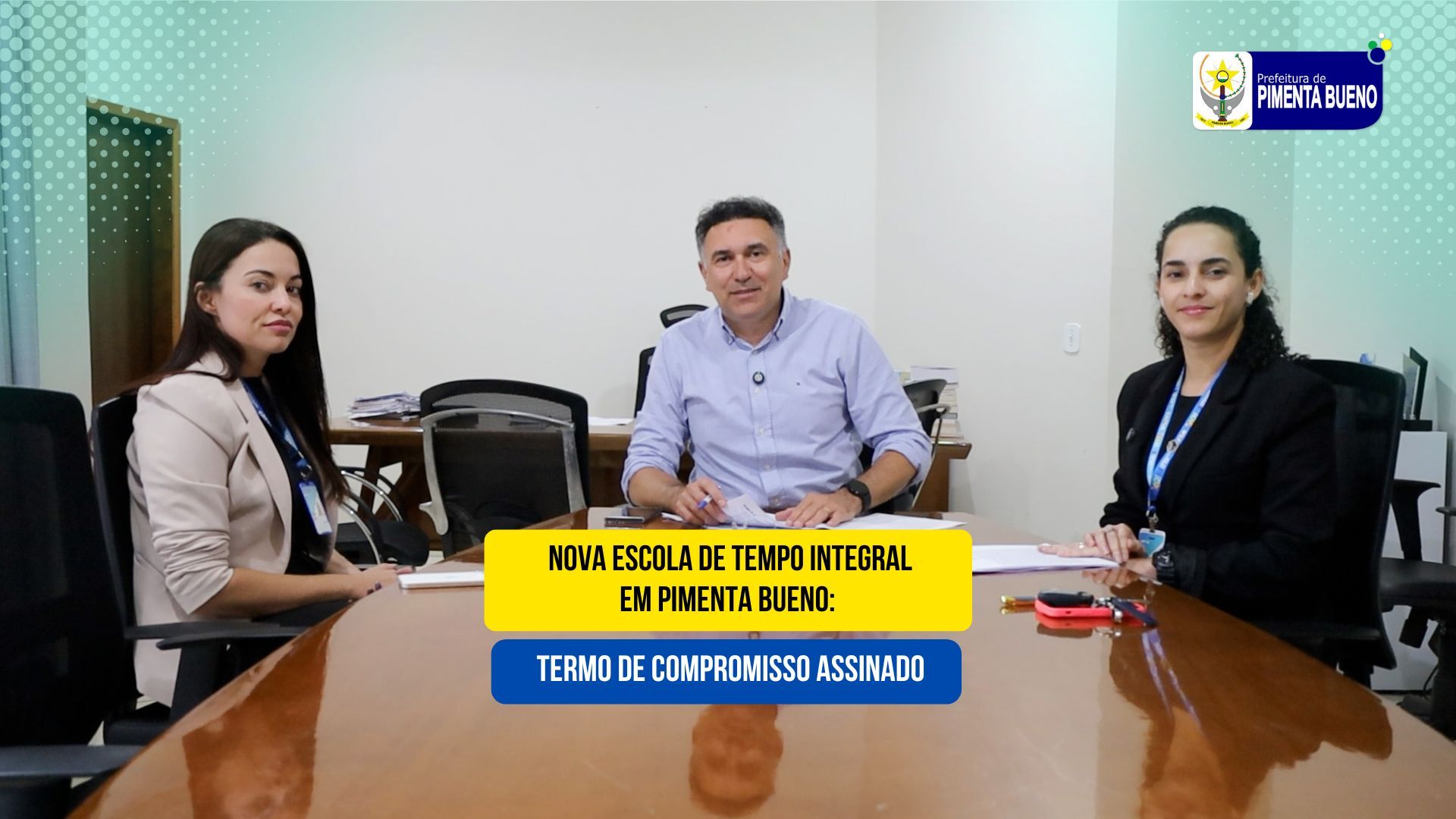 Em uma iniciativa voltada para a melhoria da educação no município de Pimenta Bueno, o Prefeito Arismar Araújo e representantes da Caixa Econômica Federal assinaram um termo de compromisso no valor de R$9.196.855,94 para a construção de uma nova escola de tempo integral no Bairro Bela Vista. Esta importante obra será realizada no âmbito do Programa de Aceleração do Crescimento (PAC) através do Fundo Nacional de Desenvolvimento da Educação (FNDE).