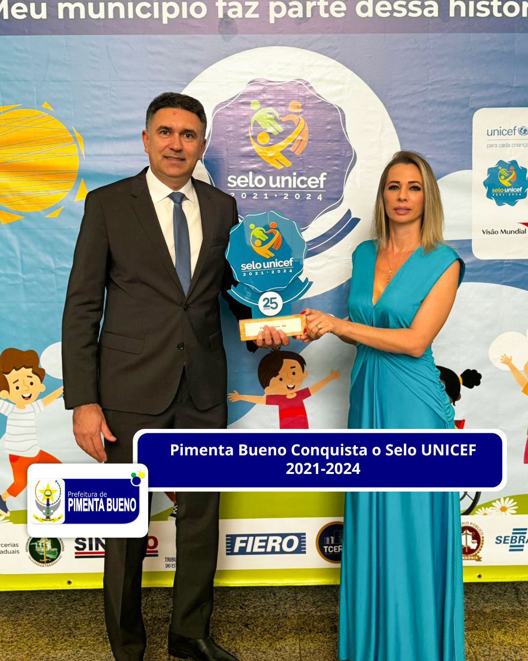 Pimenta Bueno conquistou o Selo UNICEF, um reconhecimento pelo compromisso com a melhoria das políticas públicas voltadas à infância e adolescência. Durante a gestão 2021-2024, o município se destacou ao promover avanços significativos na saúde, educação, proteção social e combate à violência, priorizando o bem-estar das crianças e adolescentes.