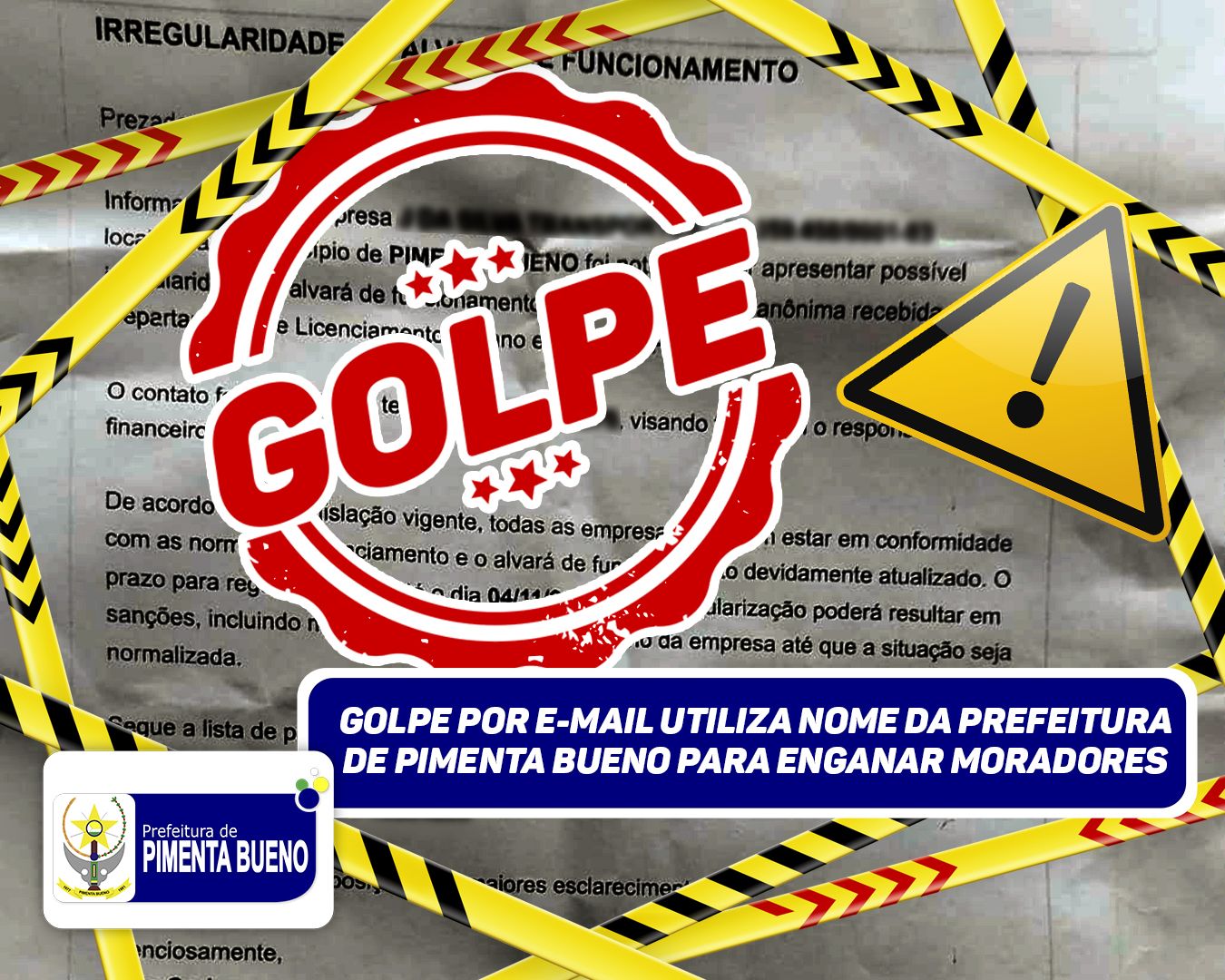 A Prefeitura de Pimenta Bueno emite um alerta importante à população sobre um golpe que vem sendo aplicado por meio de e-mails fraudulentos. Criminosos estão utilizando indevidamente o nome da administração pública para enviar mensagens que simulam notificações oficiais, com o objetivo de obter informações pessoais ou induzir ao pagamento de falsas pendências.