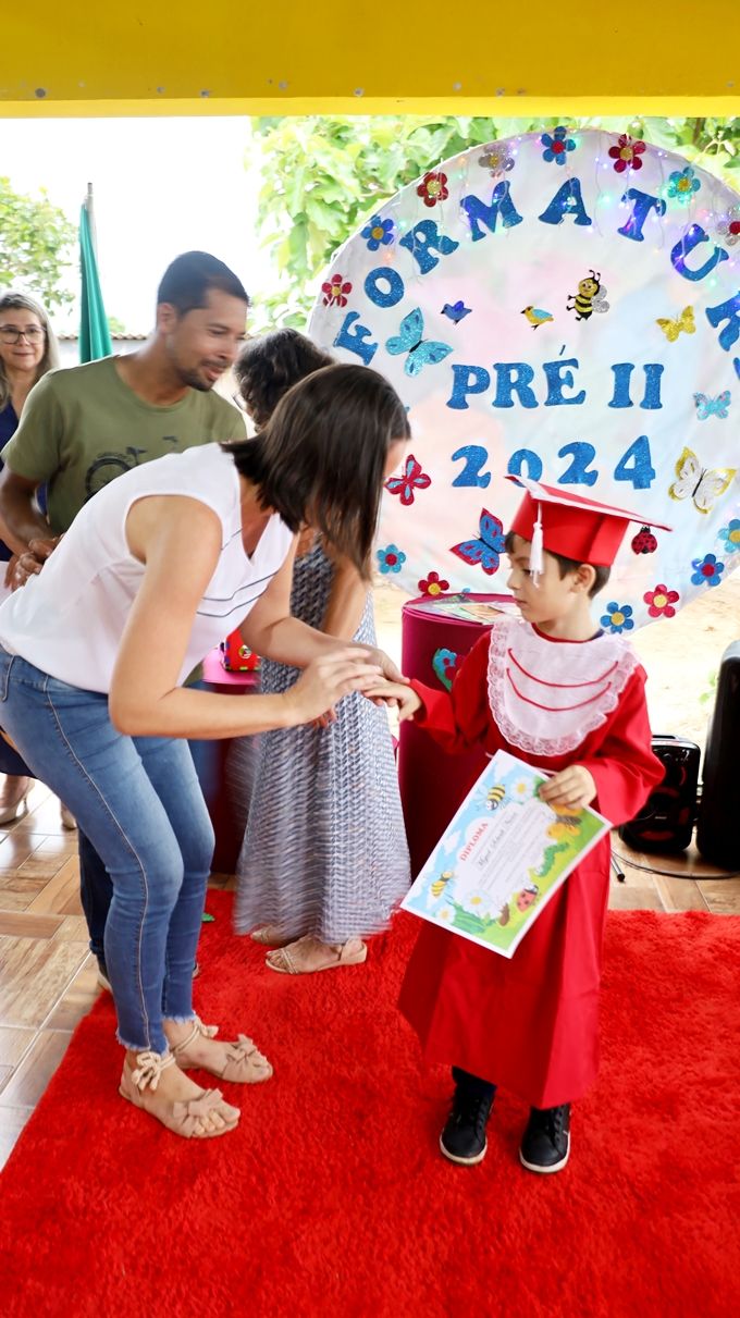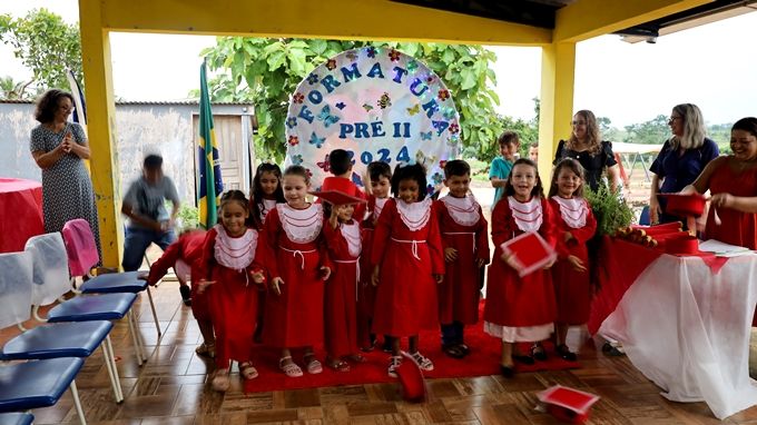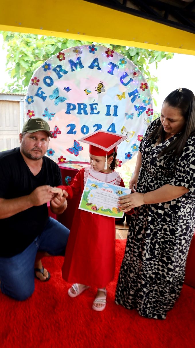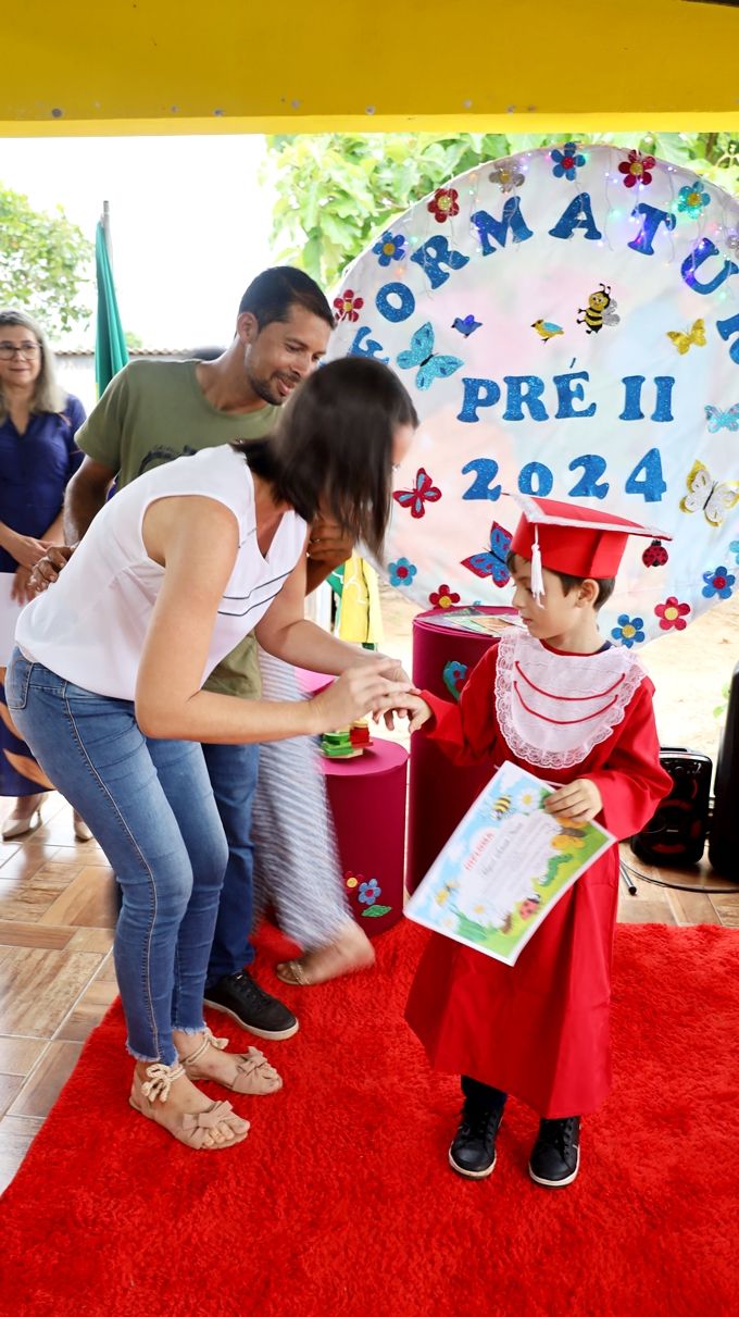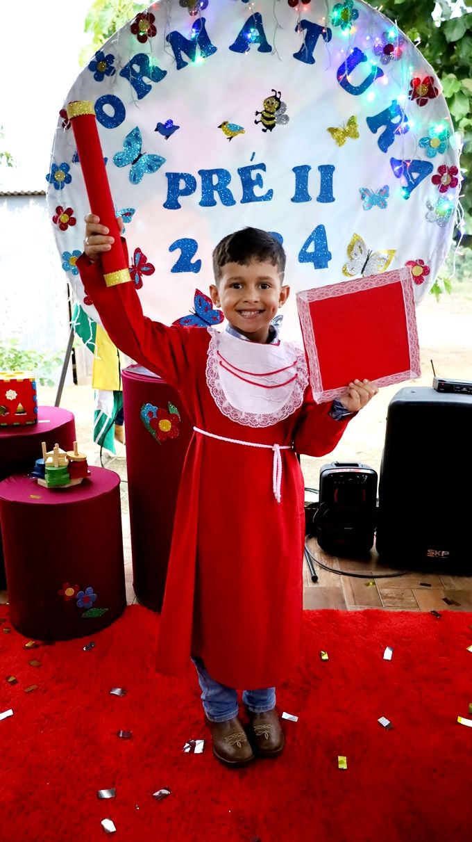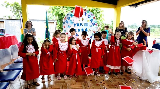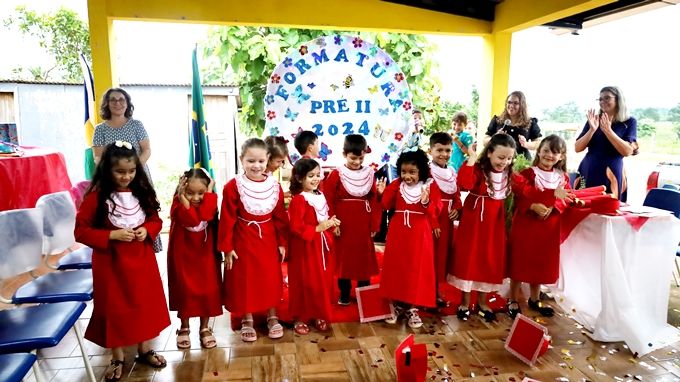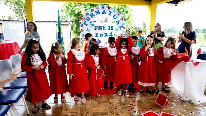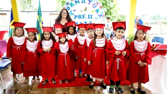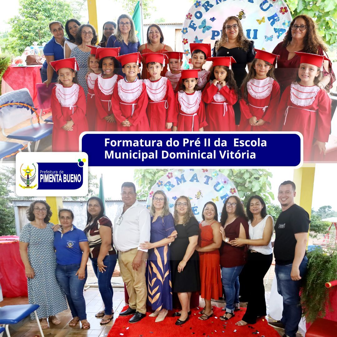 No dia 05 de dezembro, na Escola Municipal Dominical Vitória, localizada na Linha 75 Setor Ribeirão Grande – Dimba, zona rural de Pimenta Bueno. Foi realizada a formatura do Pré II da educação infantil.