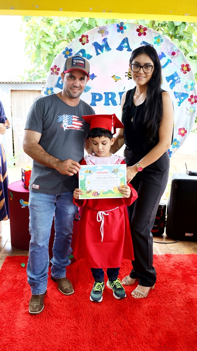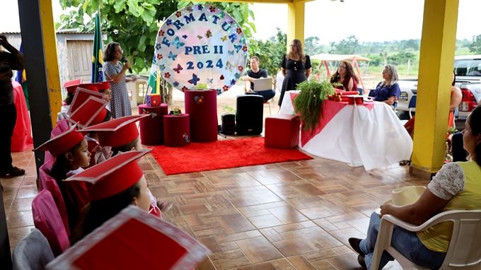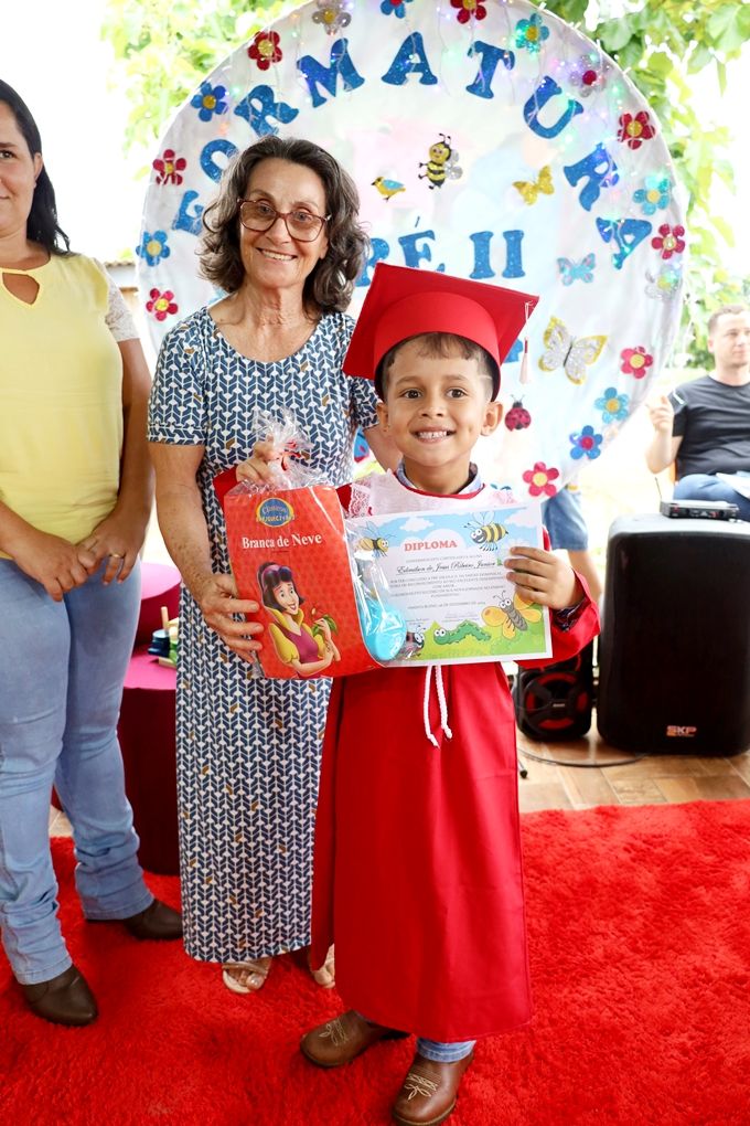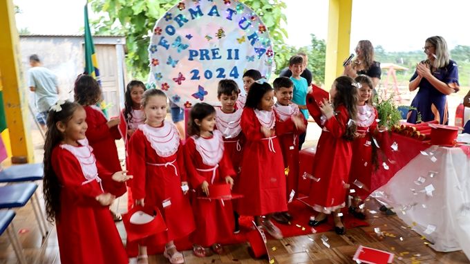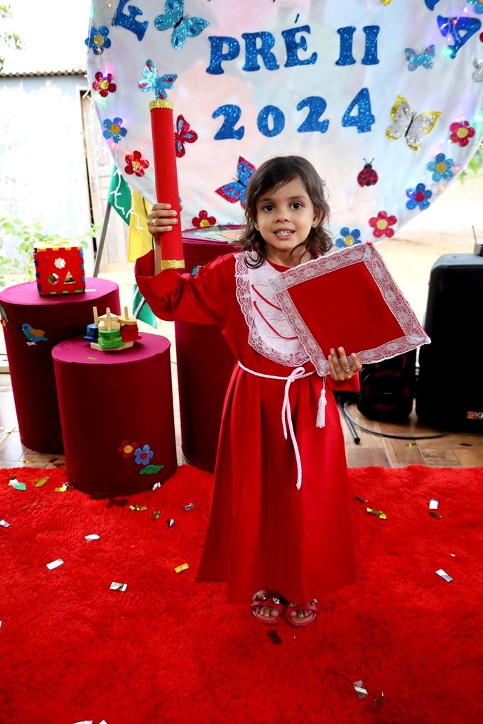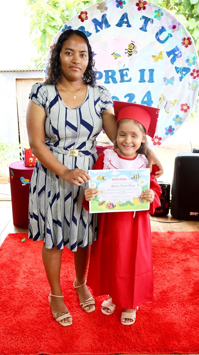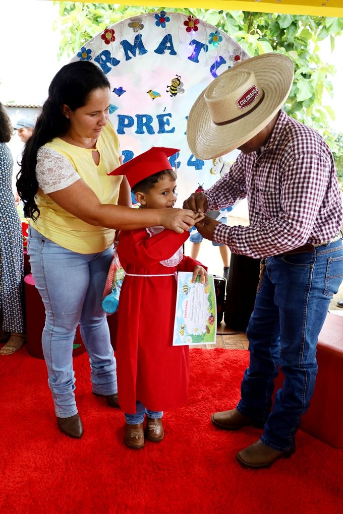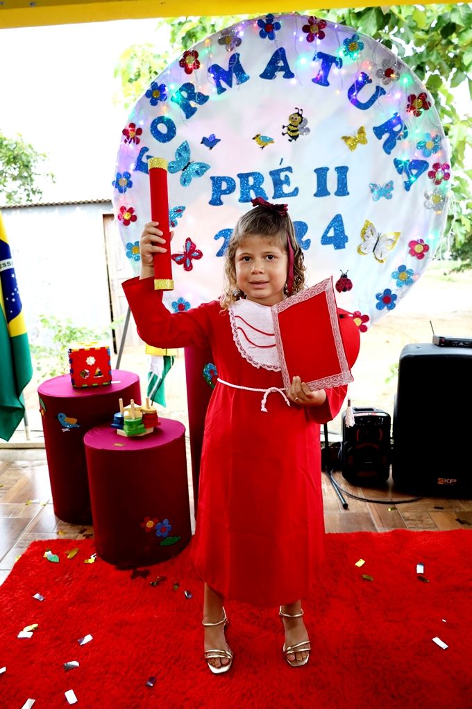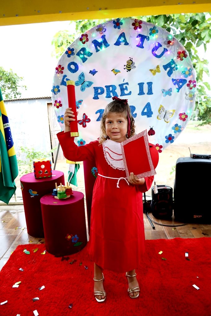 No dia 05 de dezembro, na Escola Municipal Dominical Vitória, localizada na Linha 75 Setor Ribeirão Grande – Dimba, zona rural de Pimenta Bueno. Foi realizada a formatura do Pré II da educação infantil.