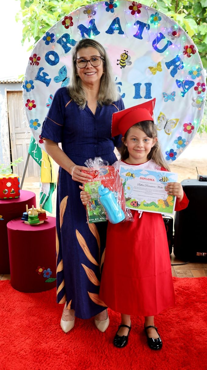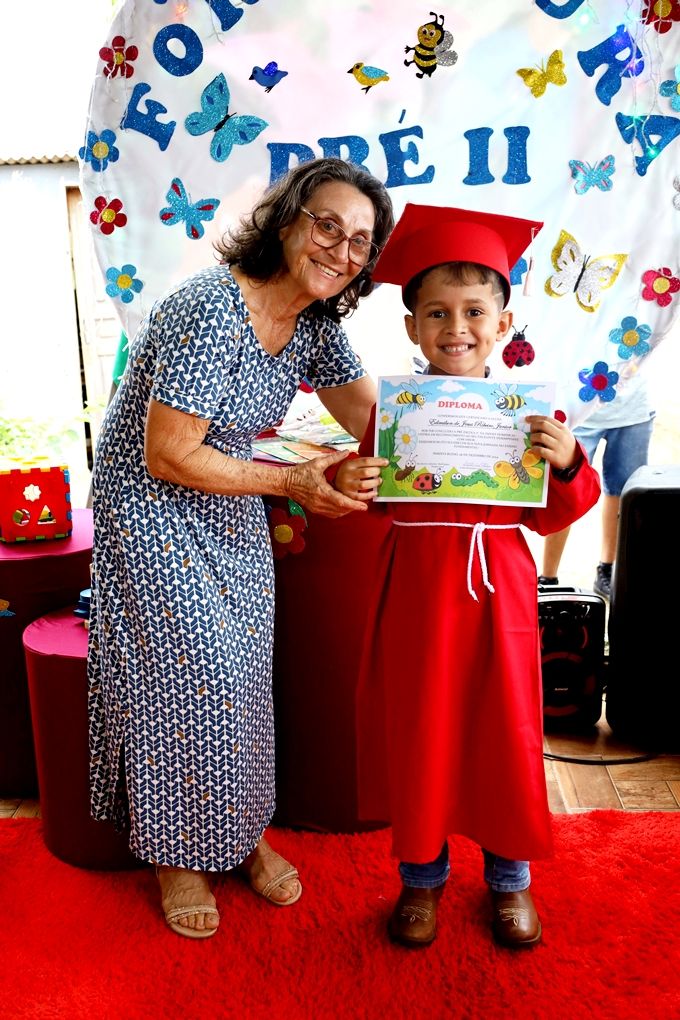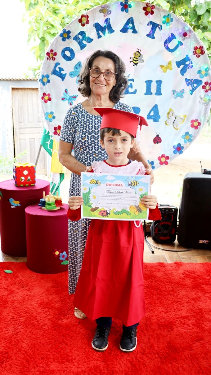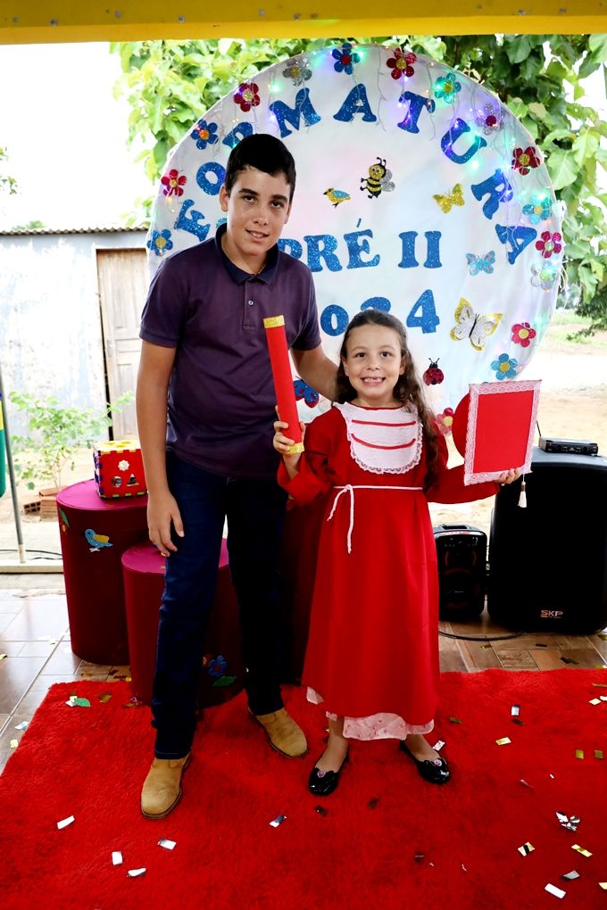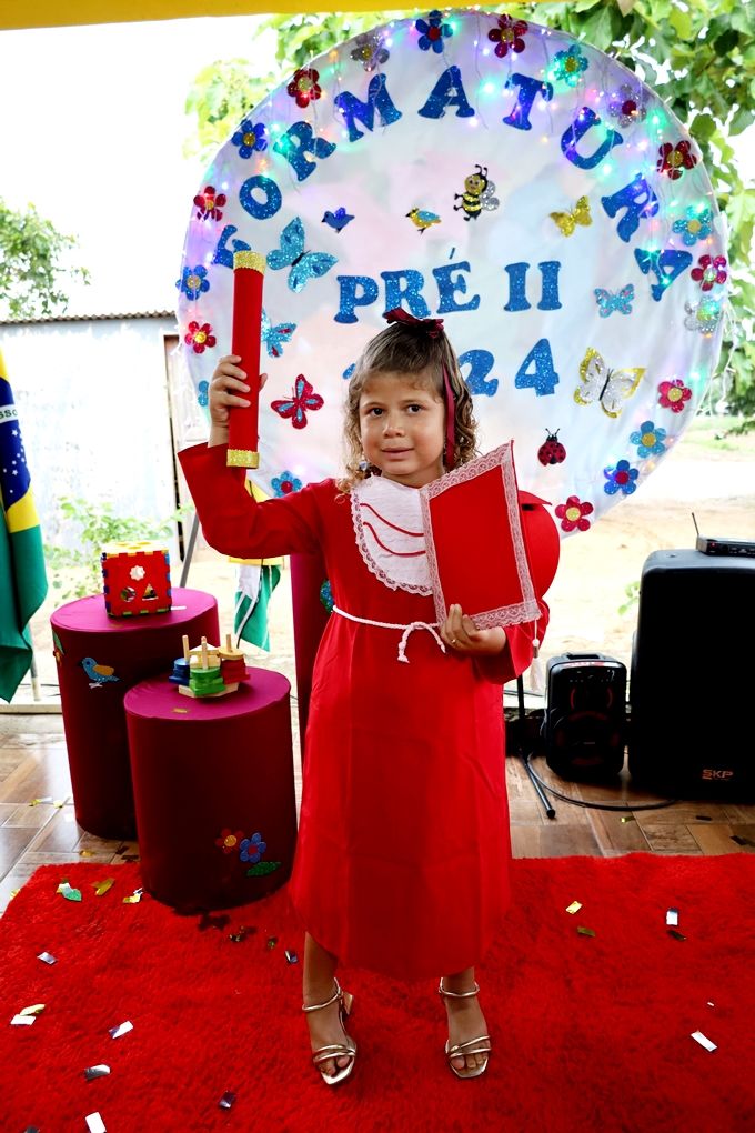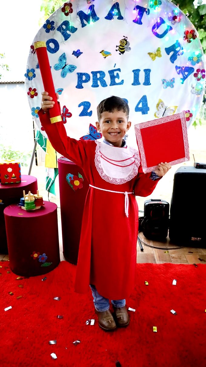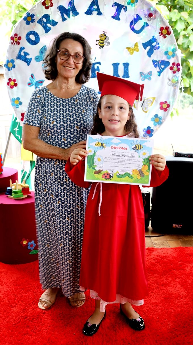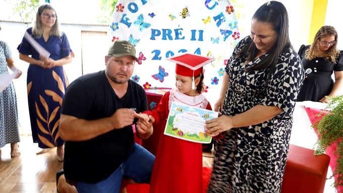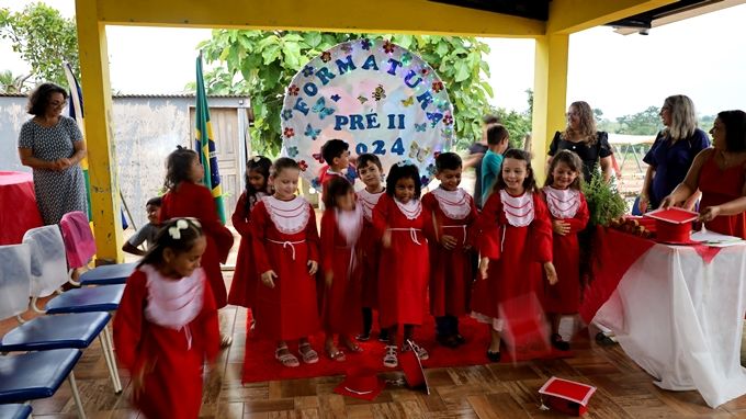No dia 05 de dezembro, na Escola Municipal Dominical Vitória, localizada na Linha 75 Setor Ribeirão Grande – Dimba, zona rural de Pimenta Bueno. Foi realizada a formatura do Pré II da educação infantil.