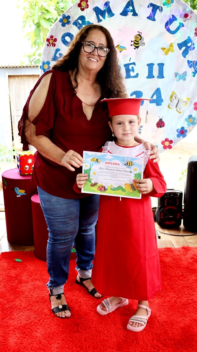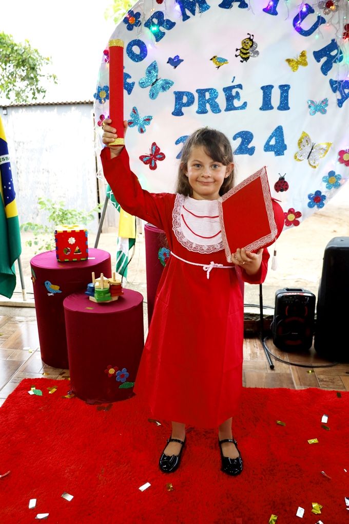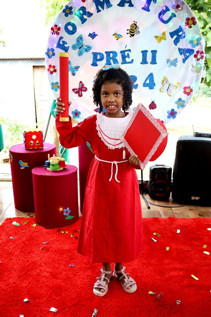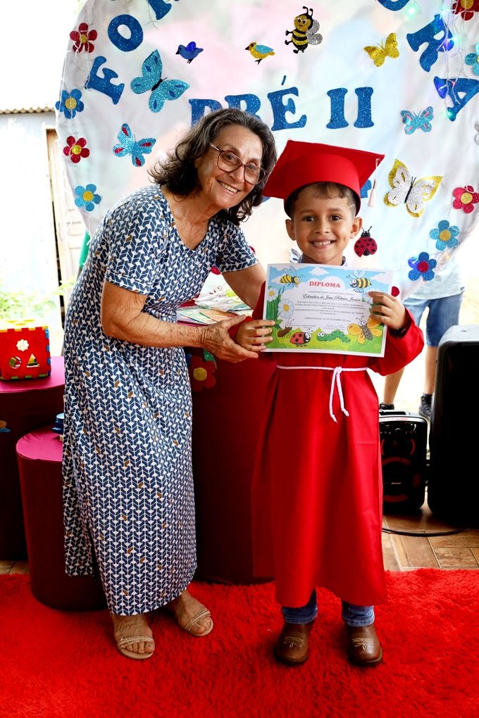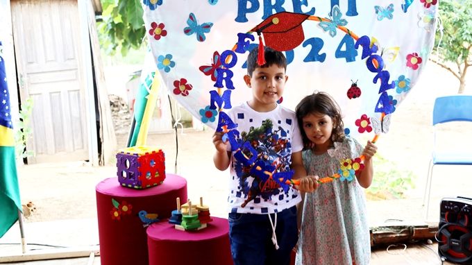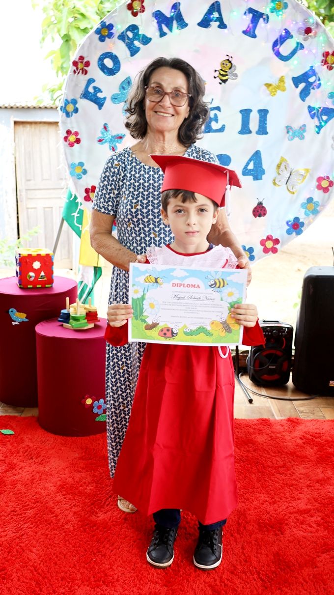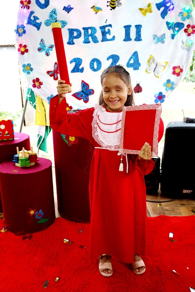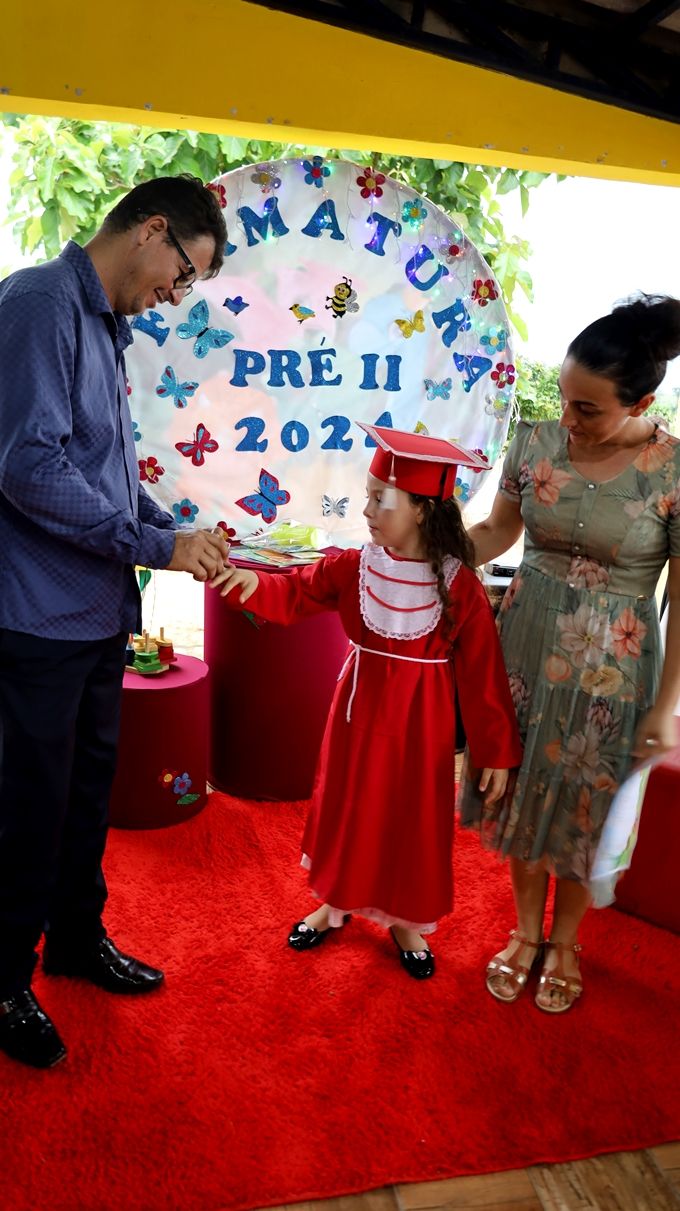 No dia 05 de dezembro, na Escola Municipal Dominical Vitória, localizada na Linha 75 Setor Ribeirão Grande – Dimba, zona rural de Pimenta Bueno. Foi realizada a formatura do Pré II da educação infantil.