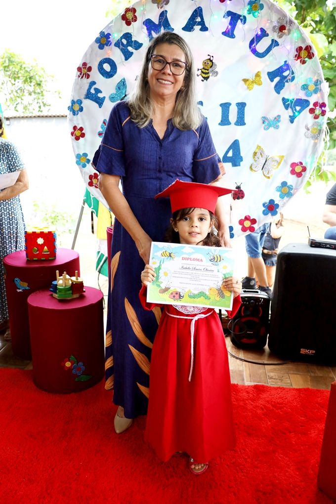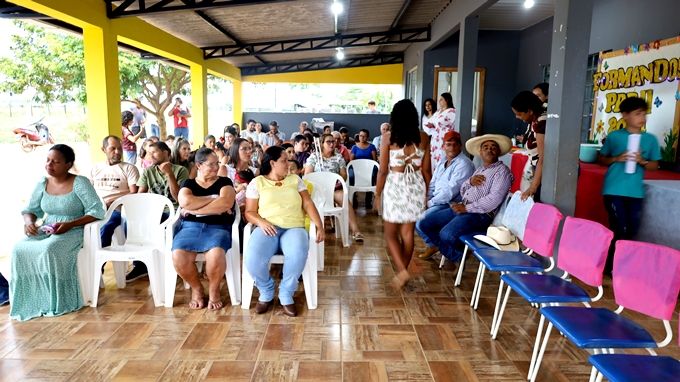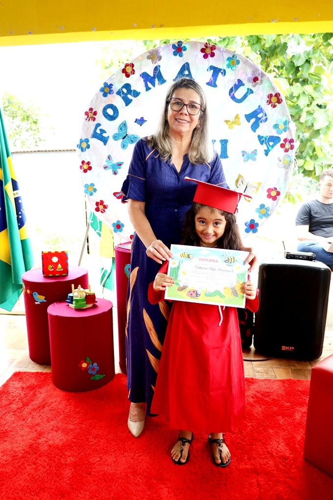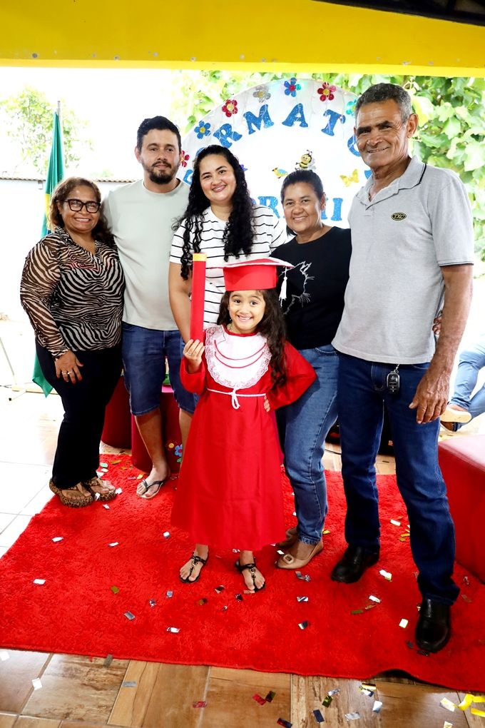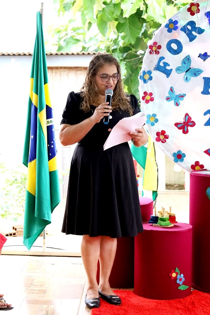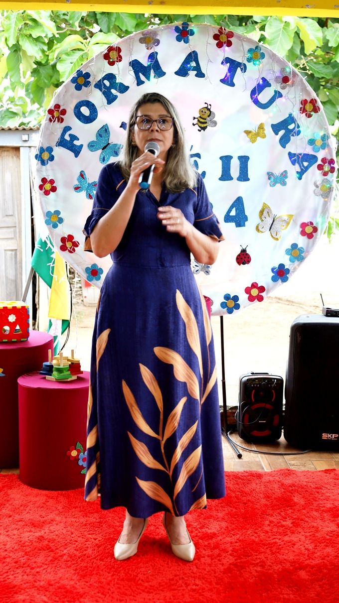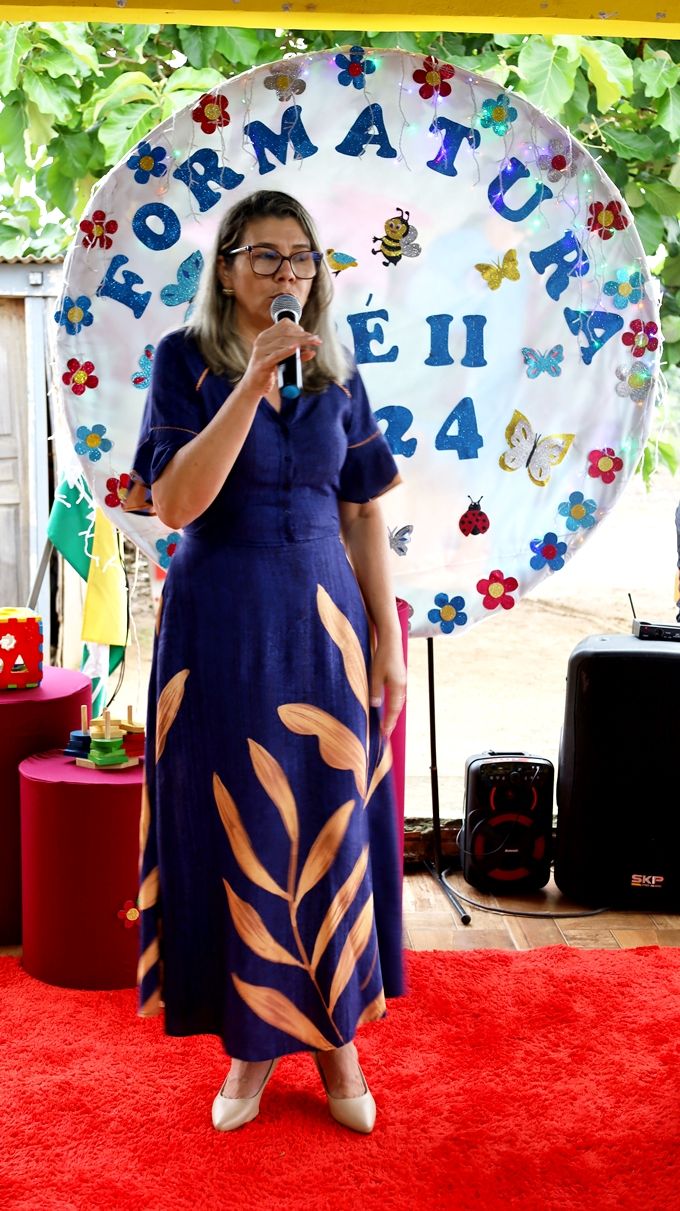 O evento contou com a participação da comunidade escolar, a presença das famílias dos formandos, da Secretária Municipal de Educação Marcilene Rodrigues e Equipe Técnica Pedagógica da SEMED, e a anfitriã professora Rosimeire Janones Rodrigues.