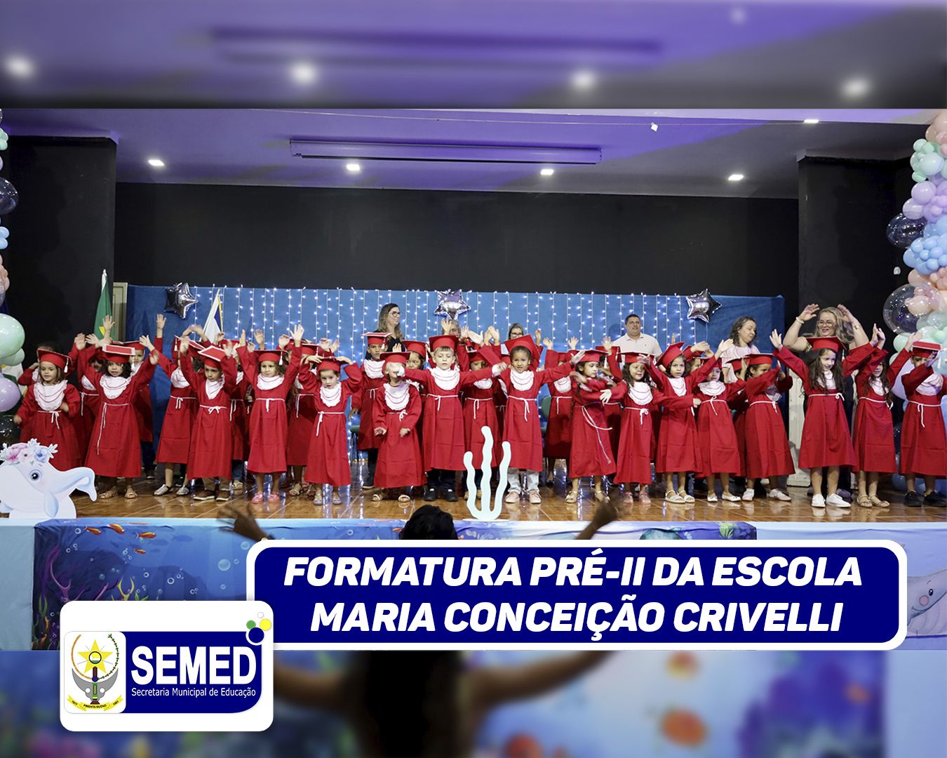 No dia 09 de dezembro, foi a data escolhida para celebrar juntamente com a Escola Municipal Maria da Conceição Ramos do Amaral Crivelli, a formatura do Pré II da Educação infantil, que aconteceu no Centro Cultural Antônio Augusto Neves.