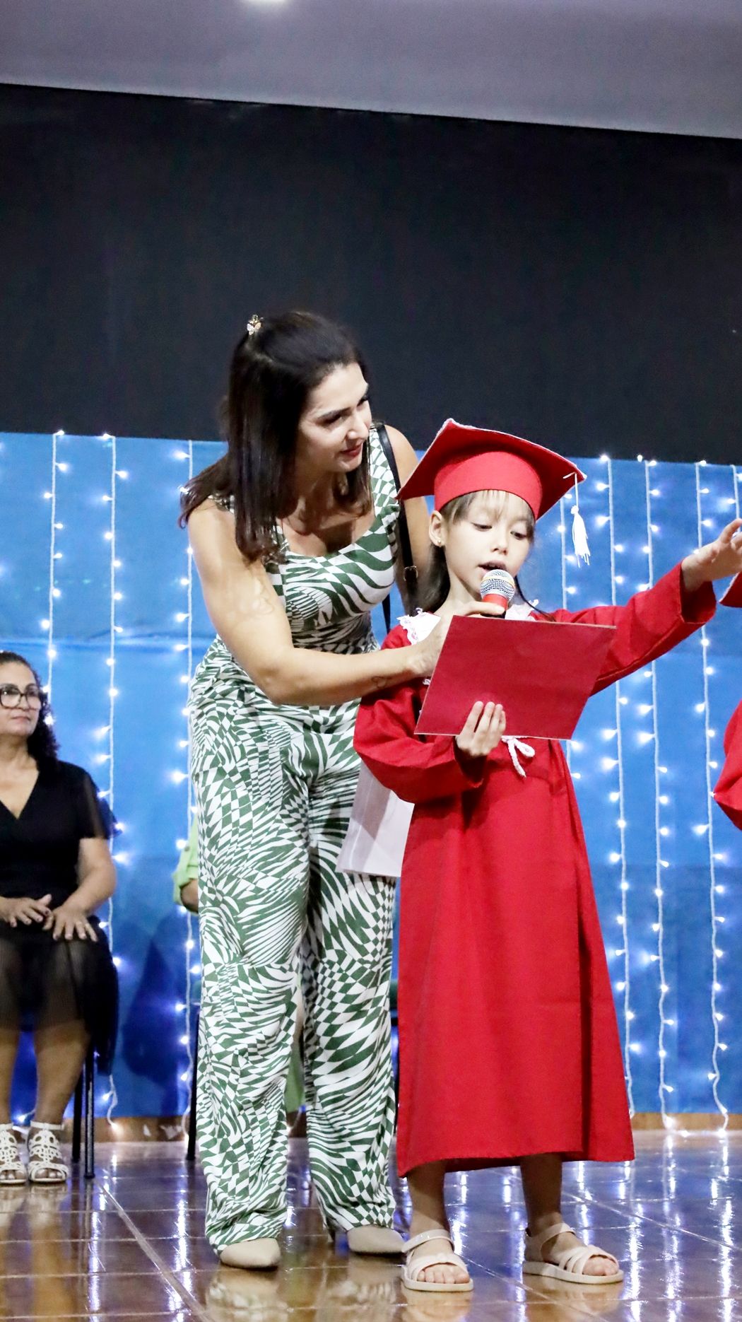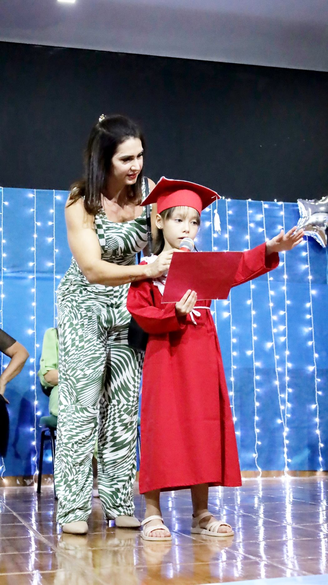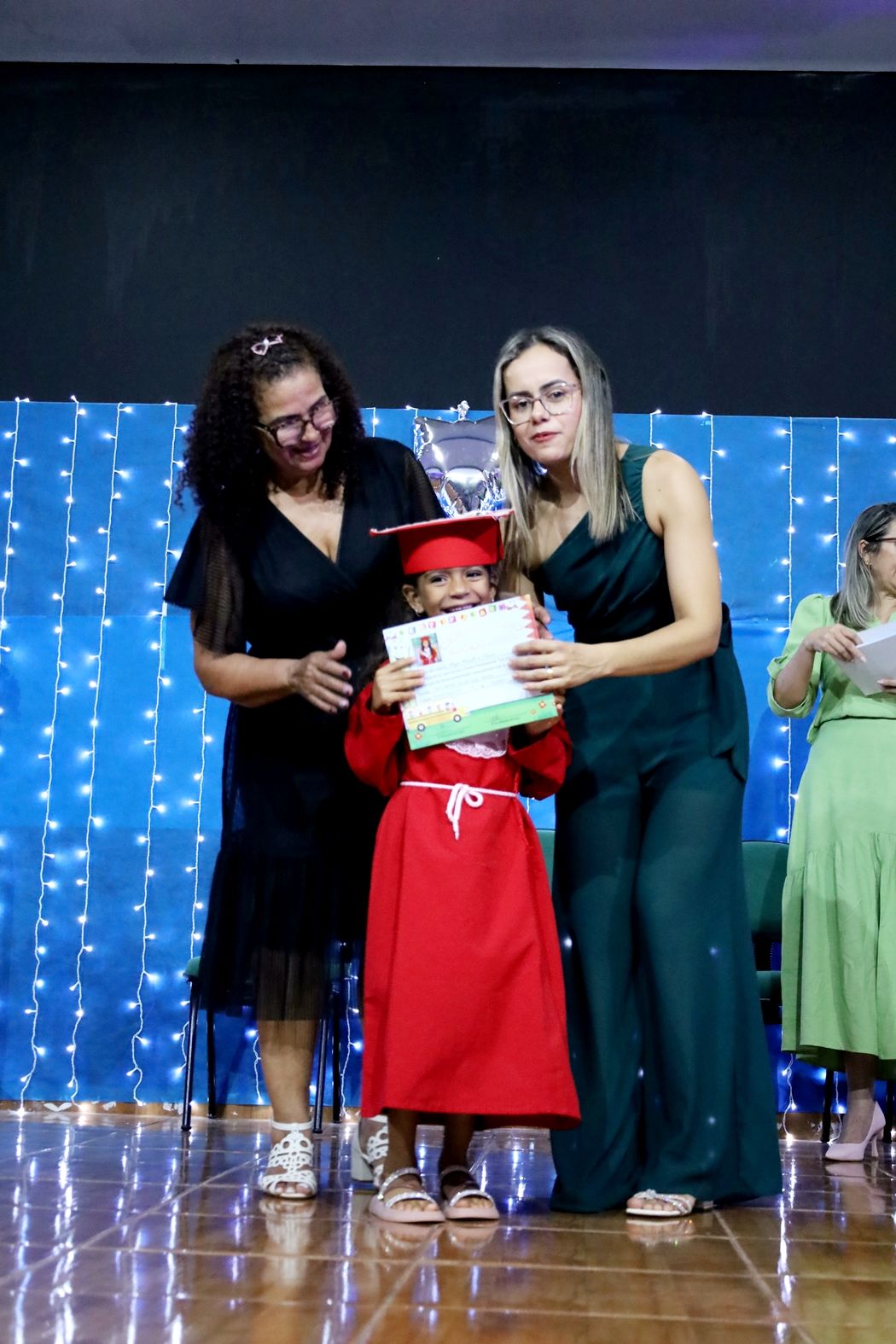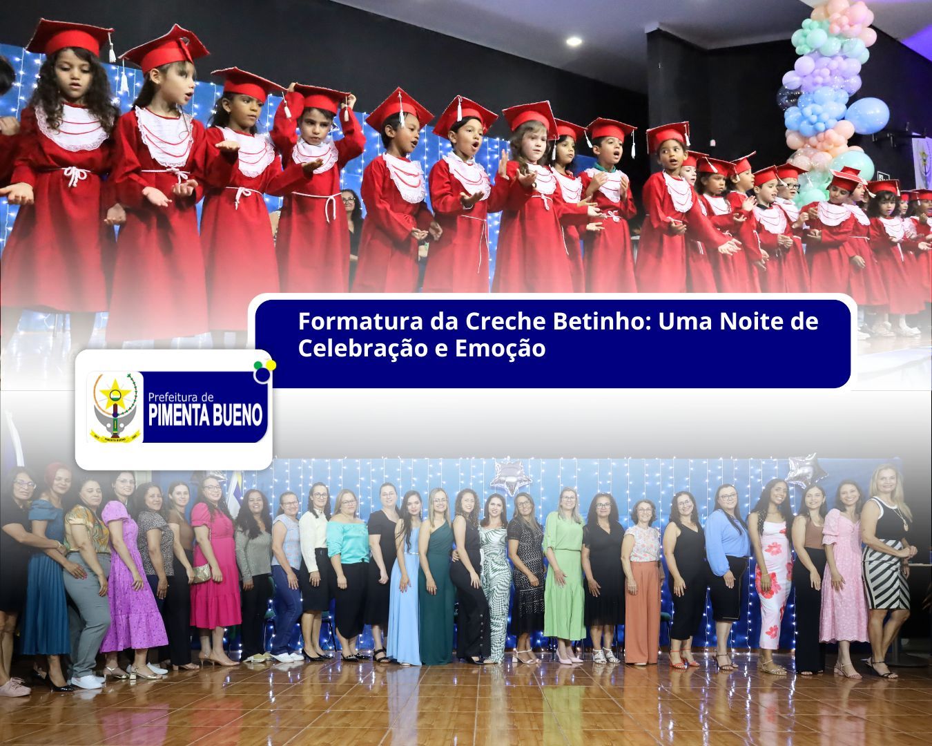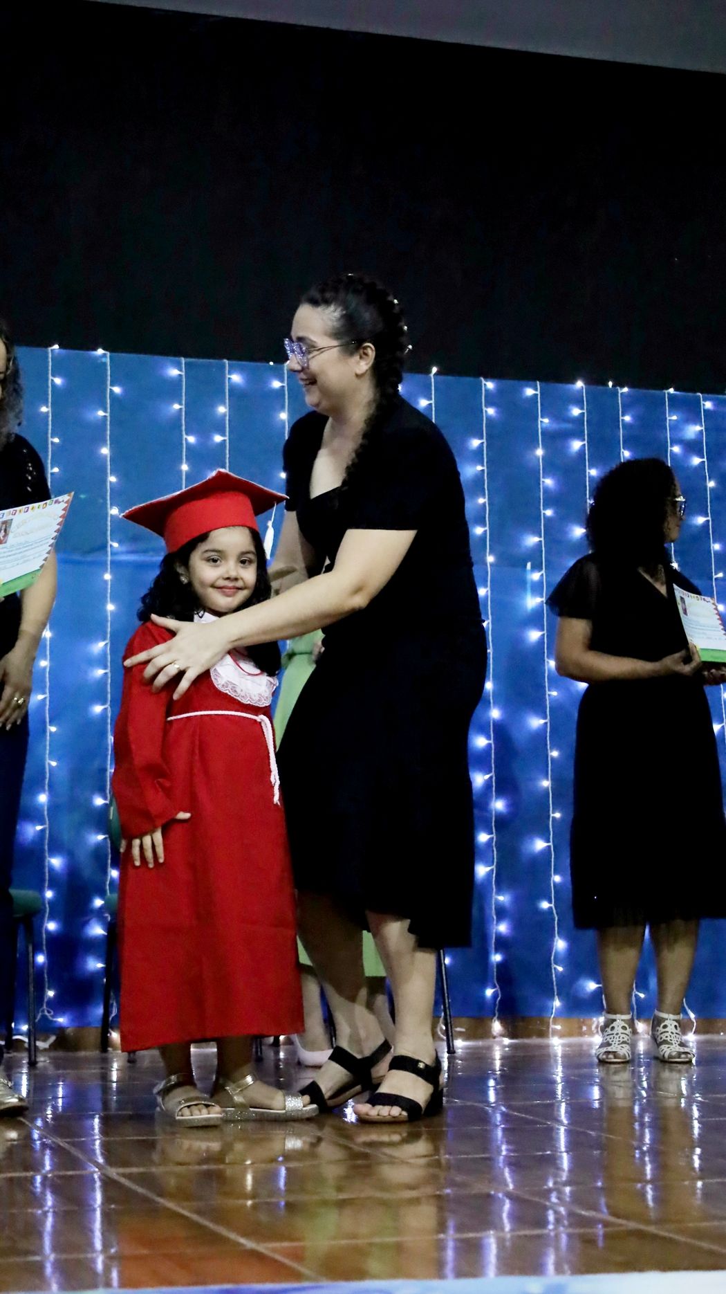 Na noite desta quinta-feira, 12 de dezembro, a Creche Betinho foi palco de uma emocionante cerimônia de formatura. O evento, que reuniu mais de 100 formandos, contou com a presença de familiares, amigos, professores e autoridades locais, incluindo a Secretária de Educação, Marcilene Rodrigues.