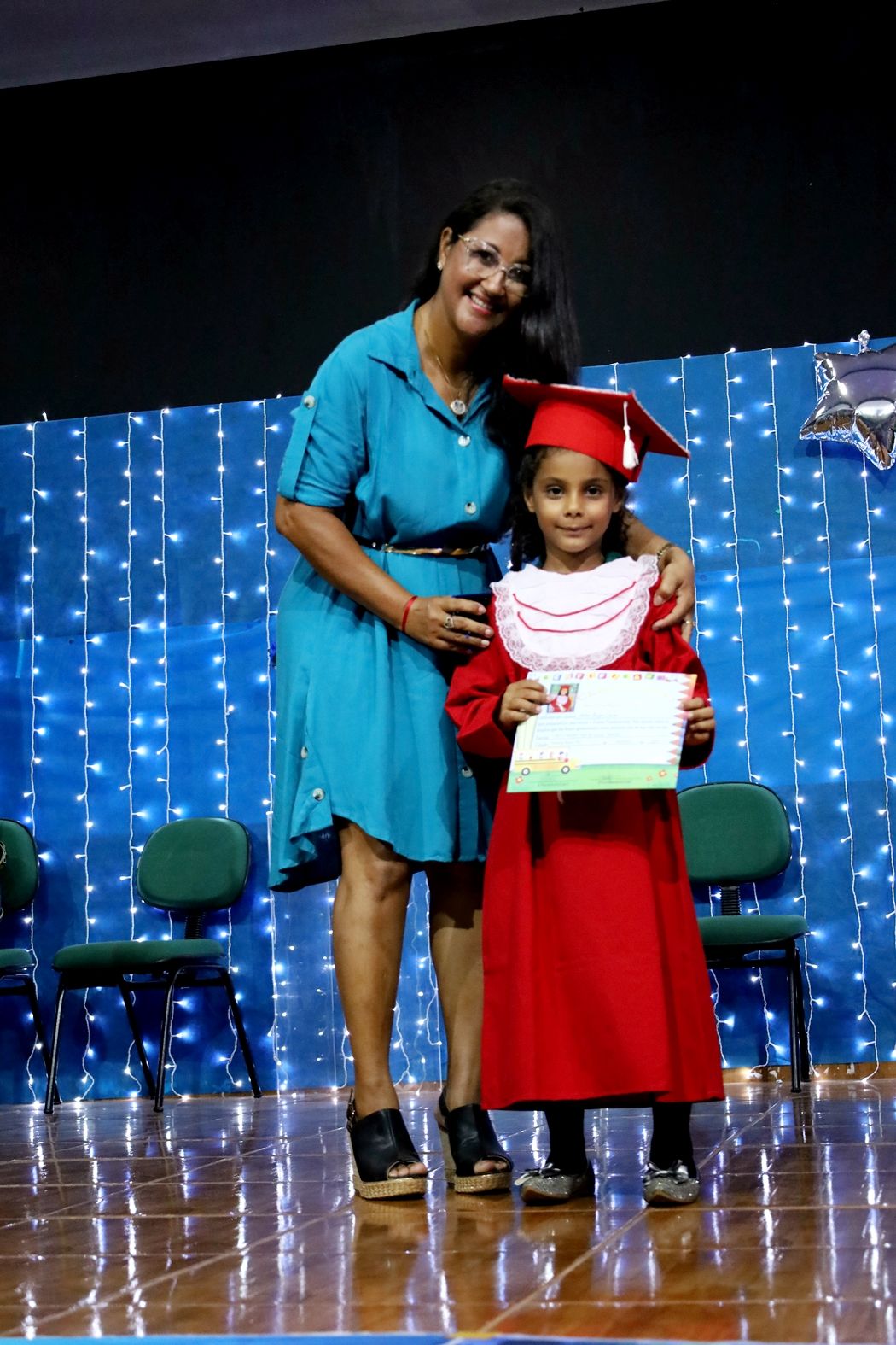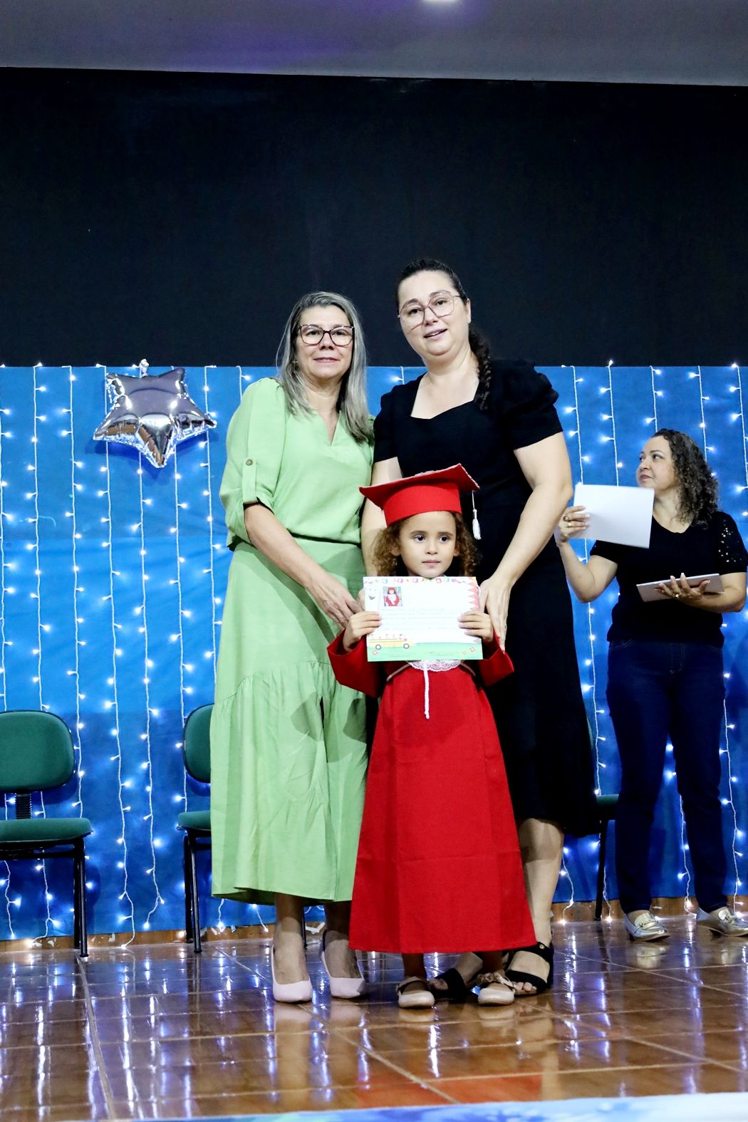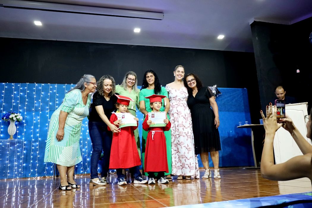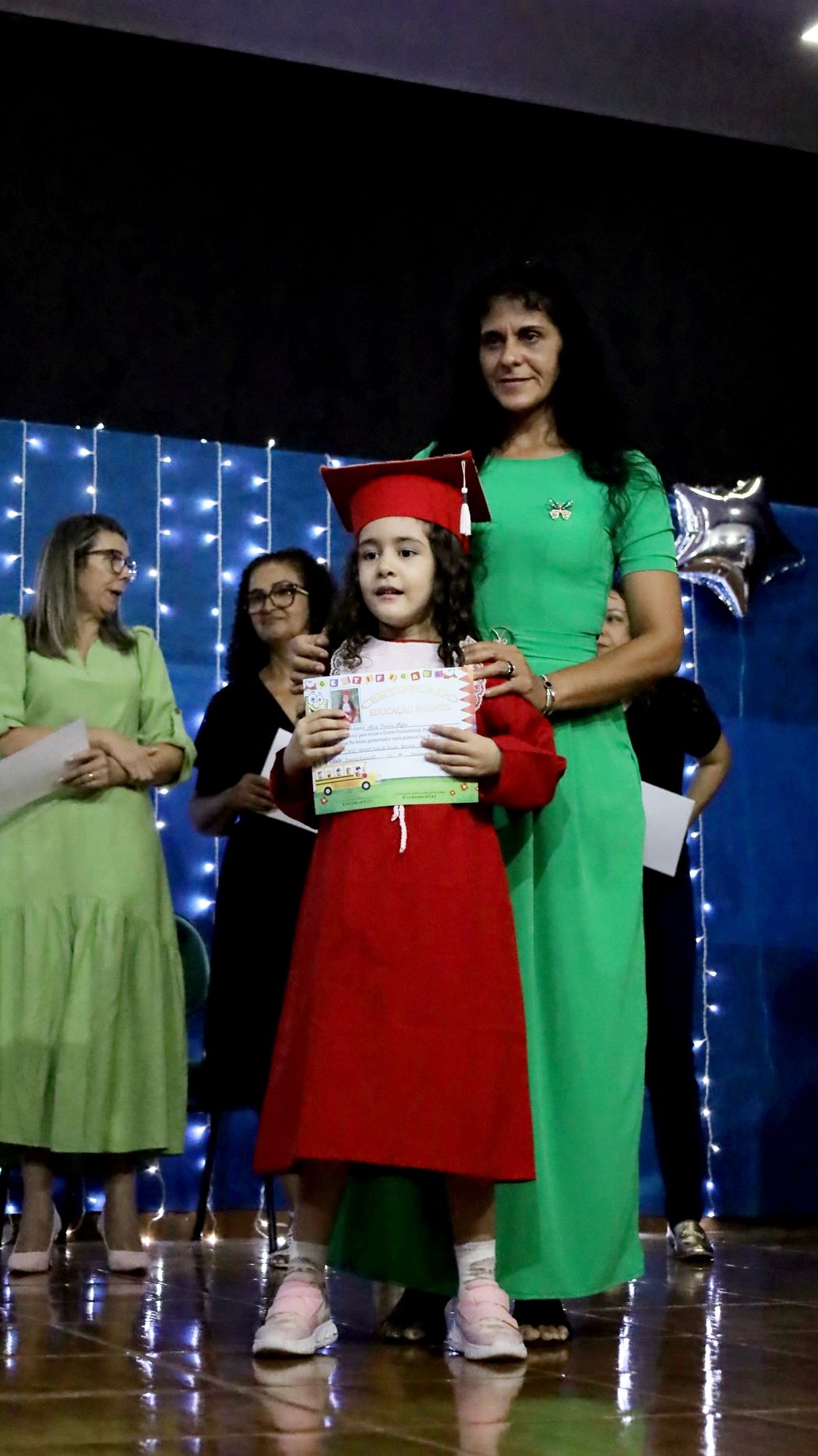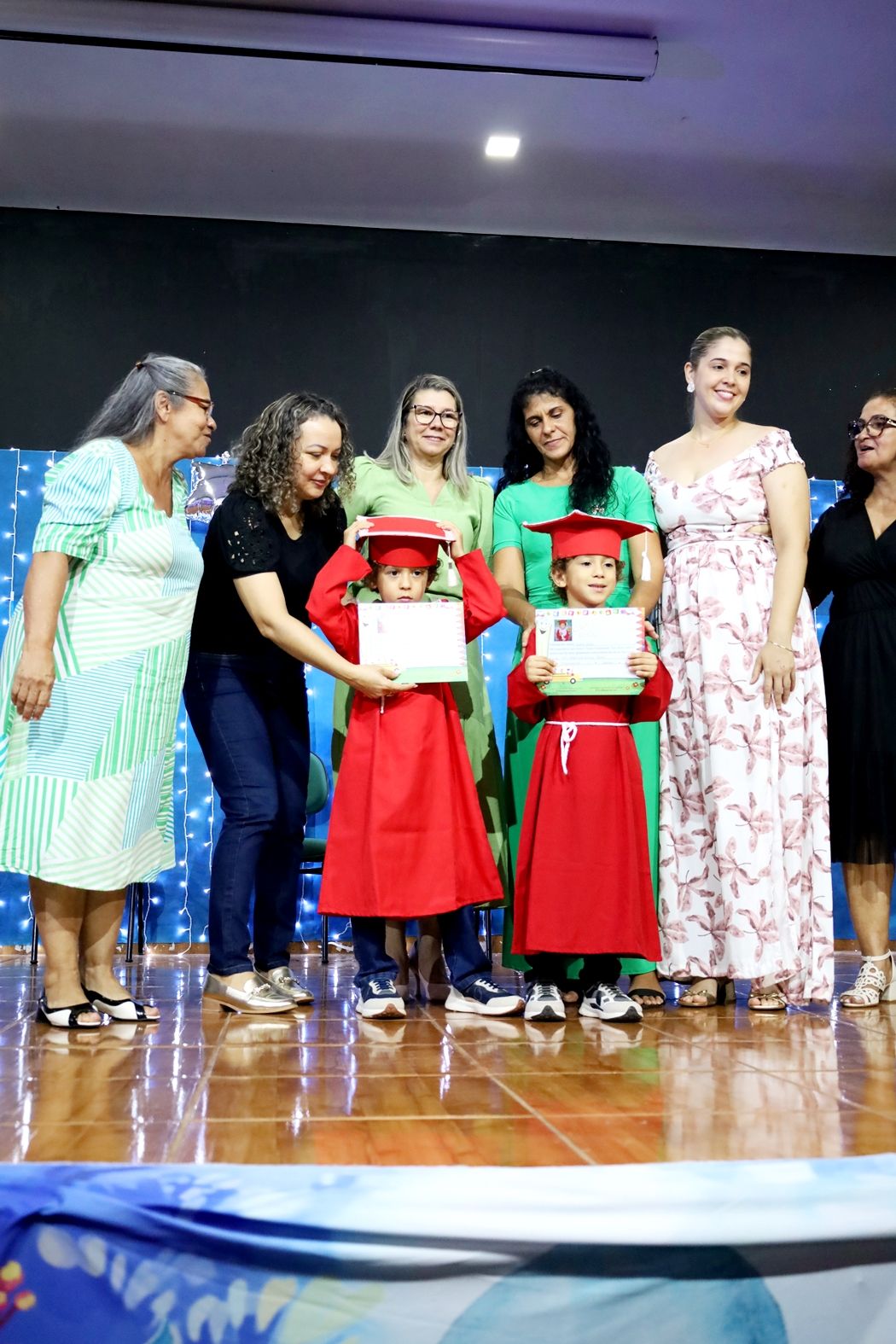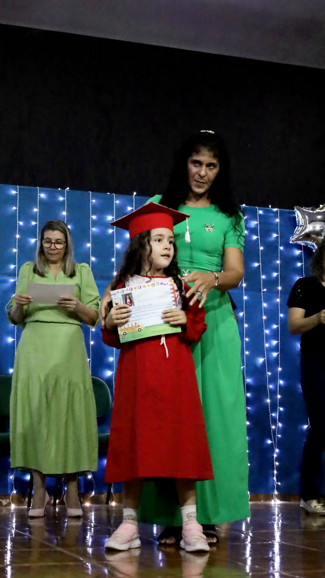 Na noite desta quinta-feira, 12 de dezembro, a Creche Betinho foi palco de uma emocionante cerimônia de formatura. O evento, que reuniu mais de 100 formandos, contou com a presença de familiares, amigos, professores e autoridades locais, incluindo a Secretária de Educação, Marcilene Rodrigues.