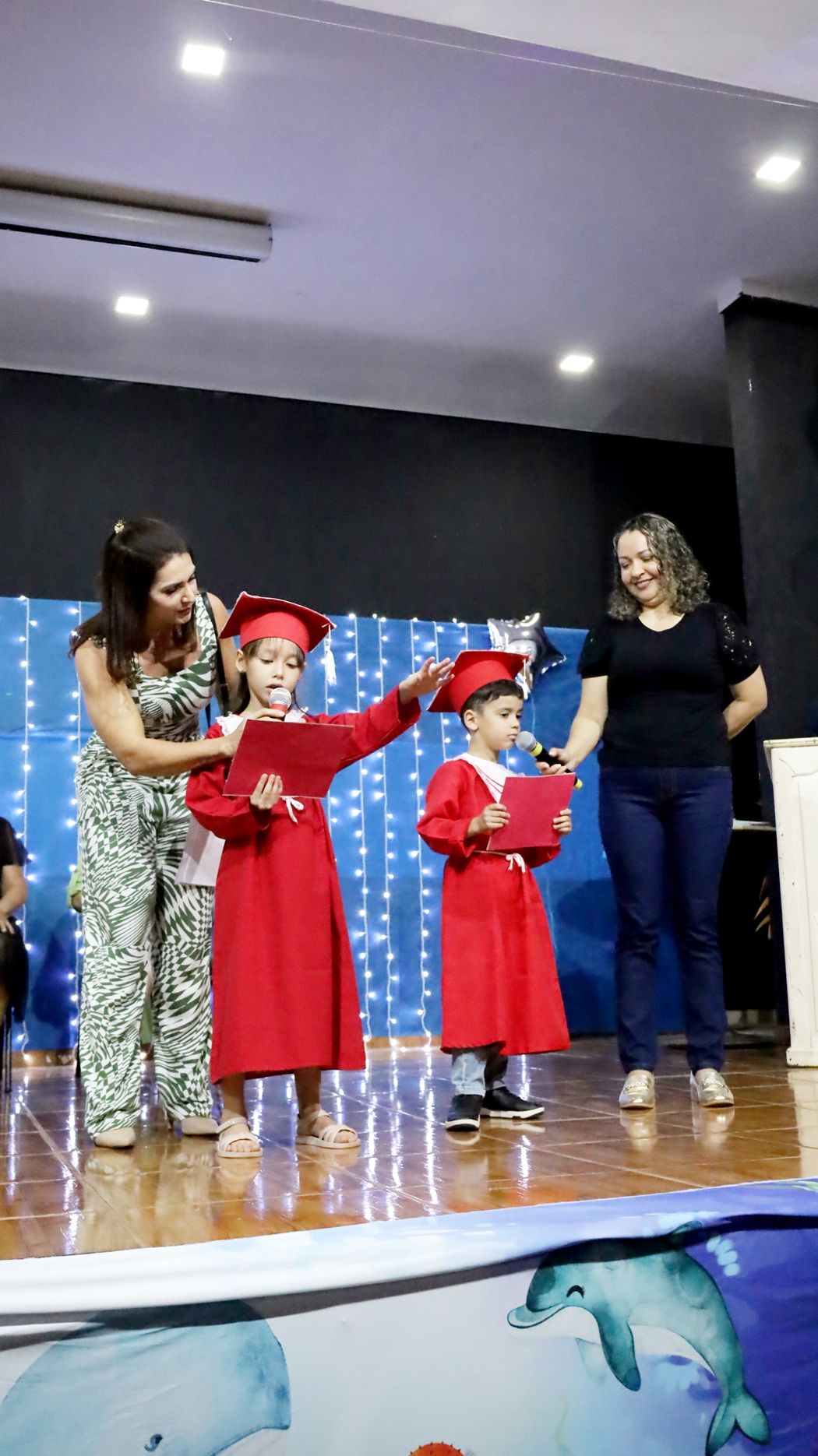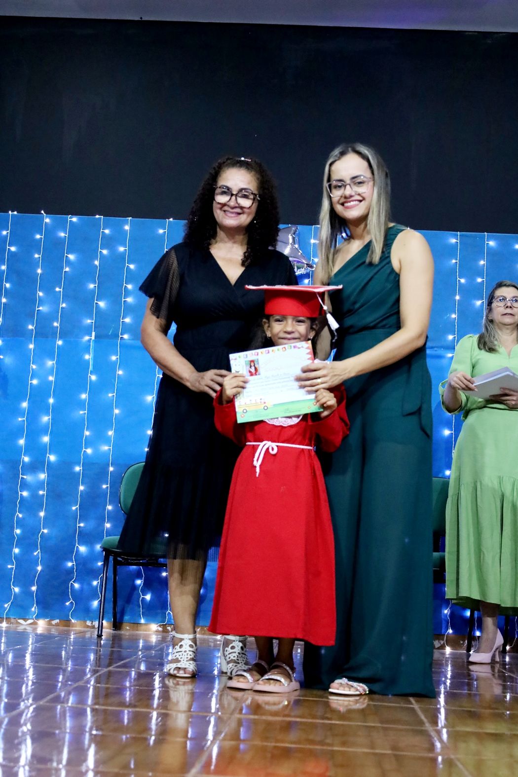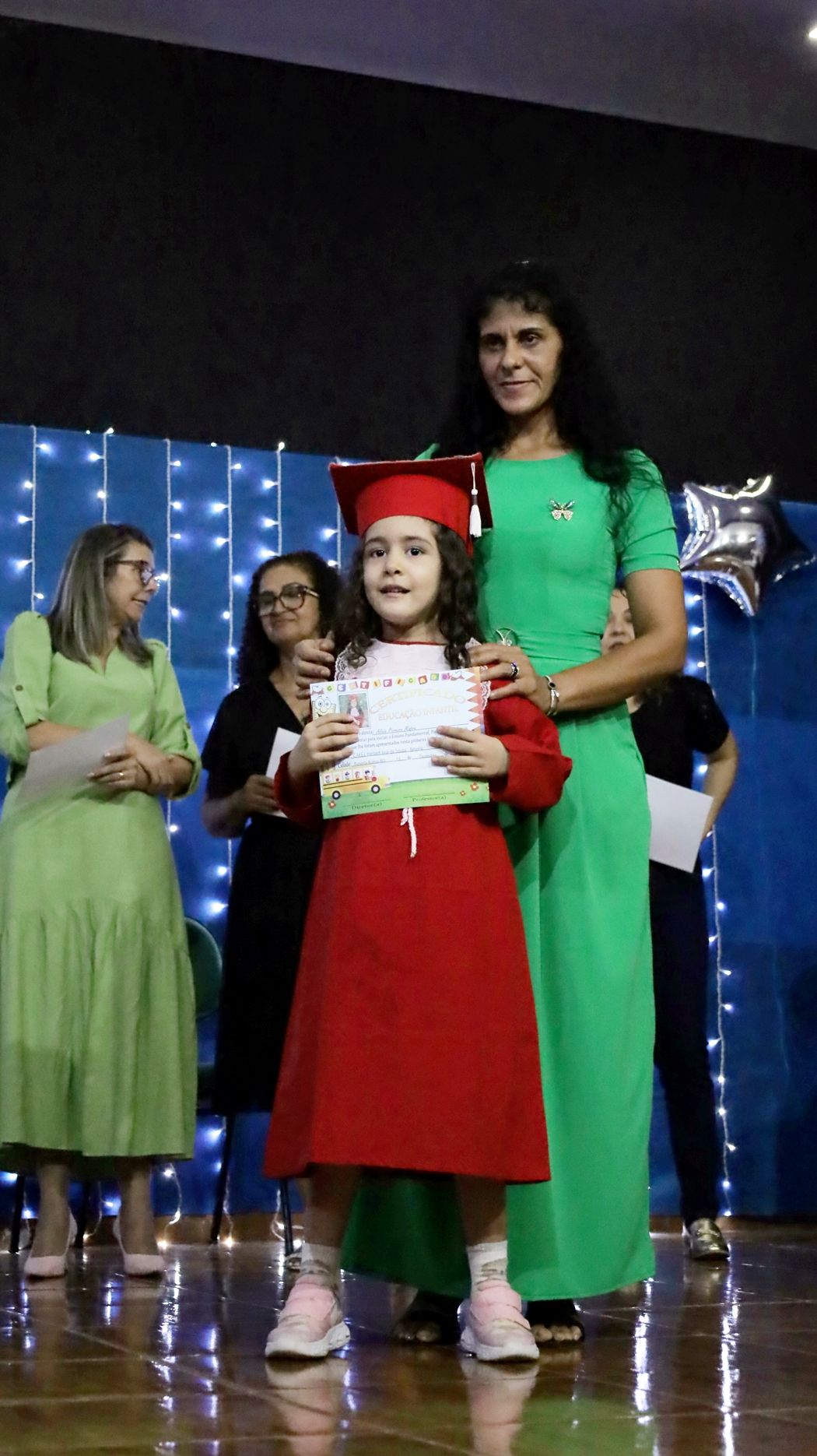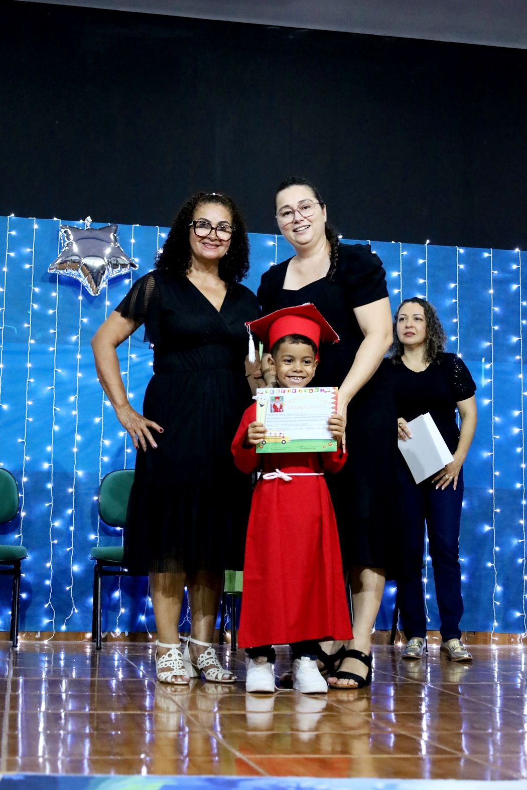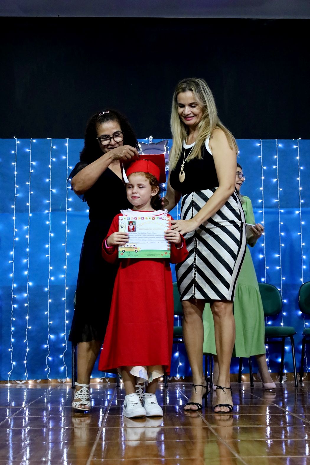 Na noite desta quinta-feira, 12 de dezembro, a Creche Betinho foi palco de uma emocionante cerimônia de formatura. O evento, que reuniu mais de 100 formandos, contou com a presença de familiares, amigos, professores e autoridades locais, incluindo a Secretária de Educação, Marcilene Rodrigues.