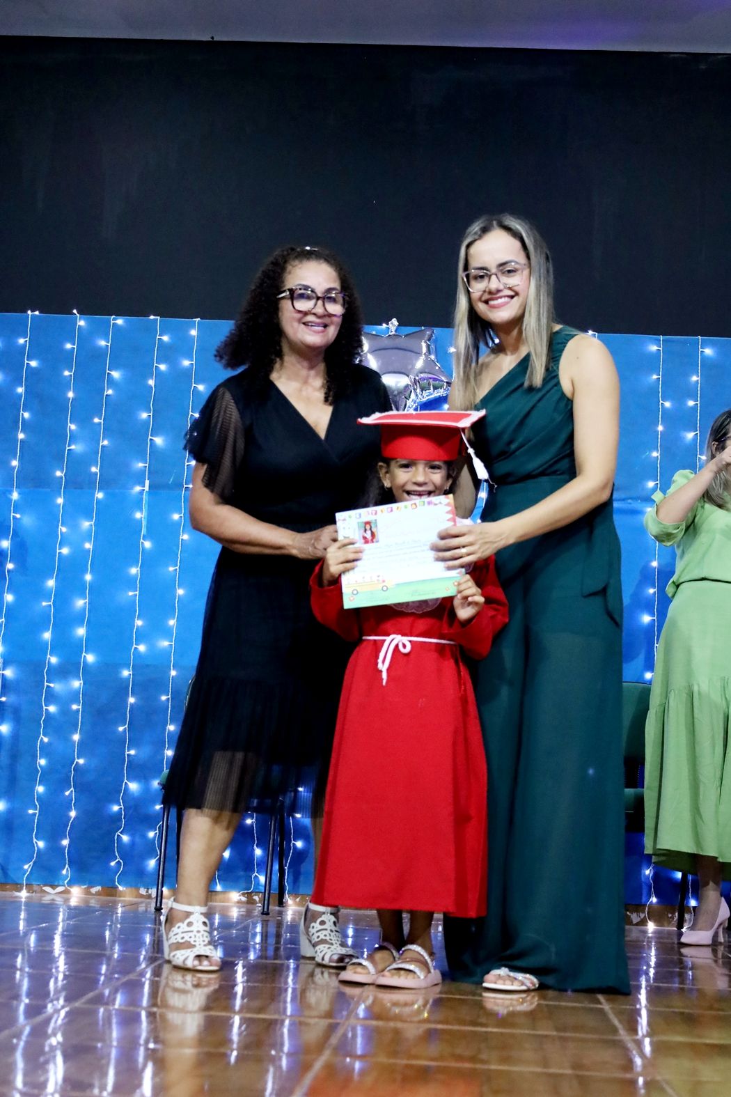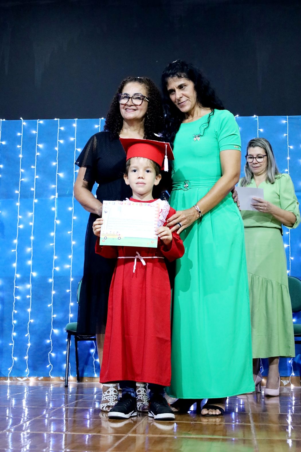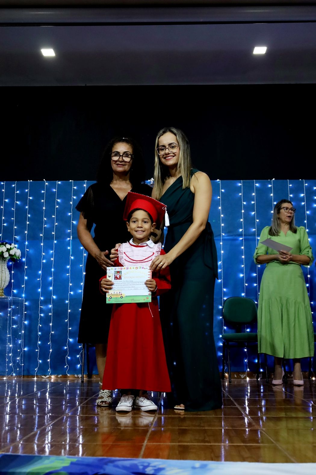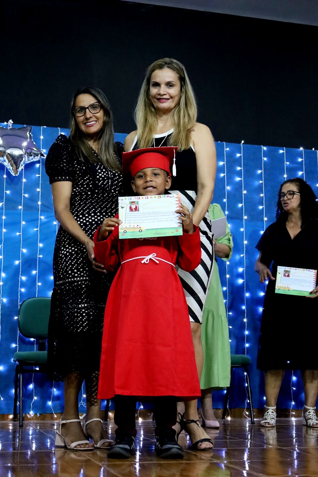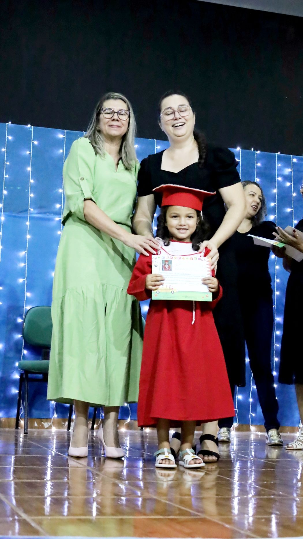 Na noite desta quinta-feira, 12 de dezembro, a Creche Betinho foi palco de uma emocionante cerimônia de formatura. O evento, que reuniu mais de 100 formandos, contou com a presença de familiares, amigos, professores e autoridades locais, incluindo a Secretária de Educação, Marcilene Rodrigues.
