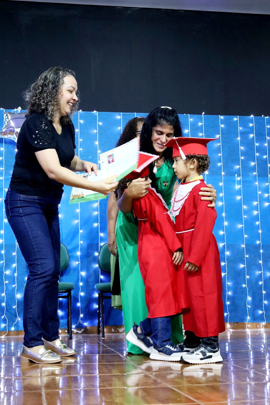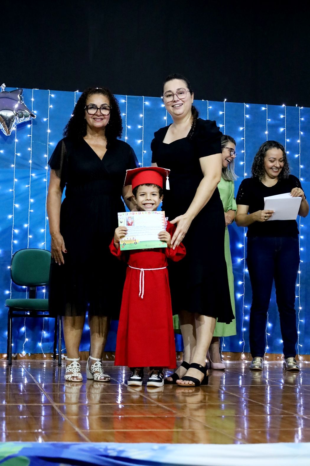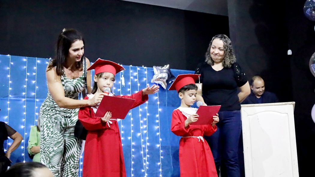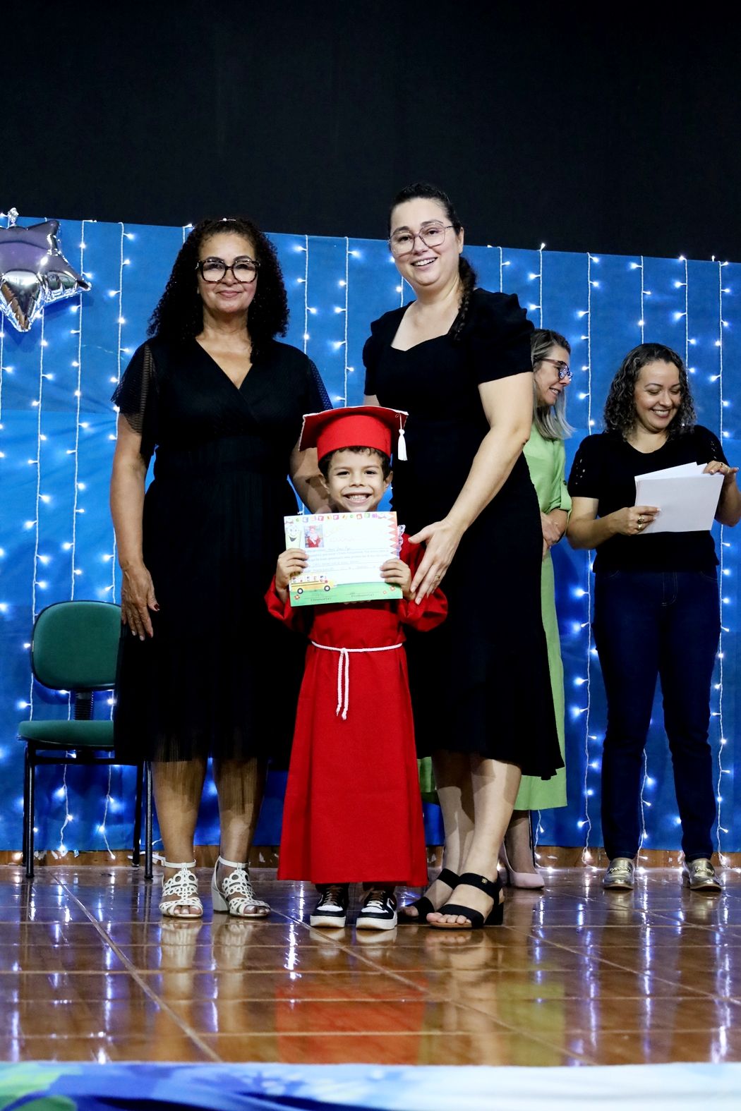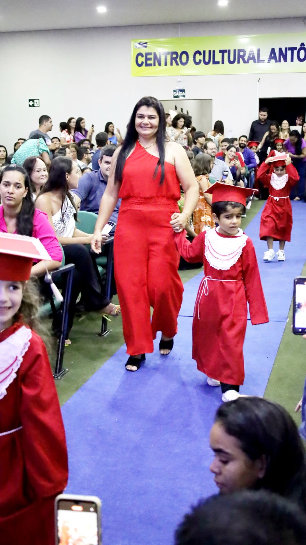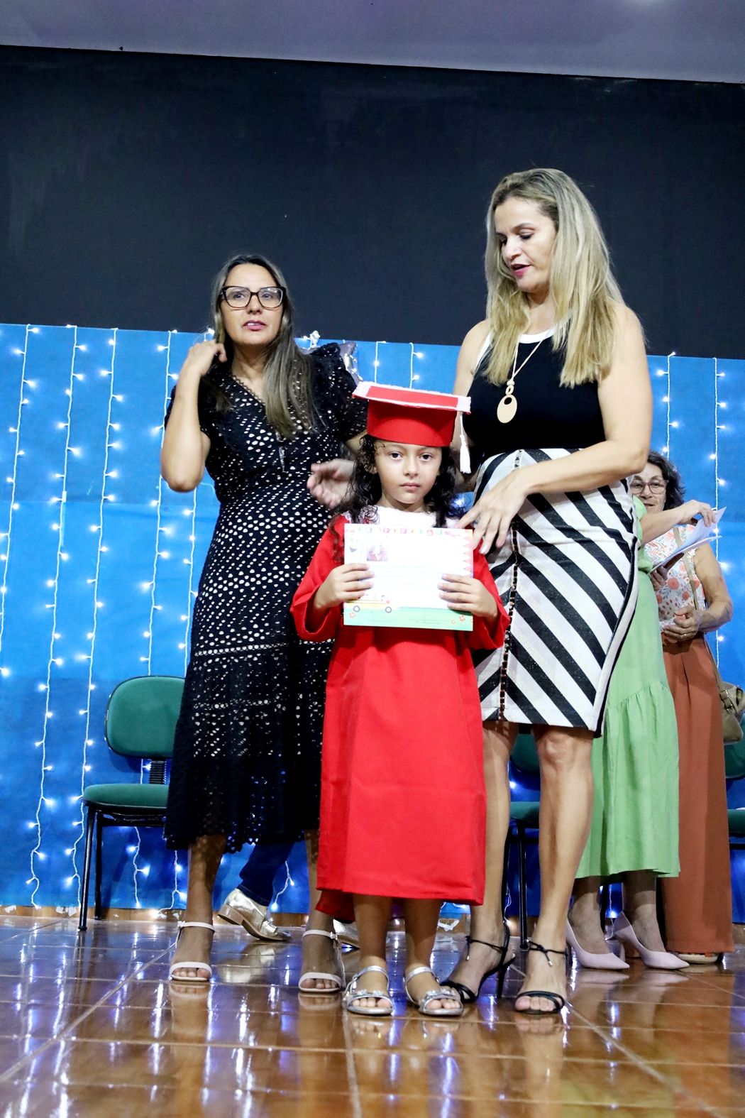 Na noite desta quinta-feira, 12 de dezembro, a Creche Betinho foi palco de uma emocionante cerimônia de formatura. O evento, que reuniu mais de 100 formandos, contou com a presença de familiares, amigos, professores e autoridades locais, incluindo a Secretária de Educação, Marcilene Rodrigues.