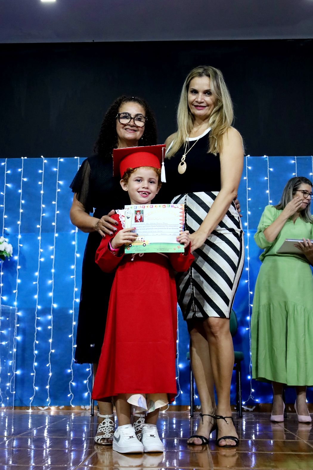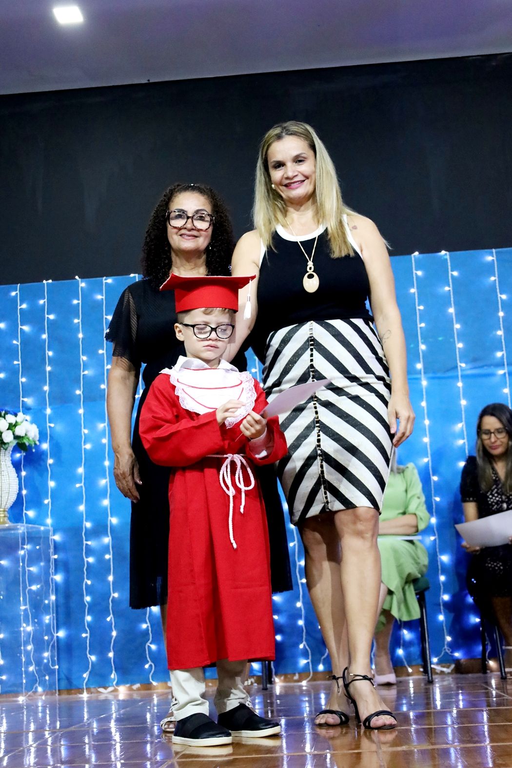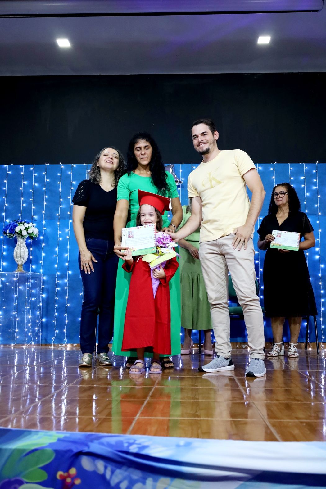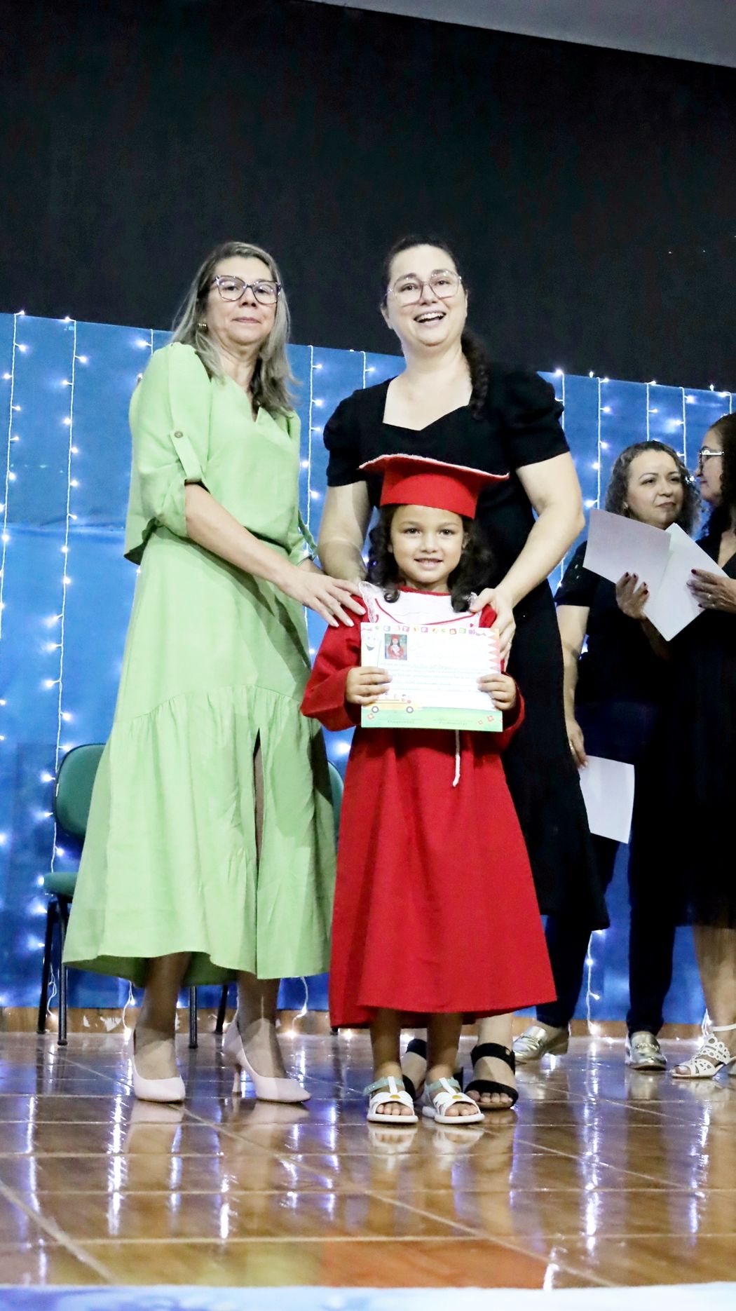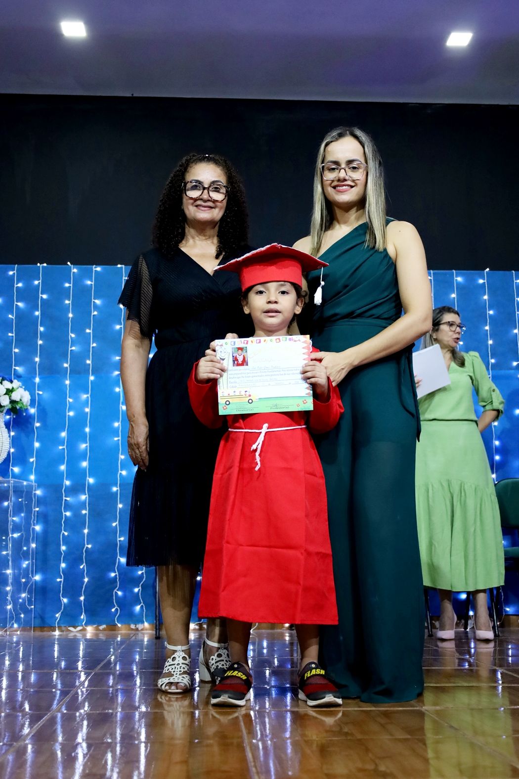 Na noite desta quinta-feira, 12 de dezembro, a Creche Betinho foi palco de uma emocionante cerimônia de formatura. O evento, que reuniu mais de 100 formandos, contou com a presença de familiares, amigos, professores e autoridades locais, incluindo a Secretária de Educação, Marcilene Rodrigues.