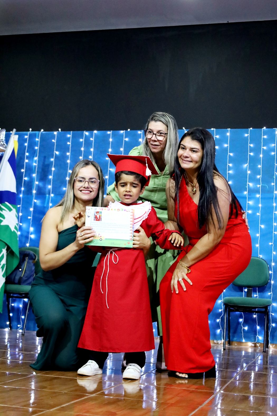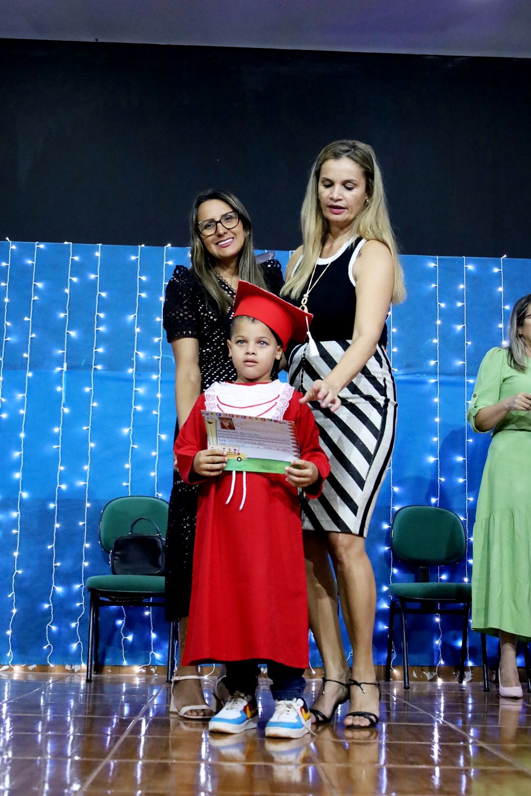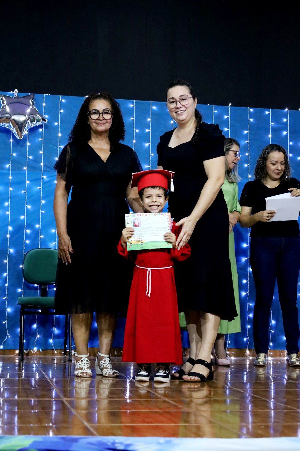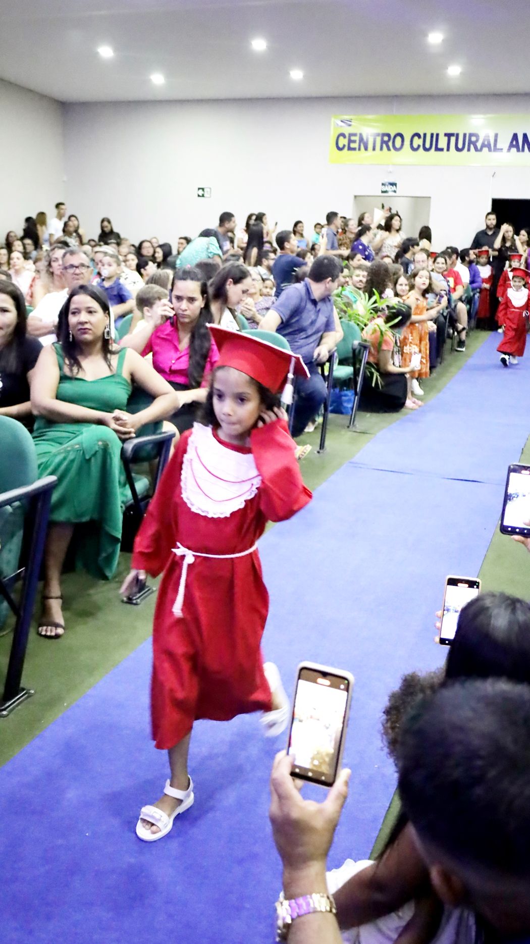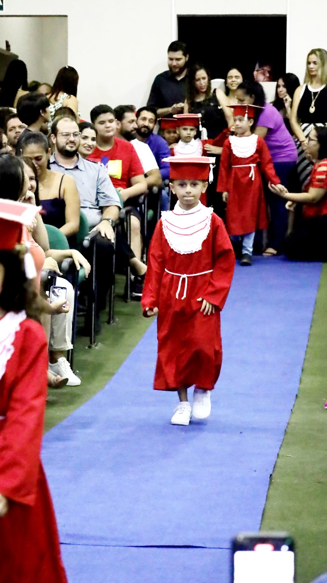 Na noite desta quinta-feira, 12 de dezembro, a Creche Betinho foi palco de uma emocionante cerimônia de formatura. O evento, que reuniu mais de 100 formandos, contou com a presença de familiares, amigos, professores e autoridades locais, incluindo a Secretária de Educação, Marcilene Rodrigues.