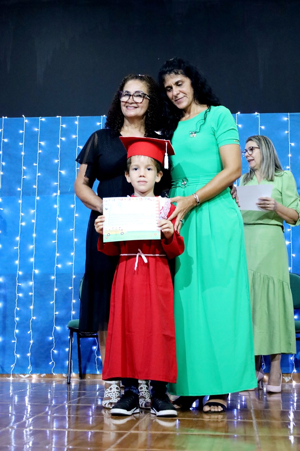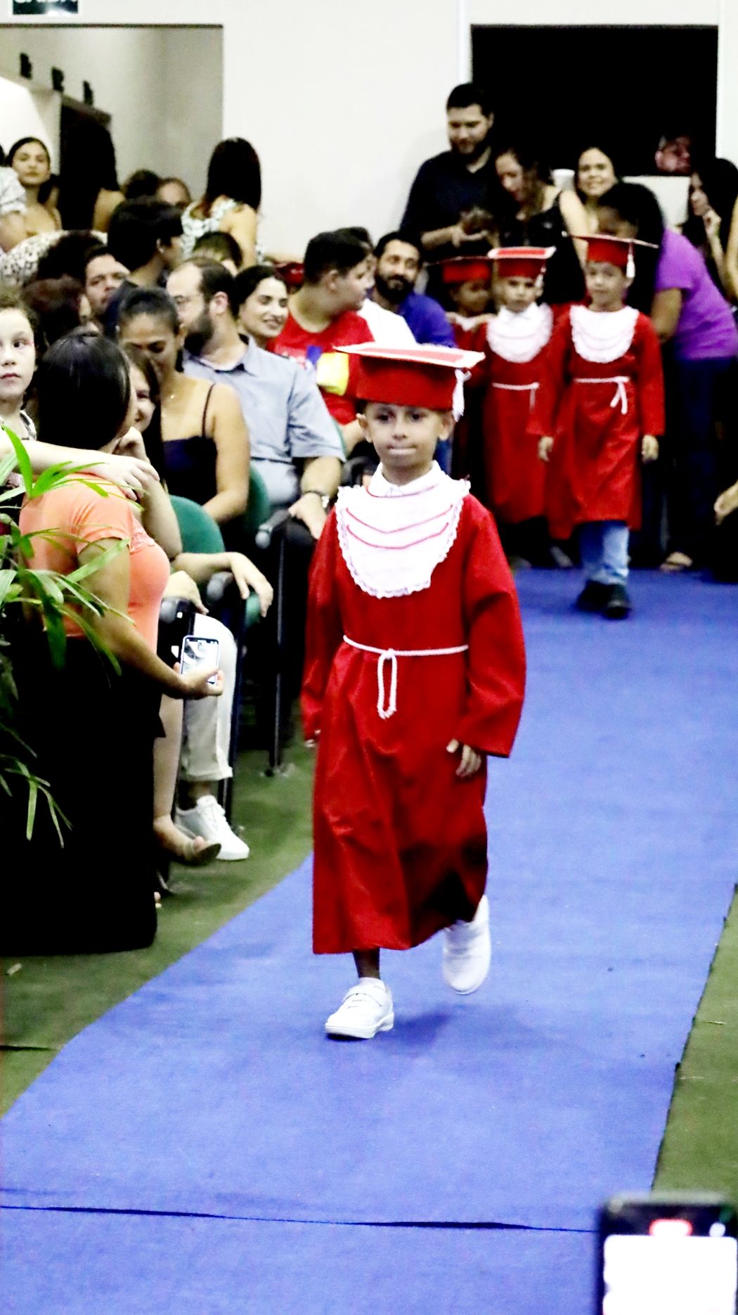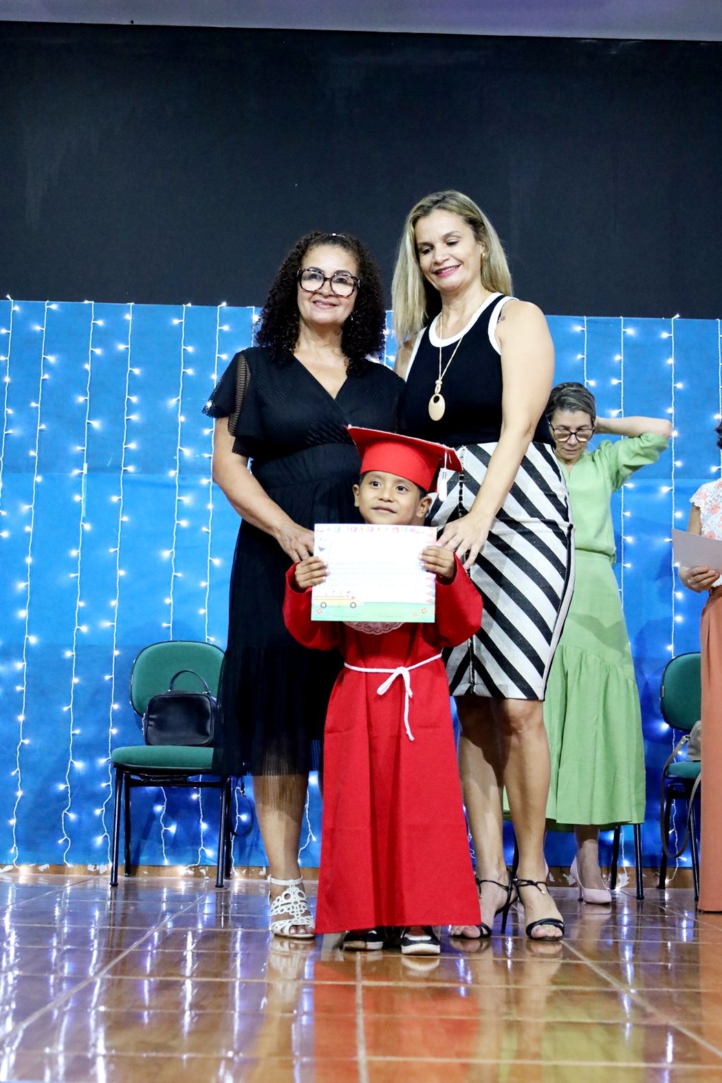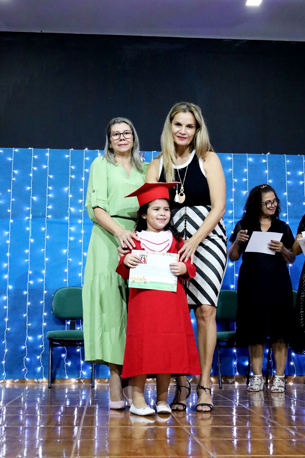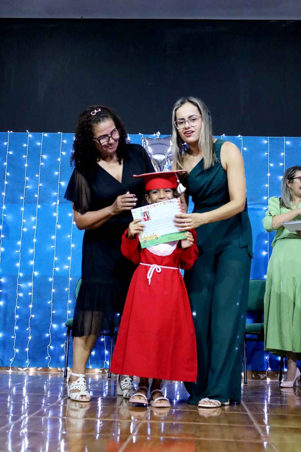 Na noite desta quinta-feira, 12 de dezembro, a Creche Betinho foi palco de uma emocionante cerimônia de formatura. O evento, que reuniu mais de 100 formandos, contou com a presença de familiares, amigos, professores e autoridades locais, incluindo a Secretária de Educação, Marcilene Rodrigues.
