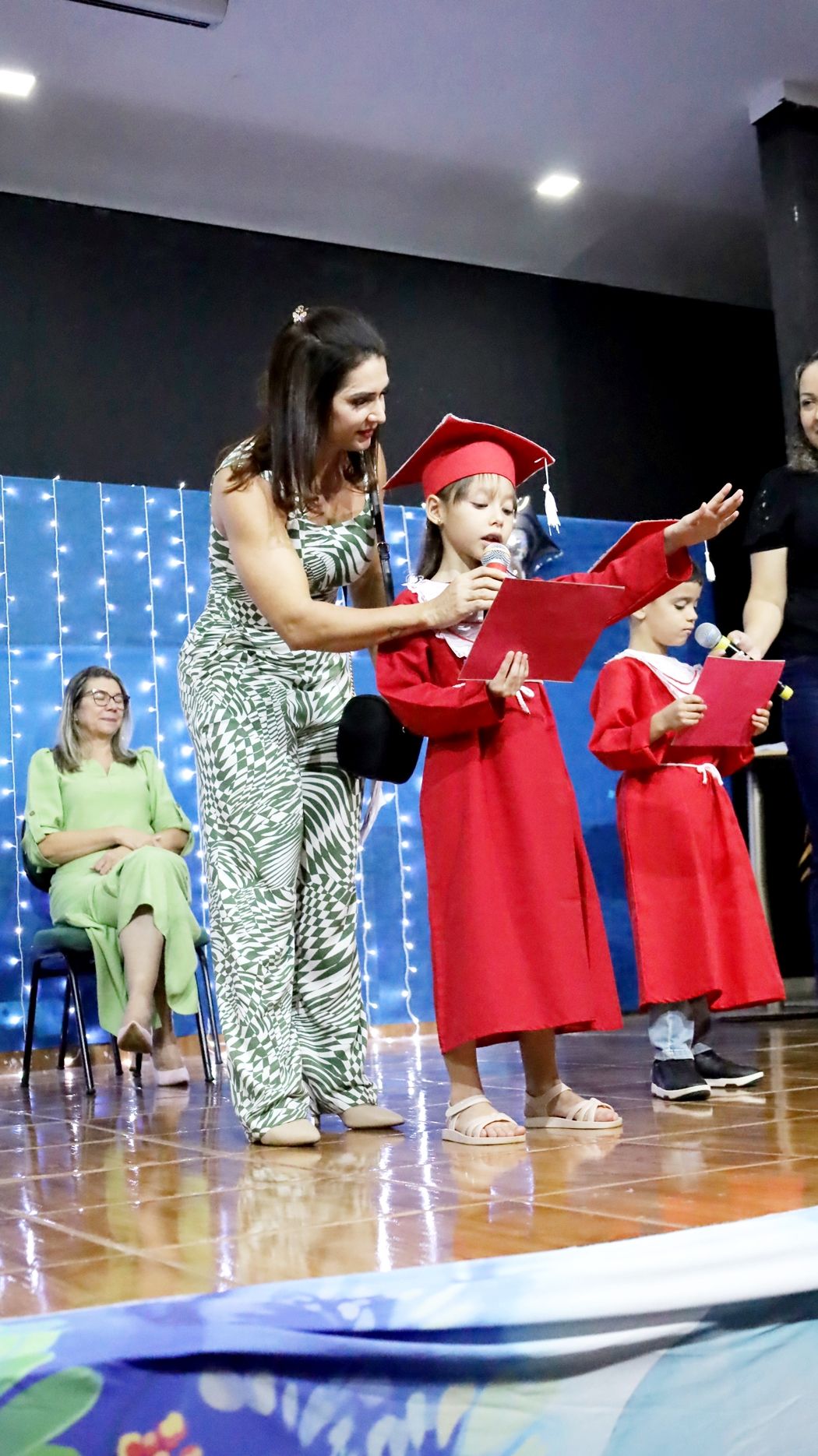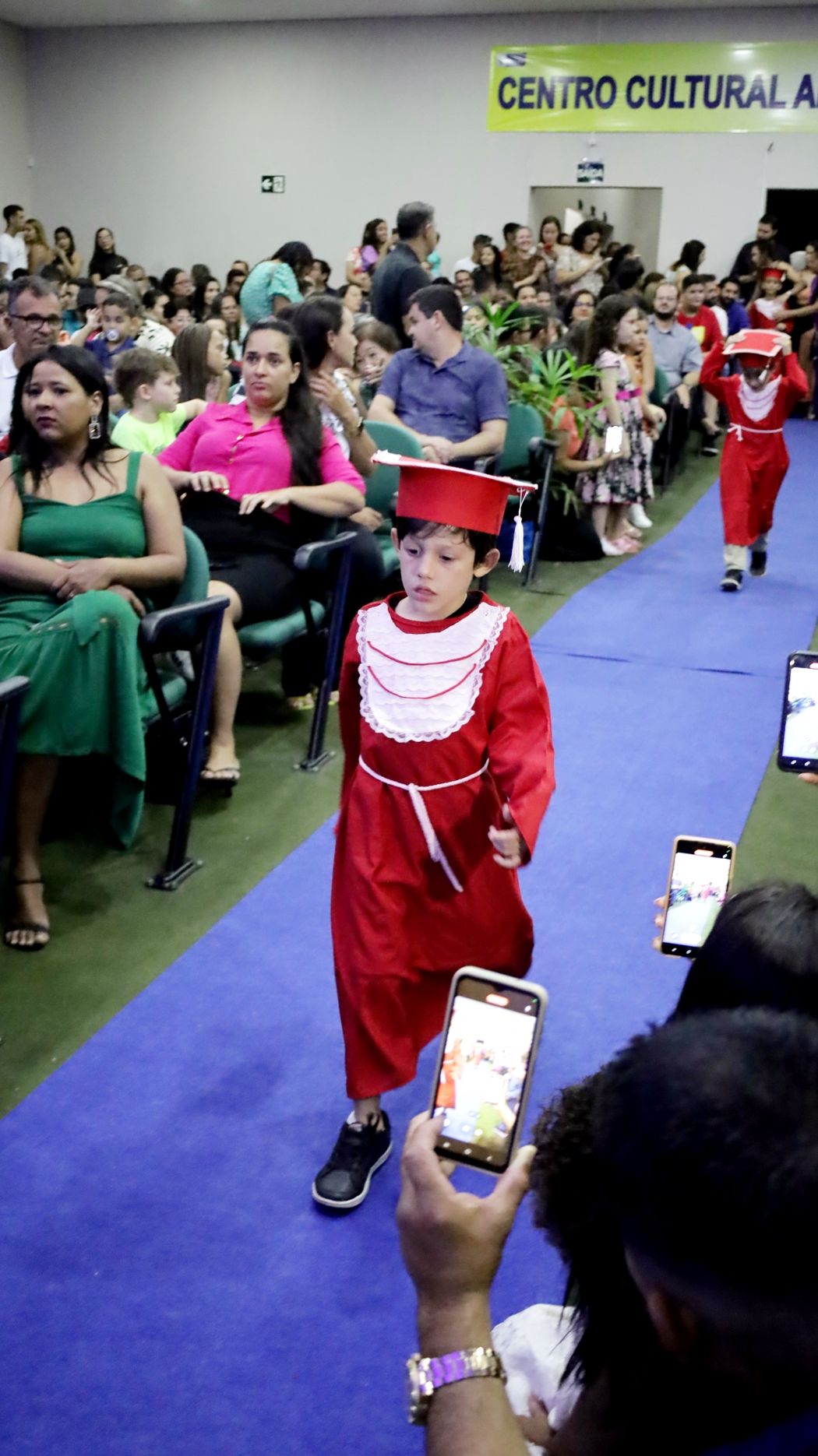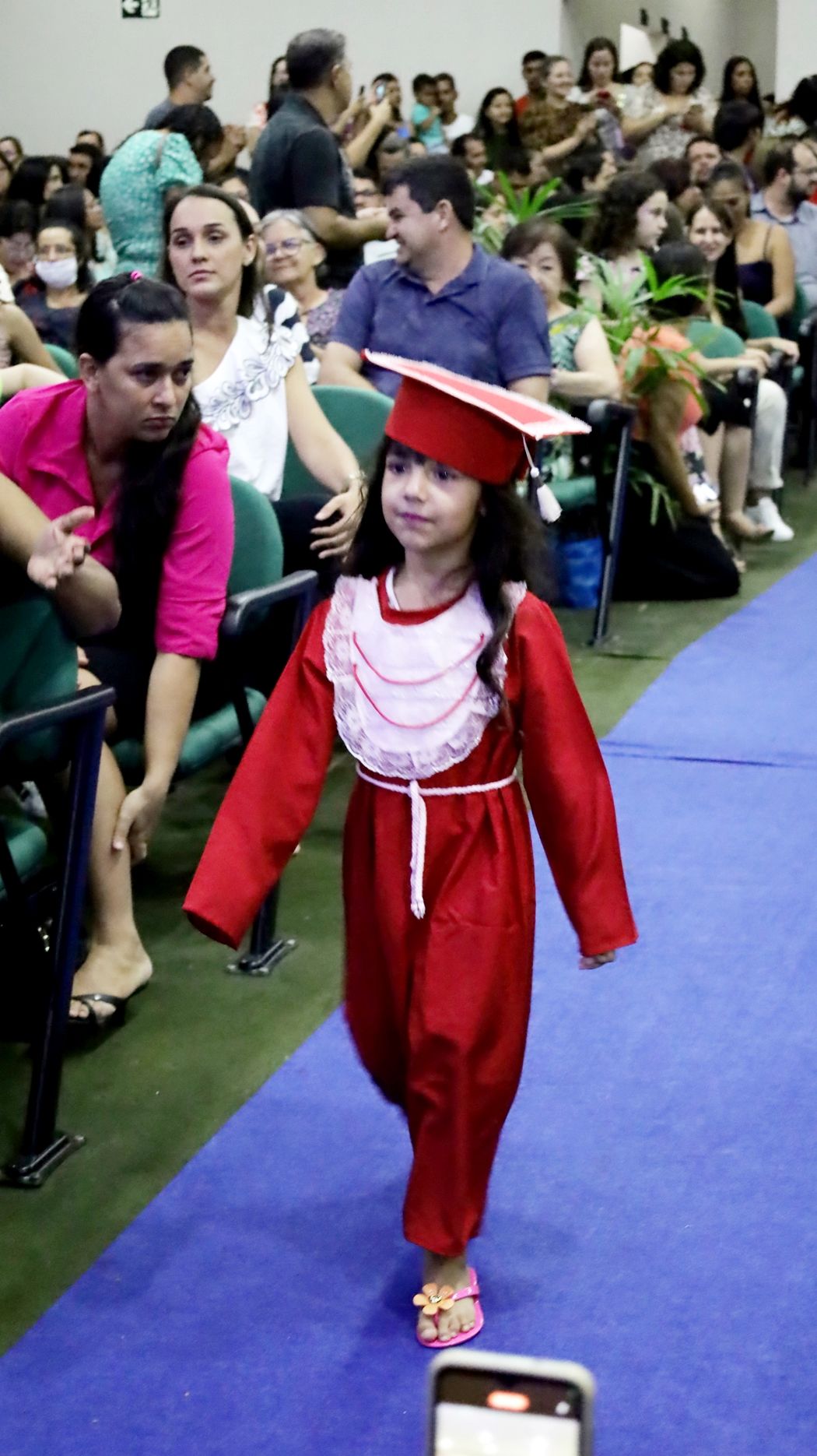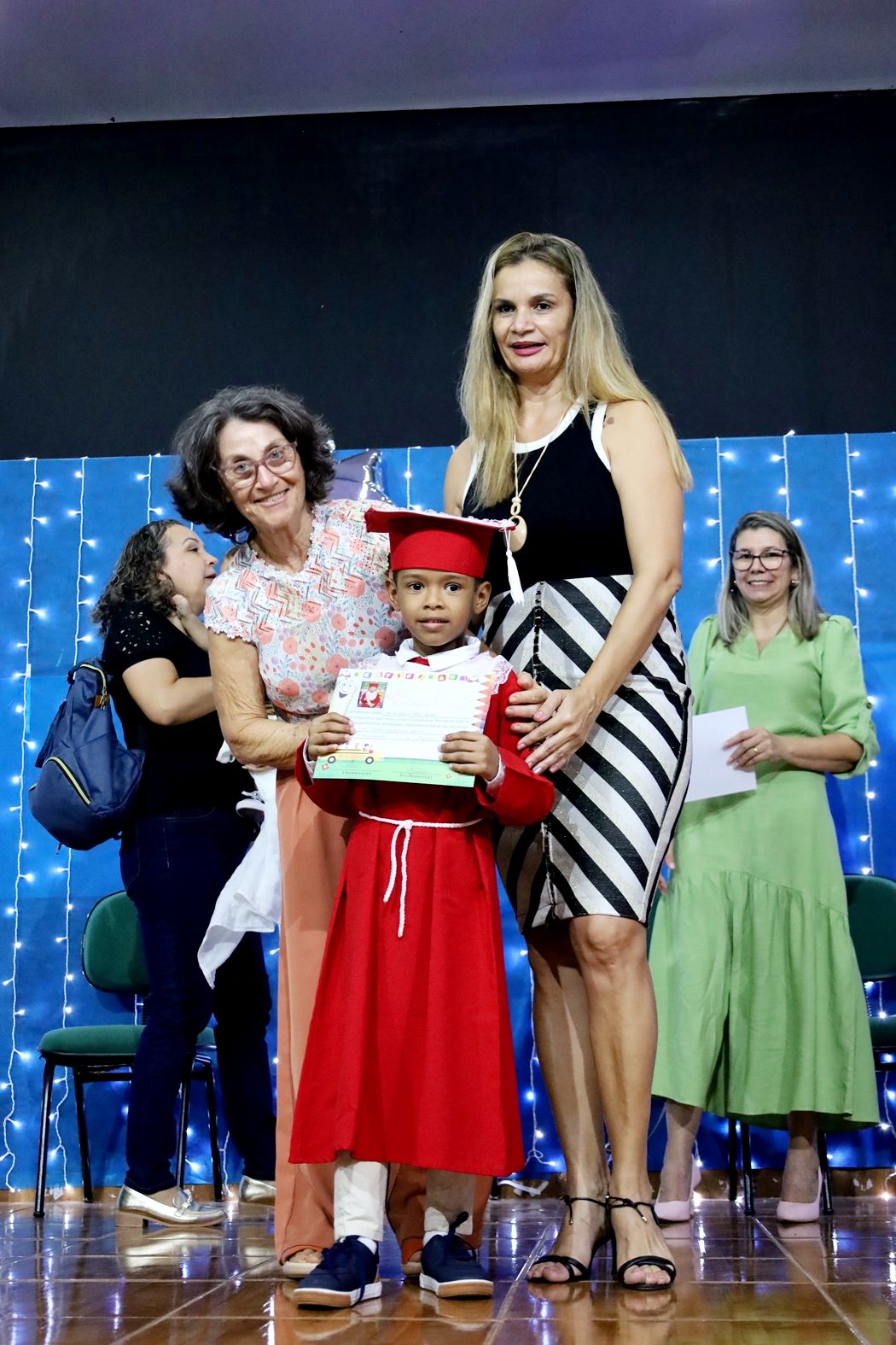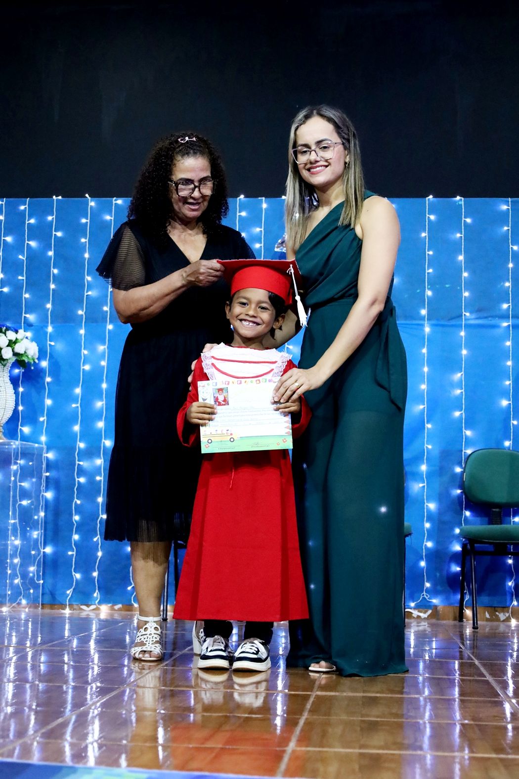 Na noite desta quinta-feira, 12 de dezembro, a Creche Betinho foi palco de uma emocionante cerimônia de formatura. O evento, que reuniu mais de 100 formandos, contou com a presença de familiares, amigos, professores e autoridades locais, incluindo a Secretária de Educação, Marcilene Rodrigues.