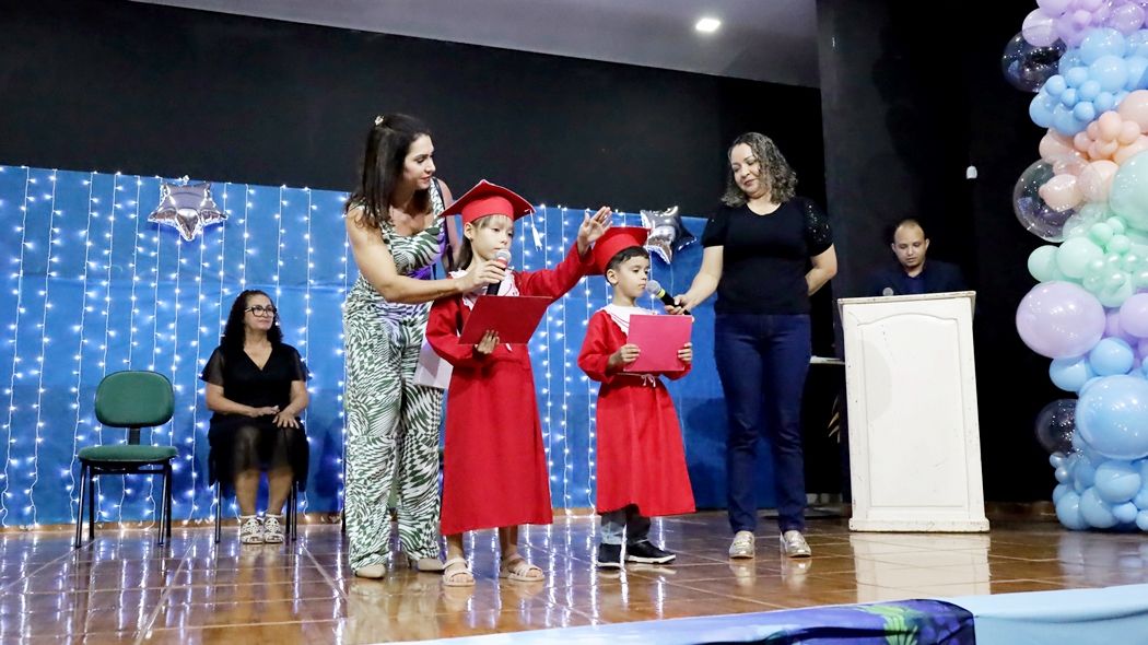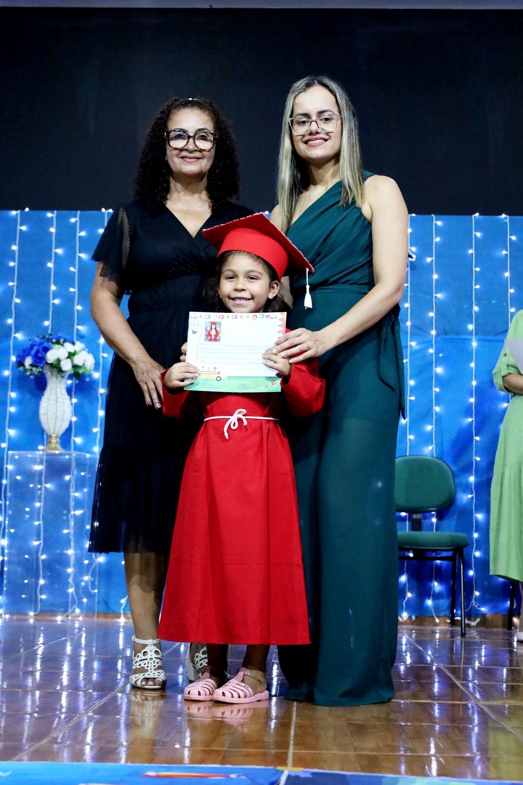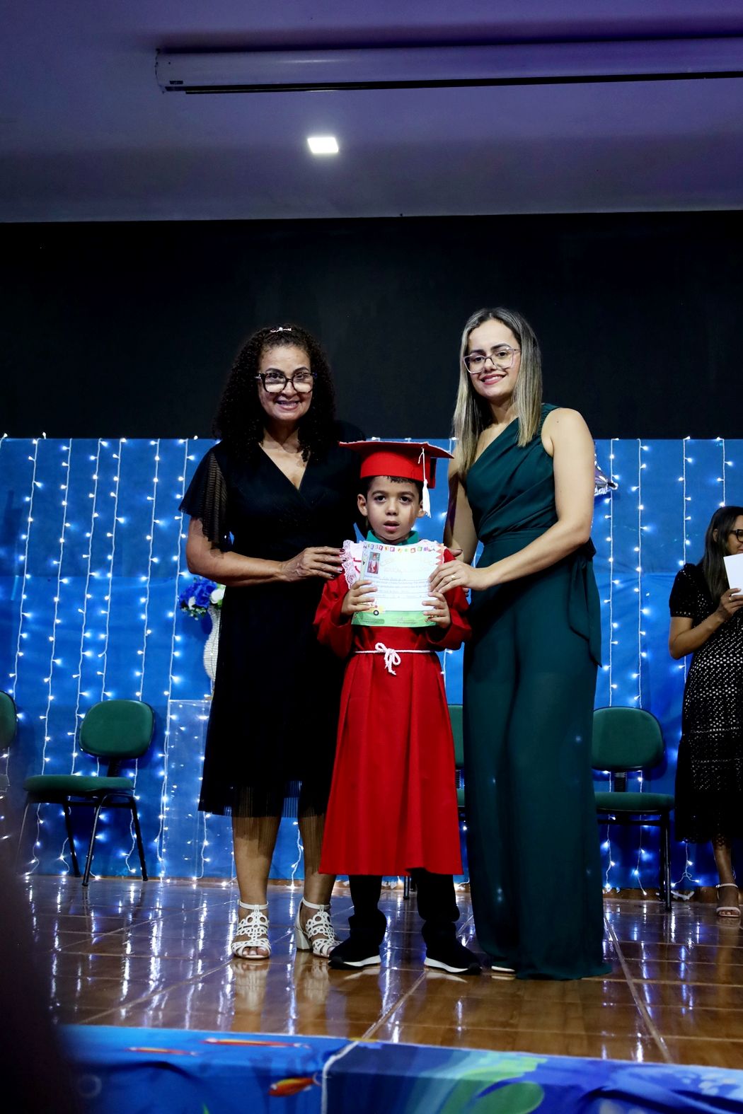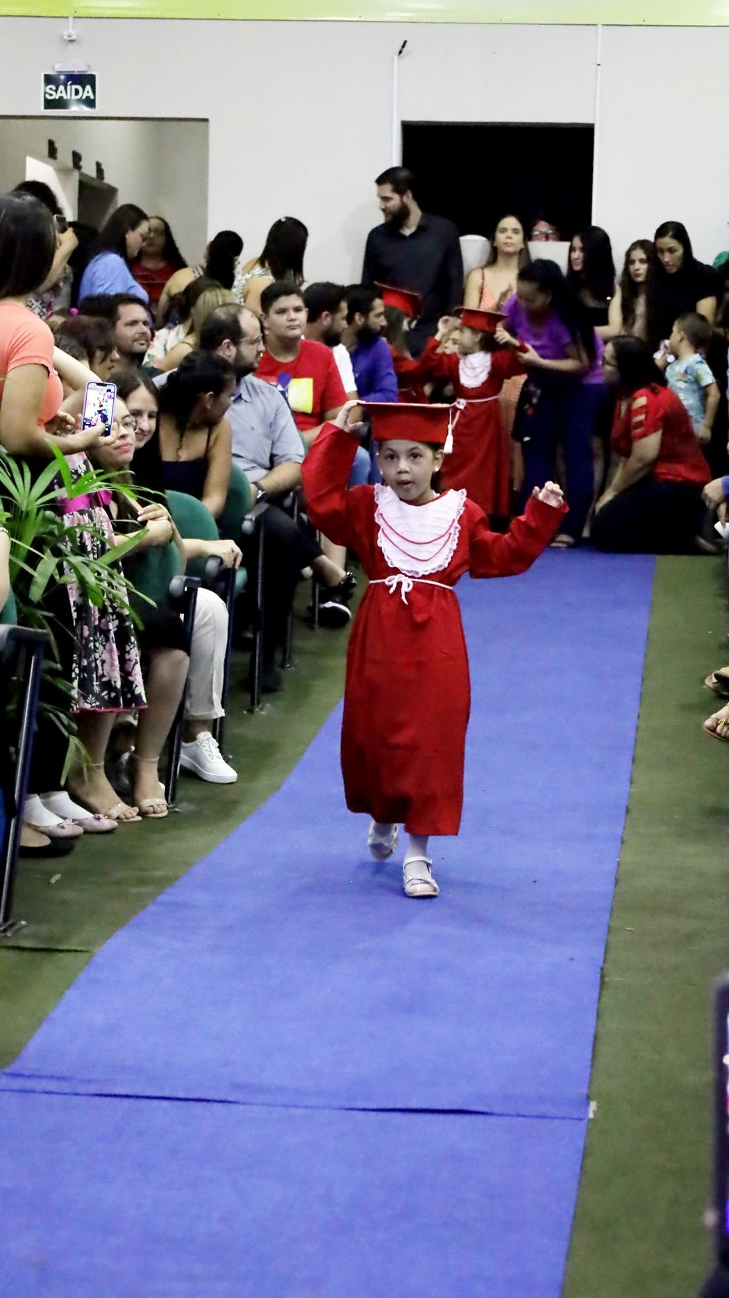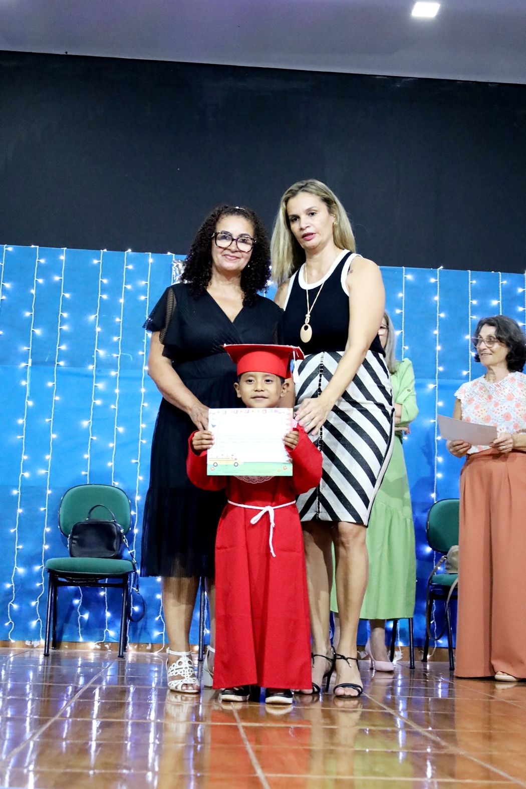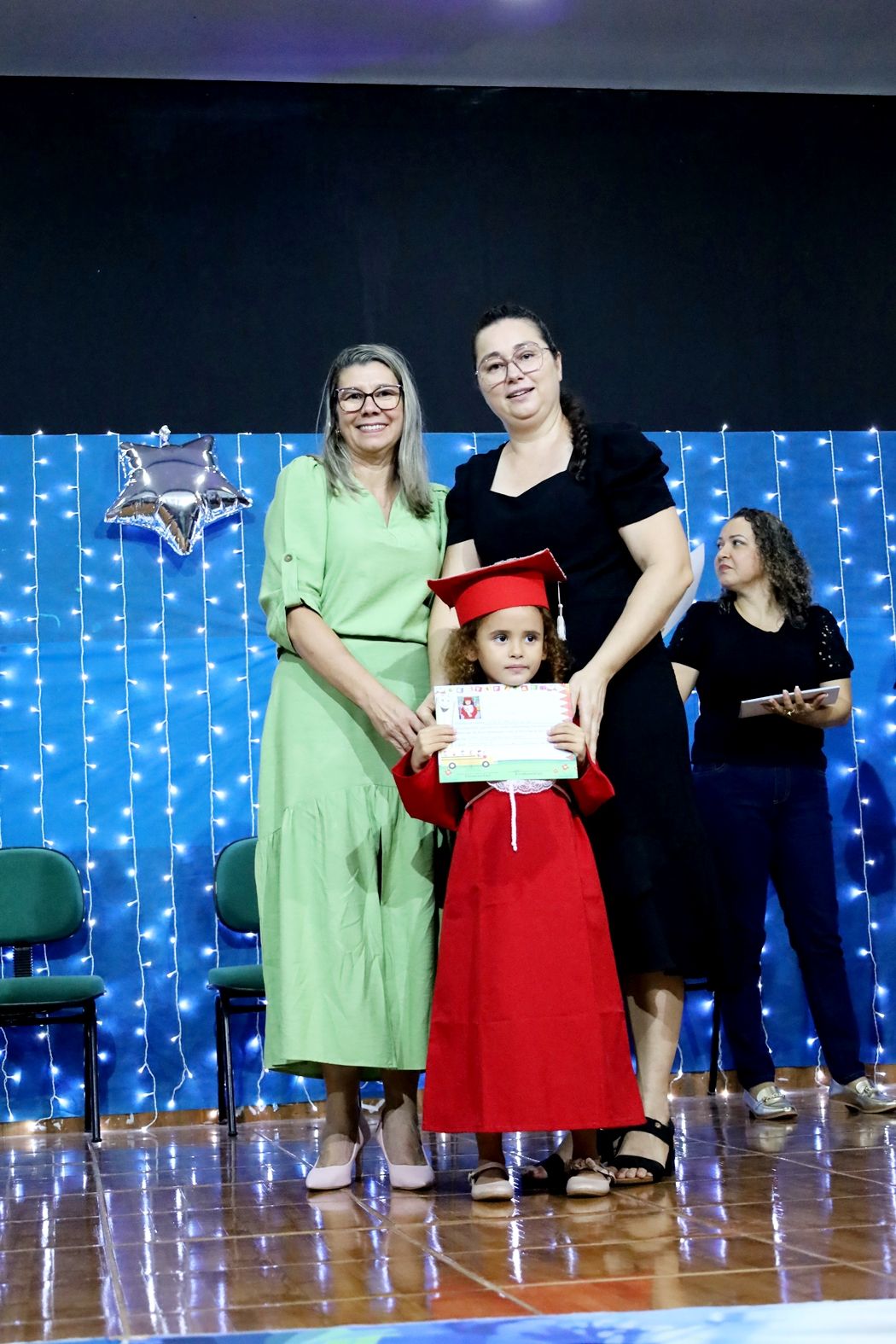 Na noite desta quinta-feira, 12 de dezembro, a Creche Betinho foi palco de uma emocionante cerimônia de formatura. O evento, que reuniu mais de 100 formandos, contou com a presença de familiares, amigos, professores e autoridades locais, incluindo a Secretária de Educação, Marcilene Rodrigues.