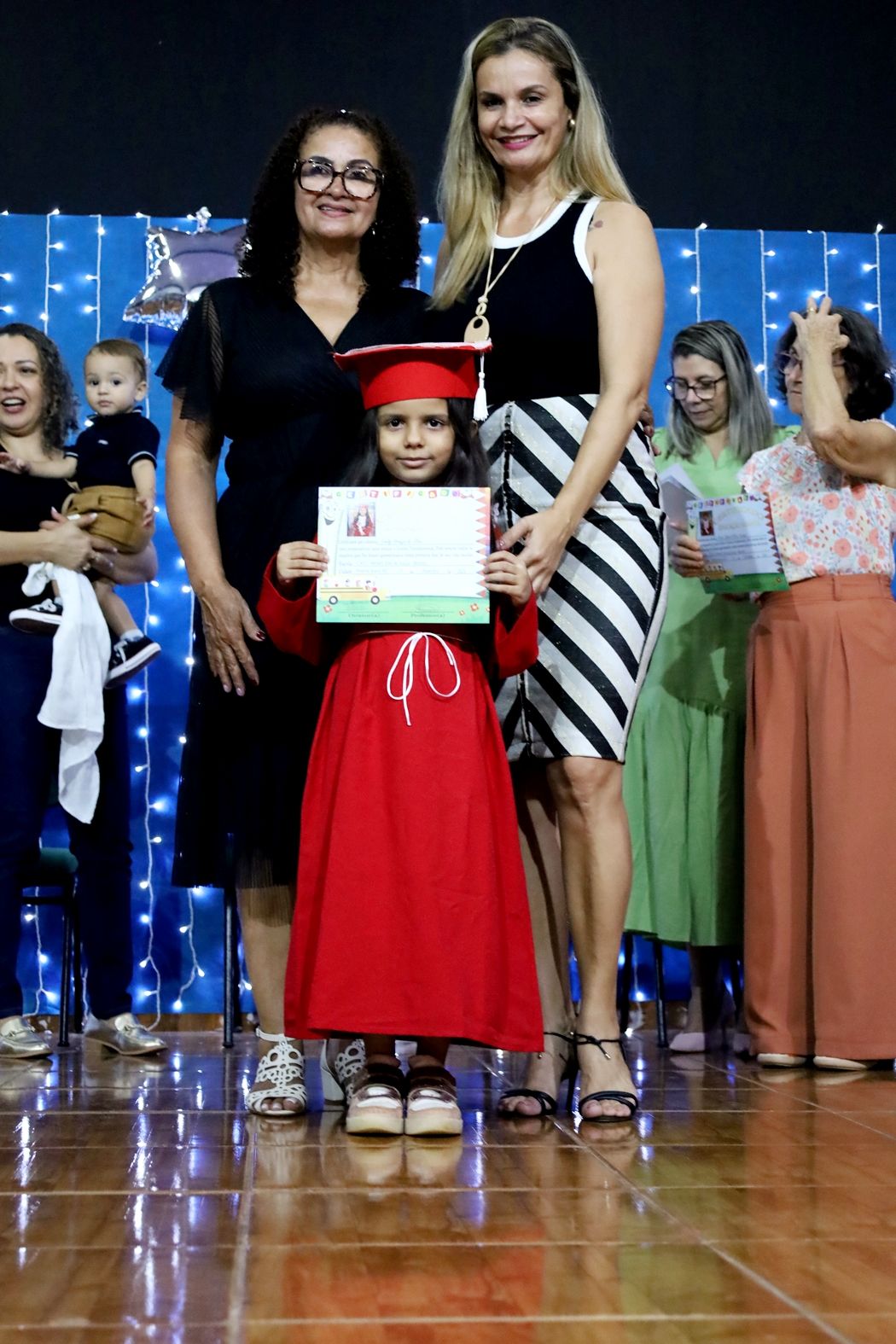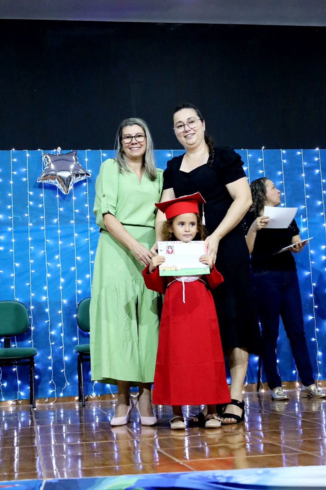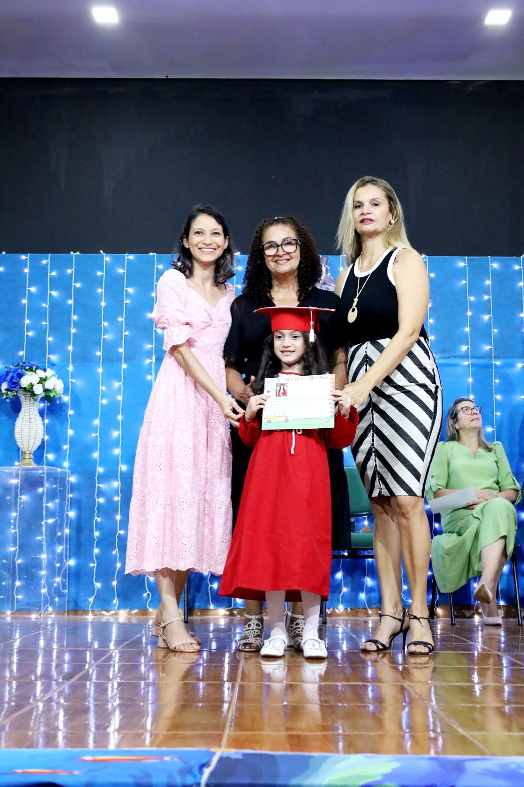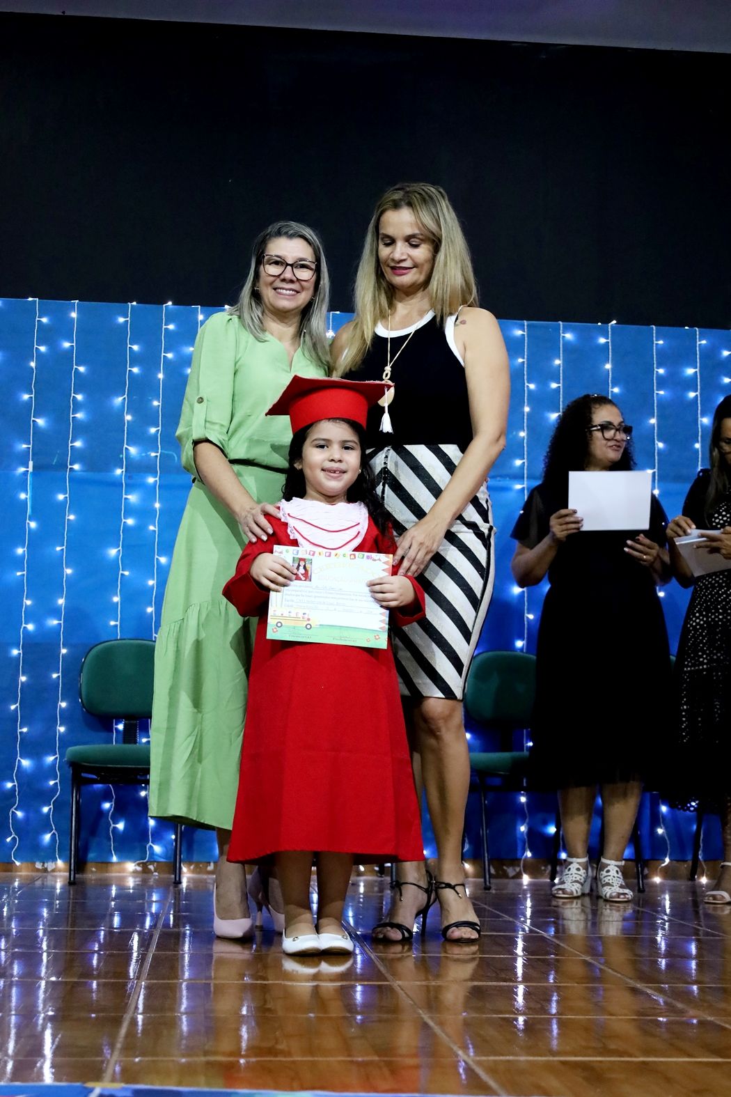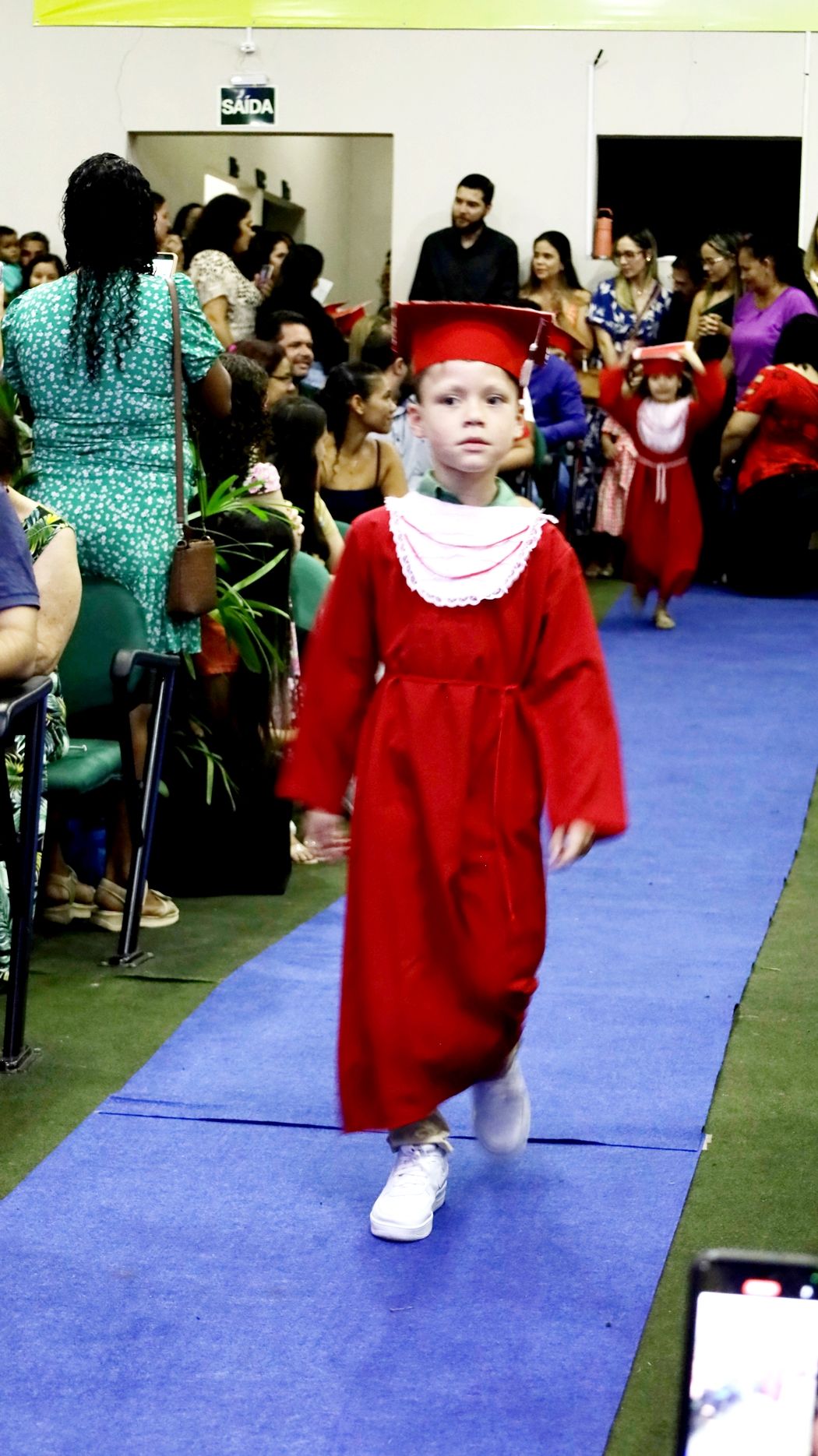Na noite desta quinta-feira, 12 de dezembro, a Creche Betinho foi palco de uma emocionante cerimônia de formatura. O evento, que reuniu mais de 100 formandos, contou com a presença de familiares, amigos, professores e autoridades locais, incluindo a Secretária de Educação, Marcilene Rodrigues.