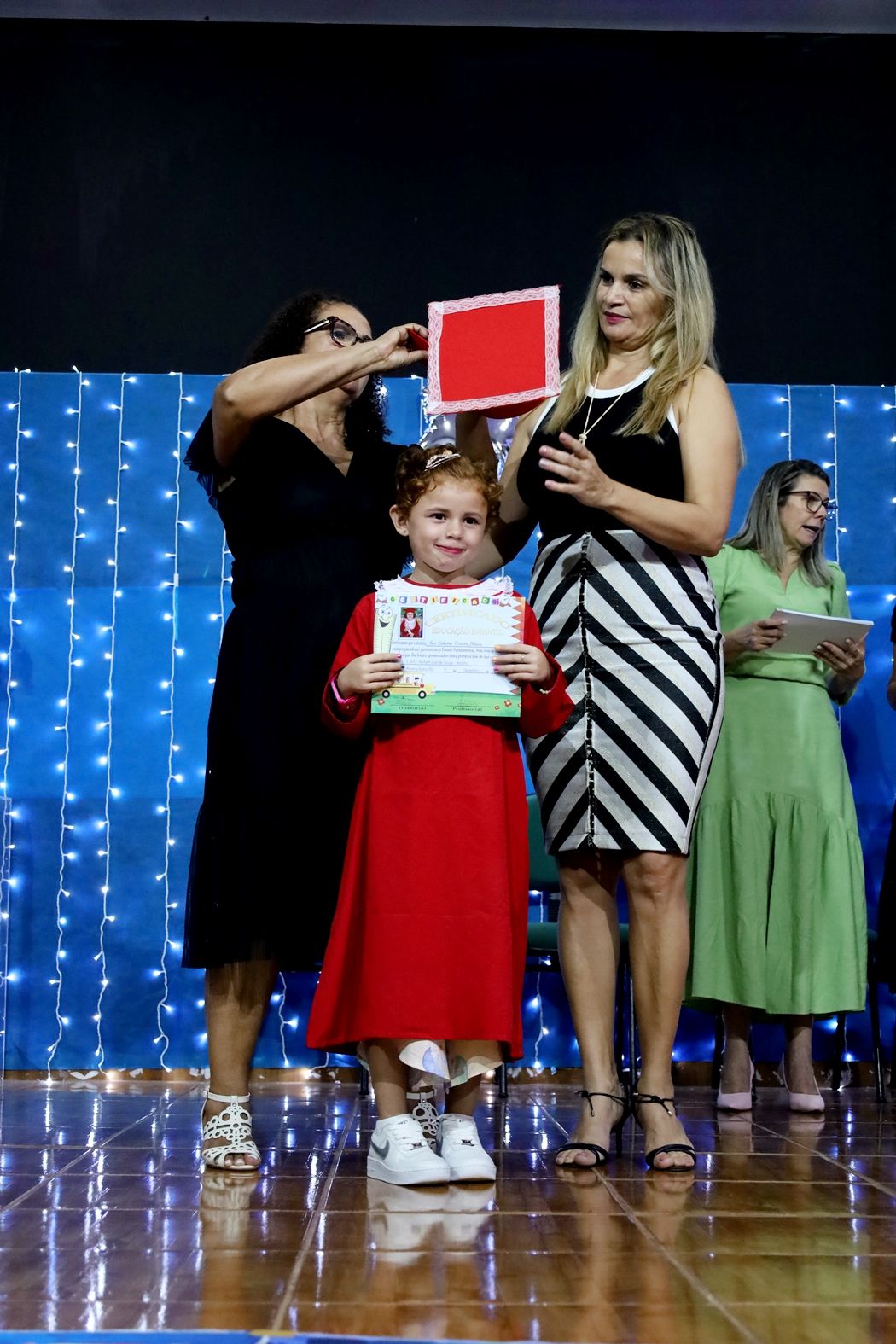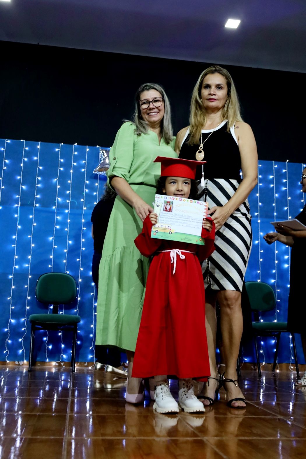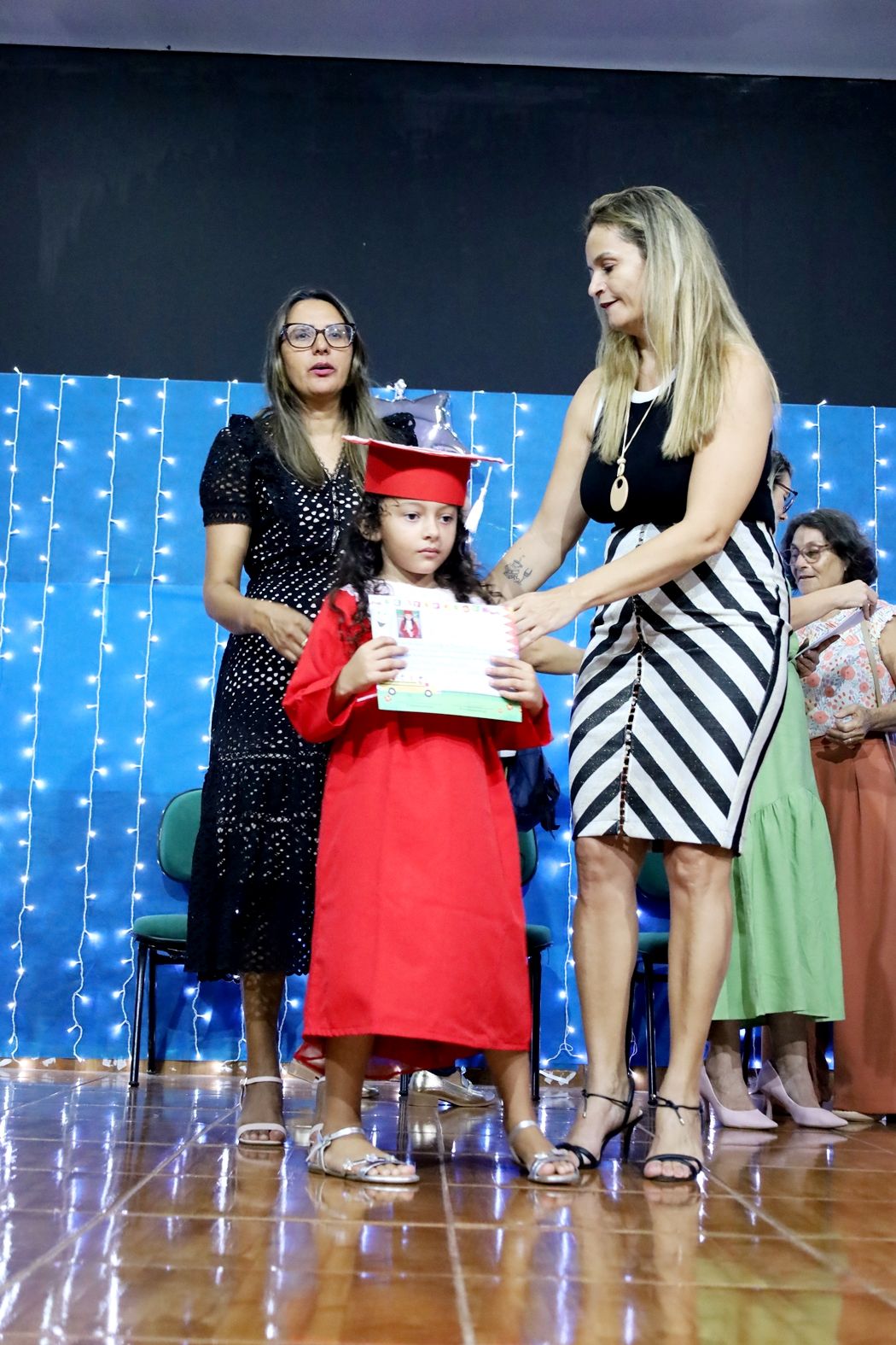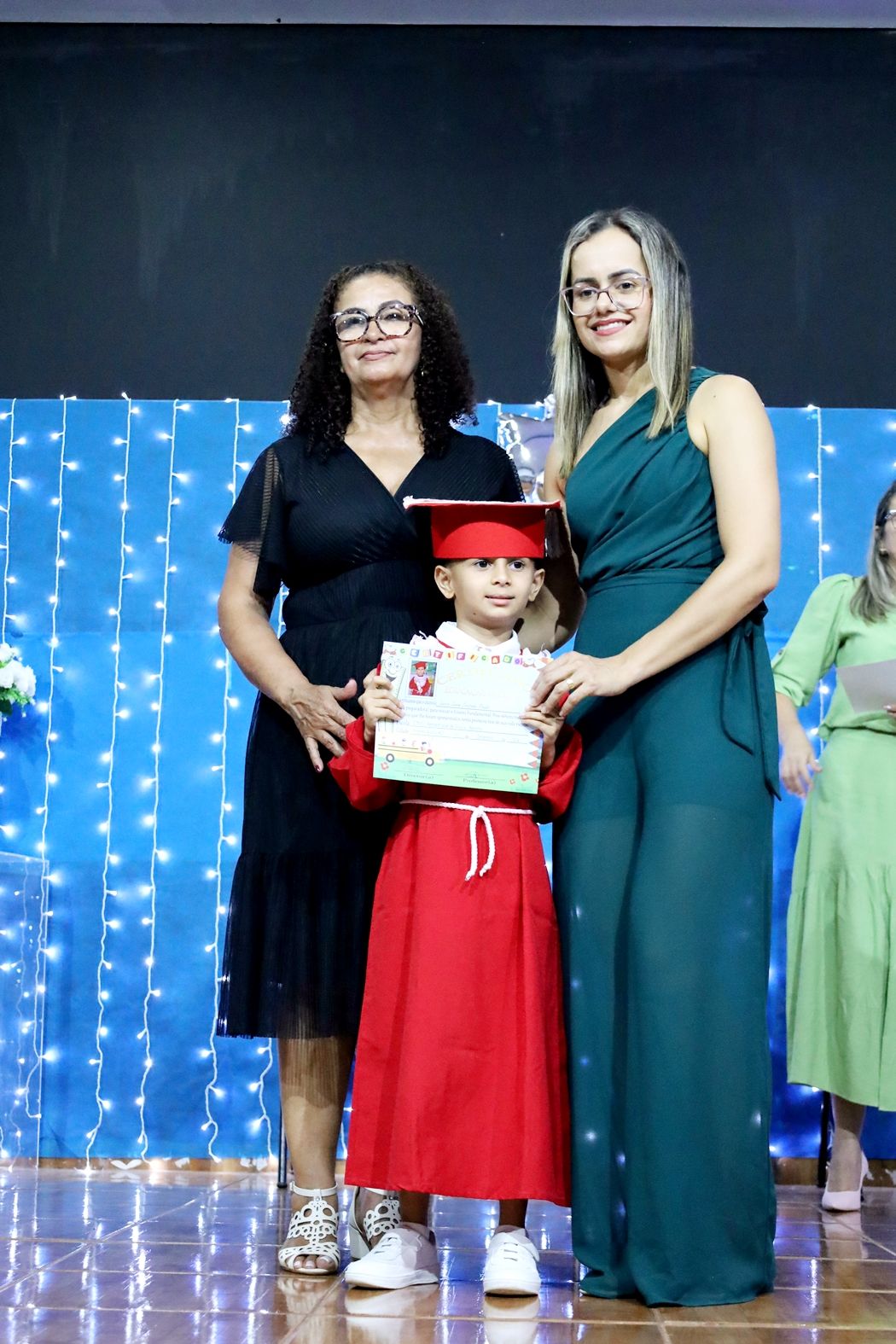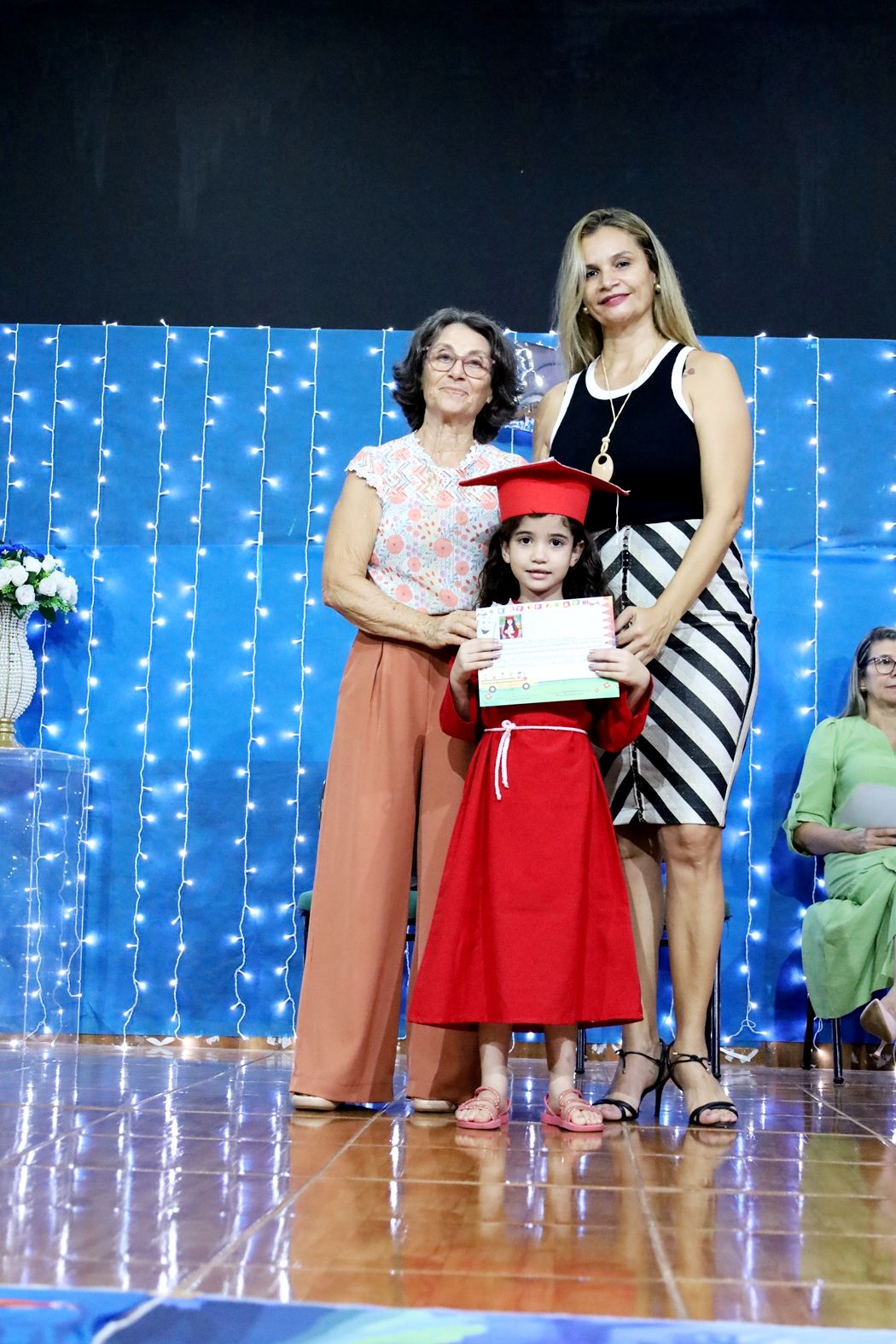 Na noite desta quinta-feira, 12 de dezembro, a Creche Betinho foi palco de uma emocionante cerimônia de formatura. O evento, que reuniu mais de 100 formandos, contou com a presença de familiares, amigos, professores e autoridades locais, incluindo a Secretária de Educação, Marcilene Rodrigues.