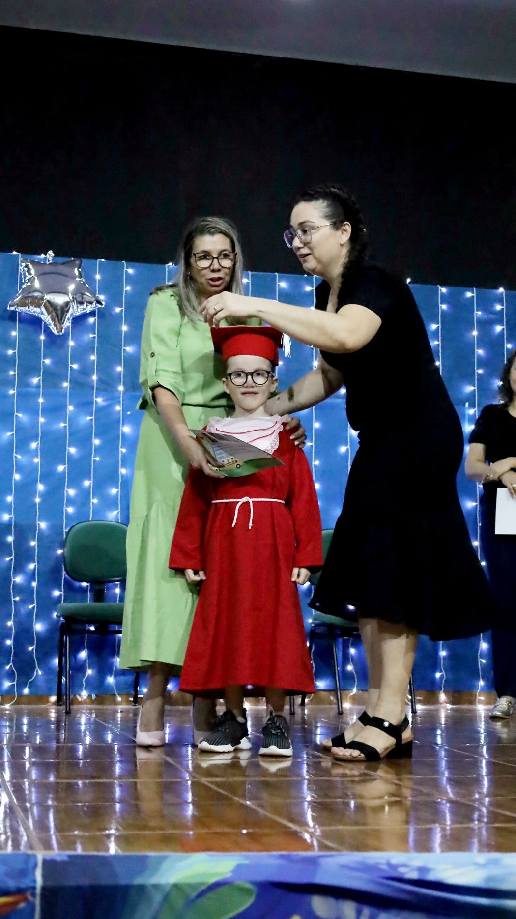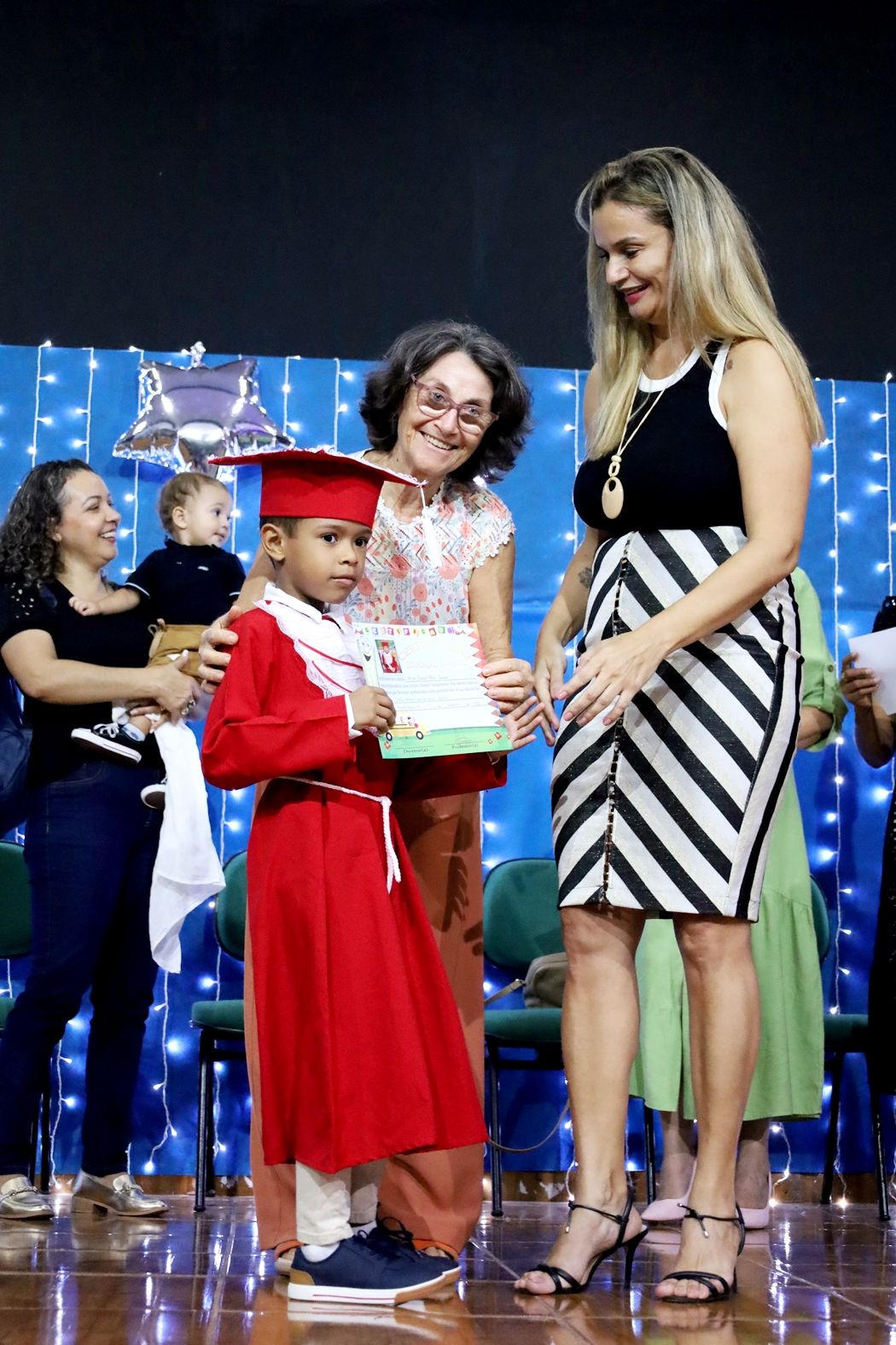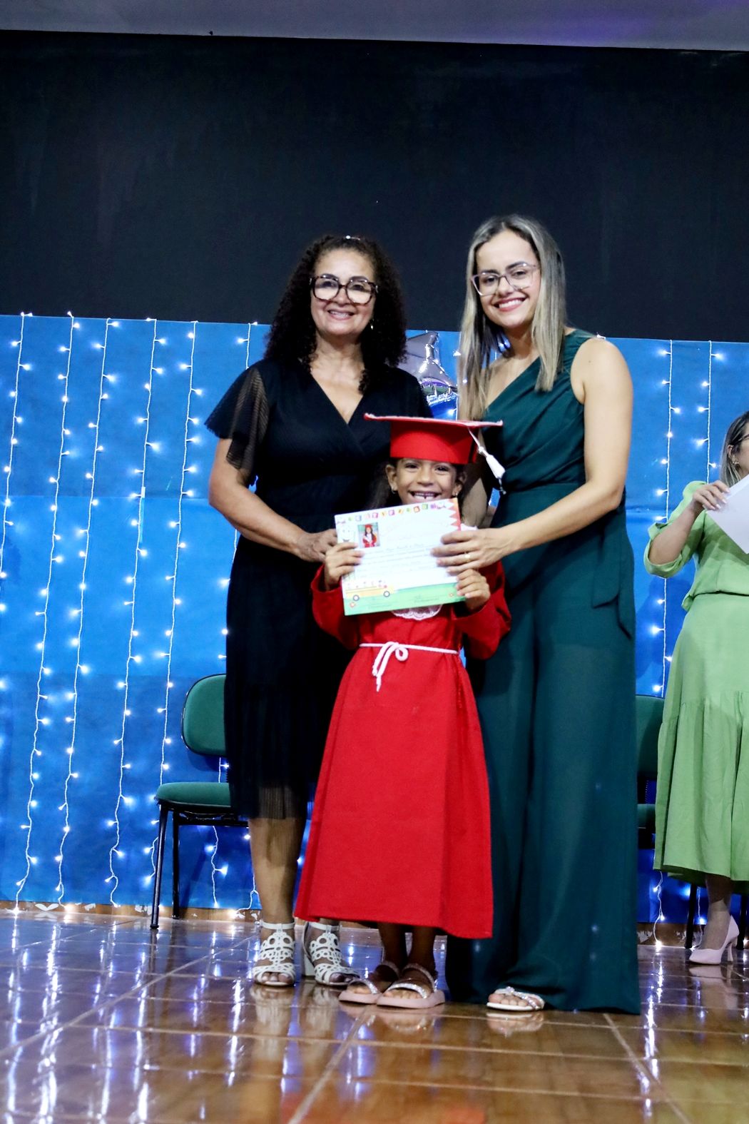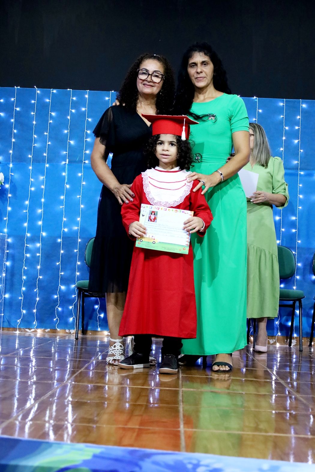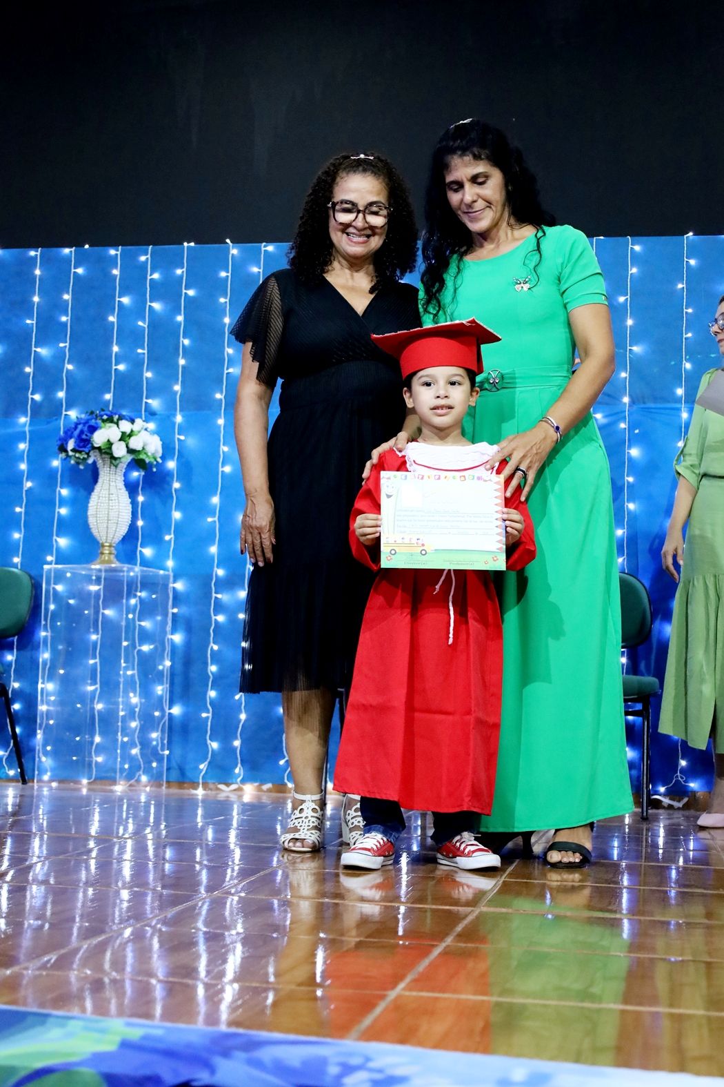 Na noite desta quinta-feira, 12 de dezembro, a Creche Betinho foi palco de uma emocionante cerimônia de formatura. O evento, que reuniu mais de 100 formandos, contou com a presença de familiares, amigos, professores e autoridades locais, incluindo a Secretária de Educação, Marcilene Rodrigues.