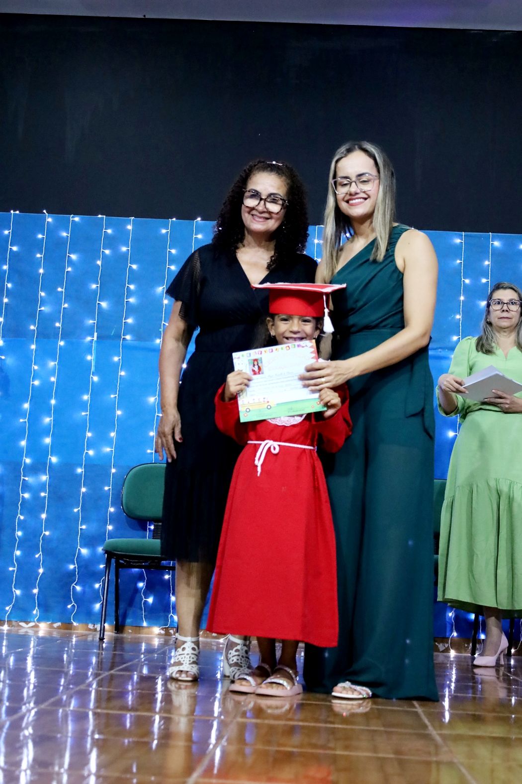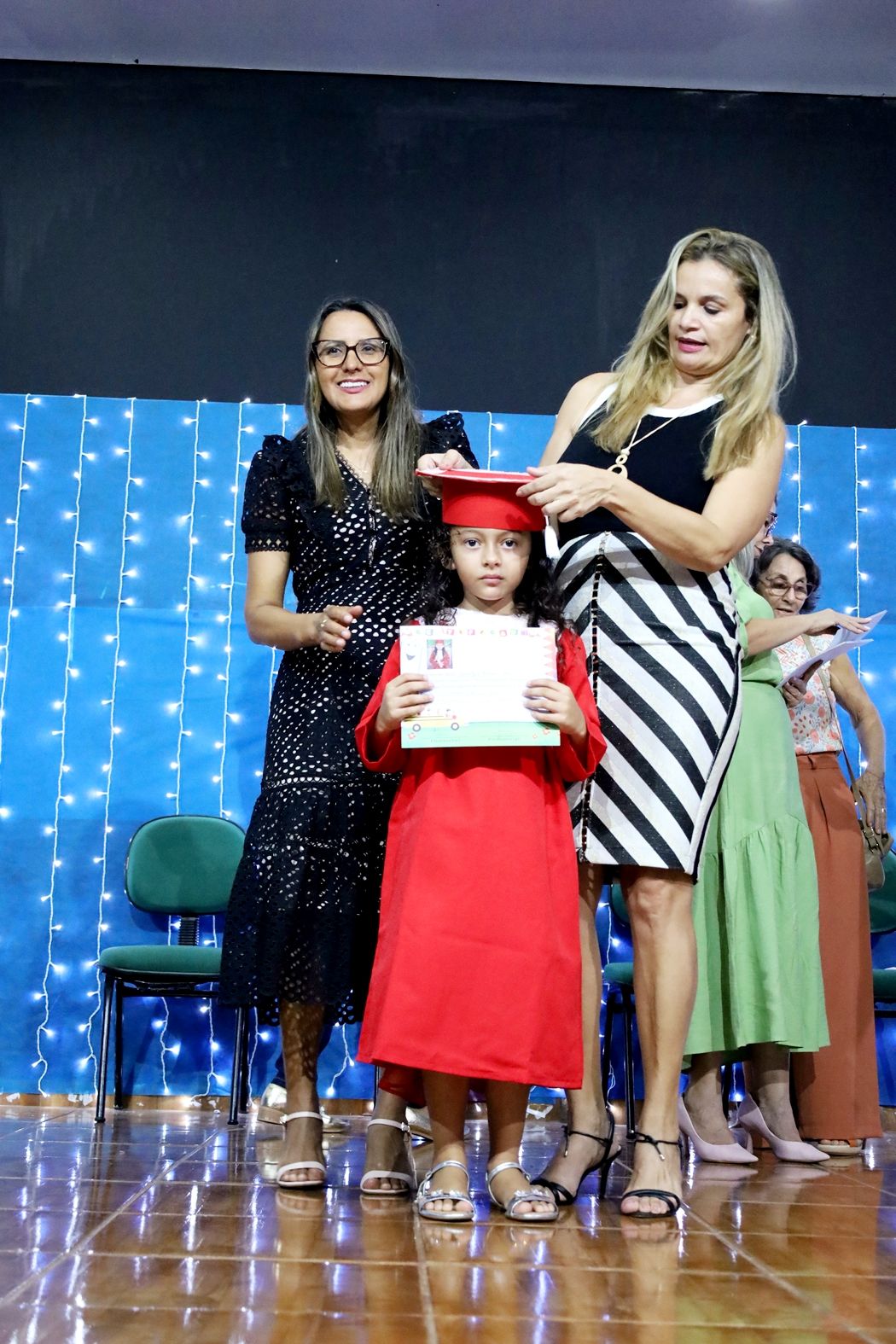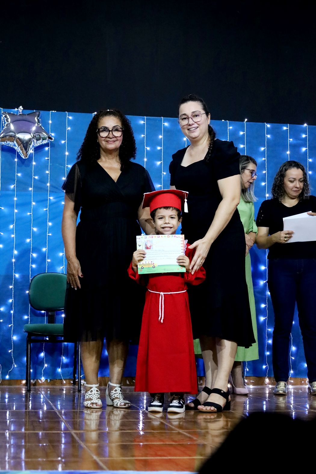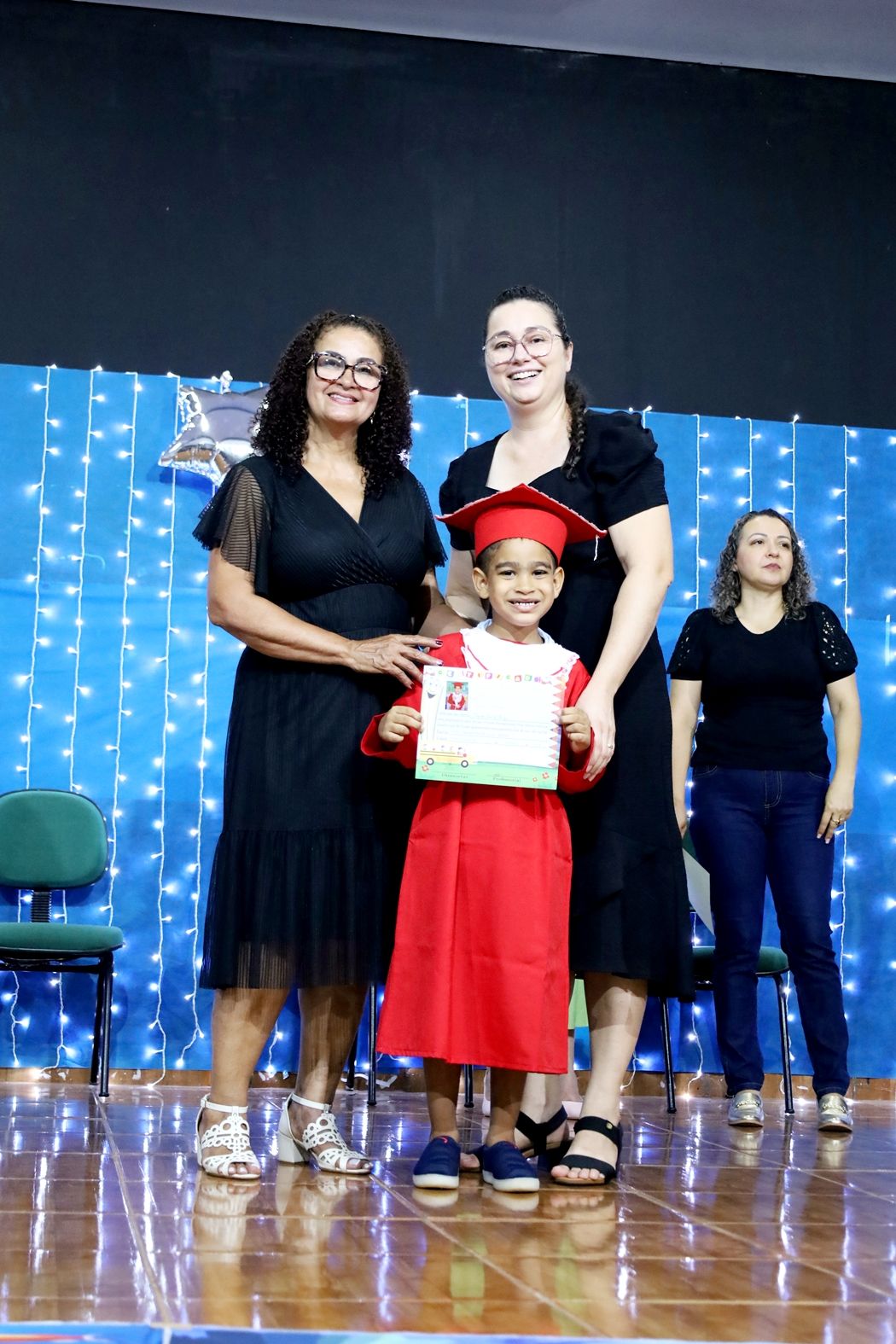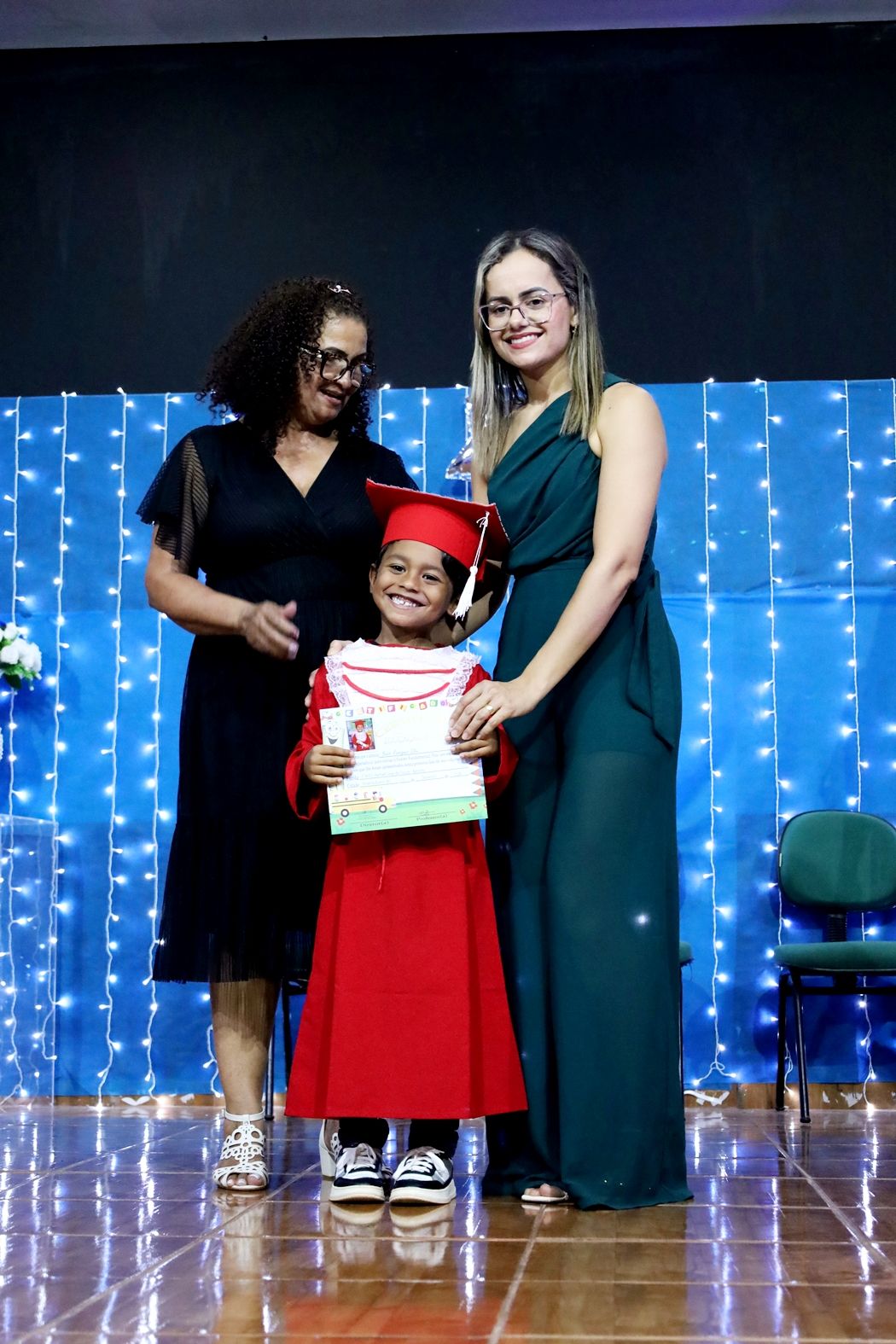 Na noite desta quinta-feira, 12 de dezembro, a Creche Betinho foi palco de uma emocionante cerimônia de formatura. O evento, que reuniu mais de 100 formandos, contou com a presença de familiares, amigos, professores e autoridades locais, incluindo a Secretária de Educação, Marcilene Rodrigues.