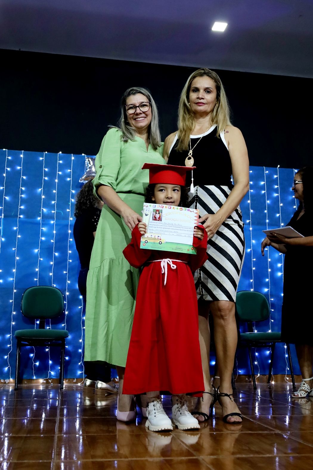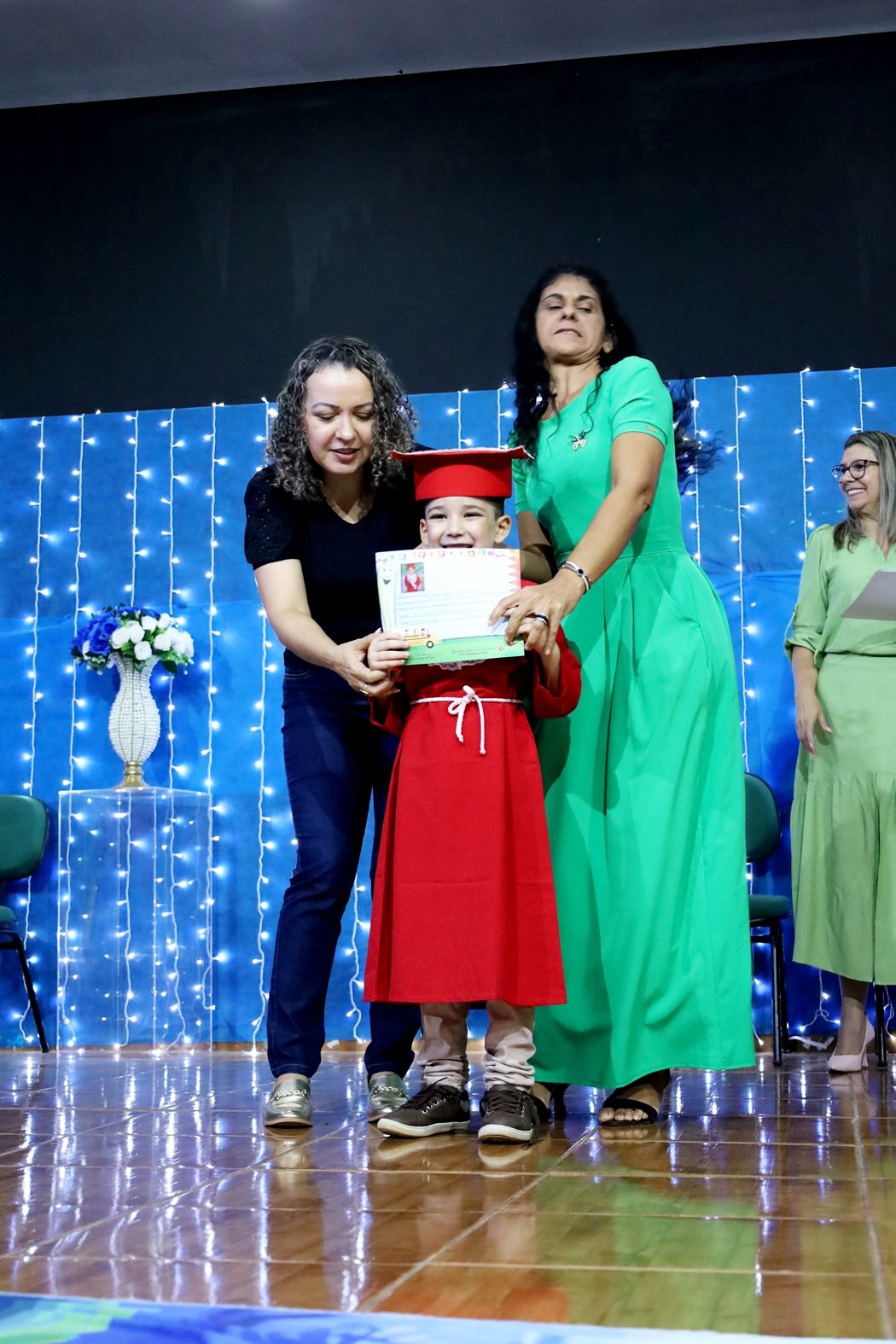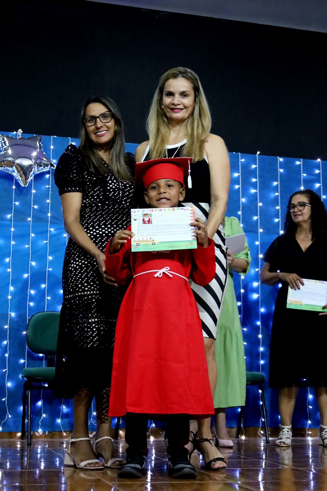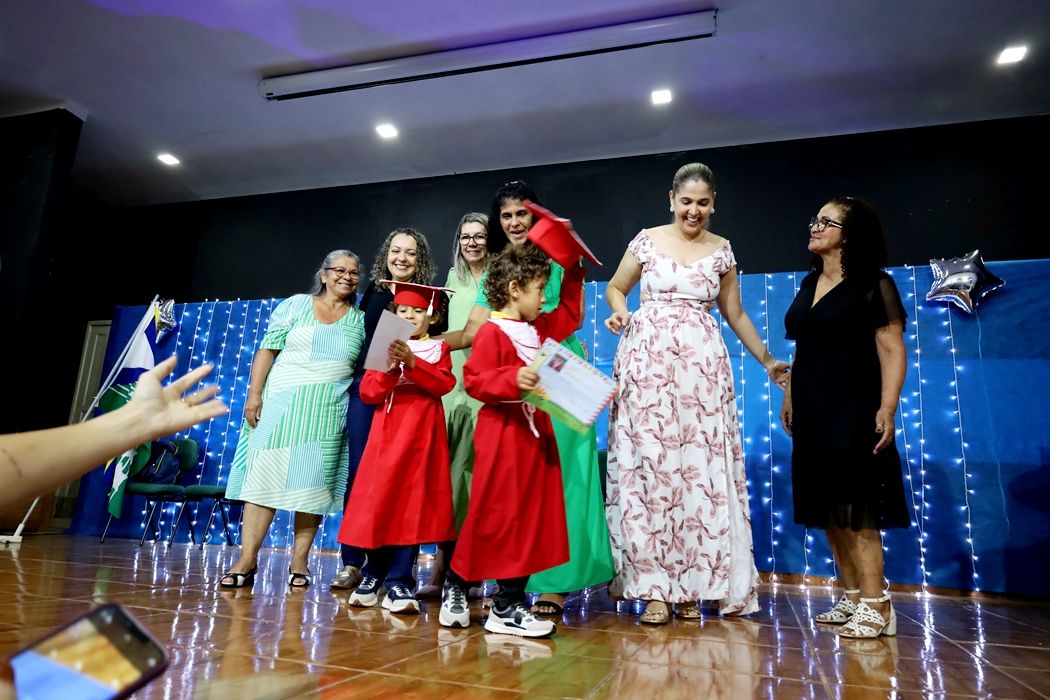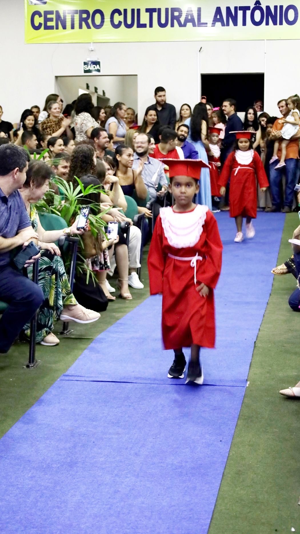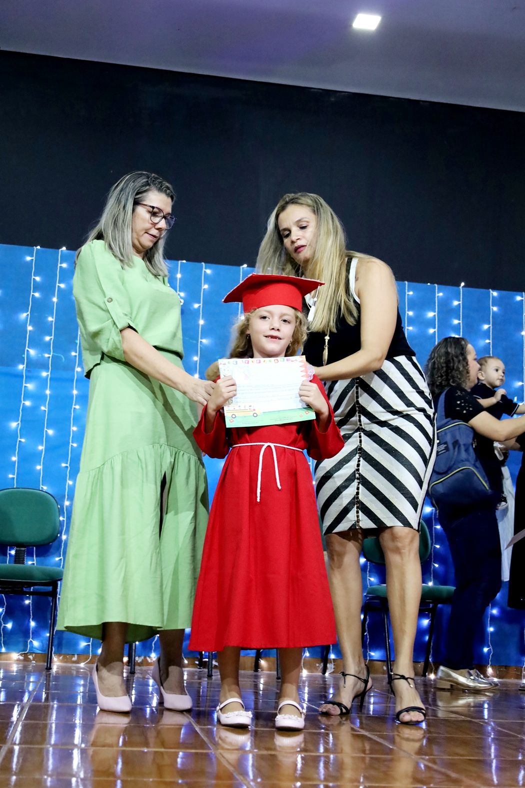 Na noite desta quinta-feira, 12 de dezembro, a Creche Betinho foi palco de uma emocionante cerimônia de formatura. O evento, que reuniu mais de 100 formandos, contou com a presença de familiares, amigos, professores e autoridades locais, incluindo a Secretária de Educação, Marcilene Rodrigues.