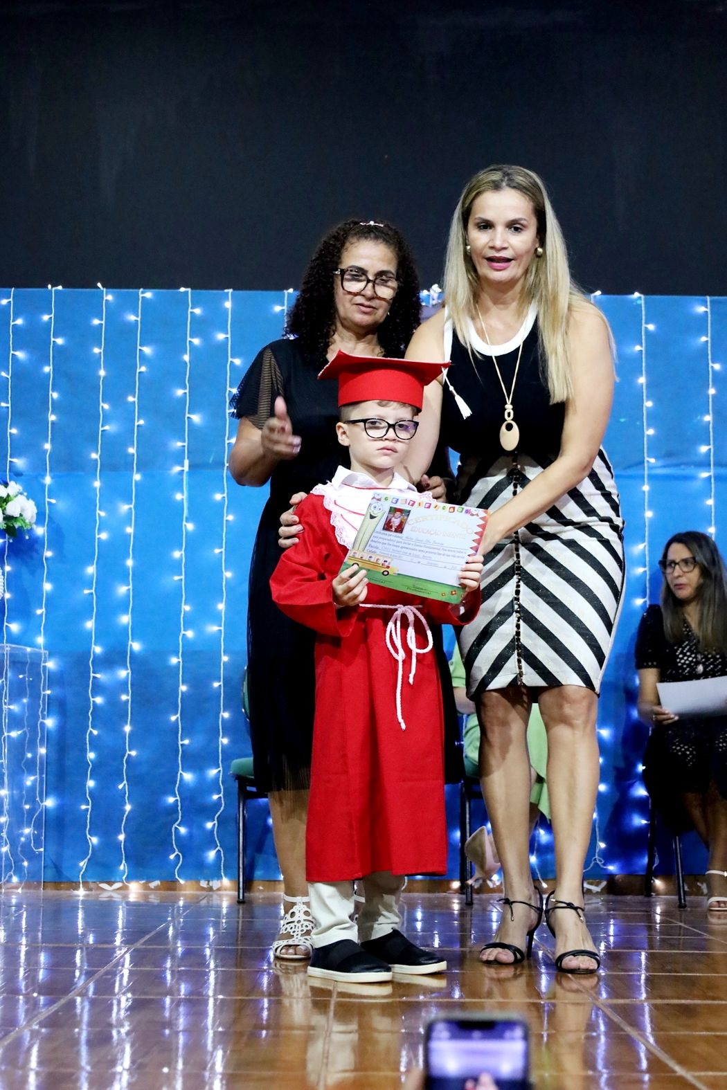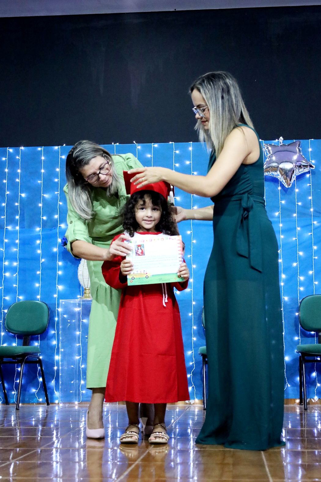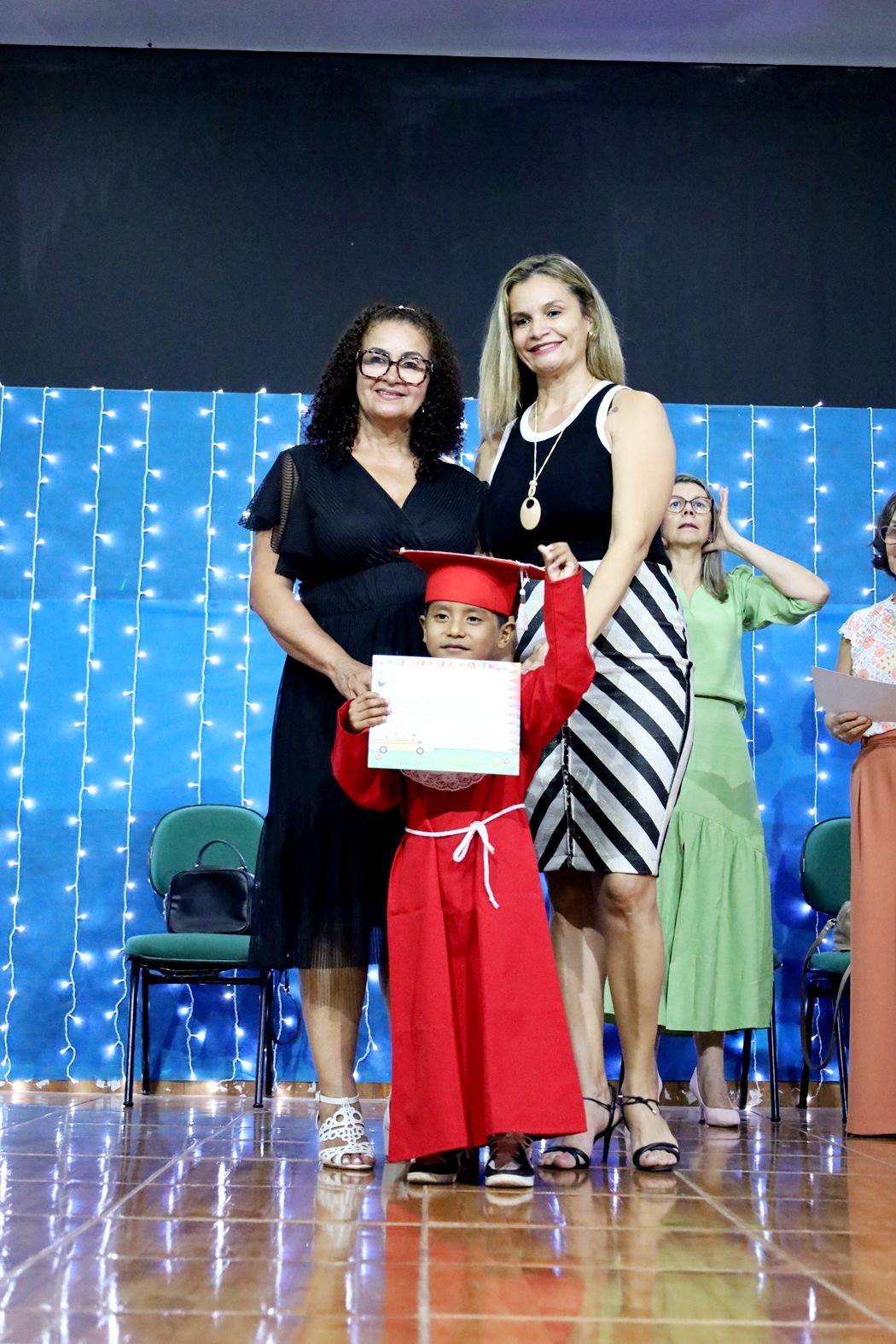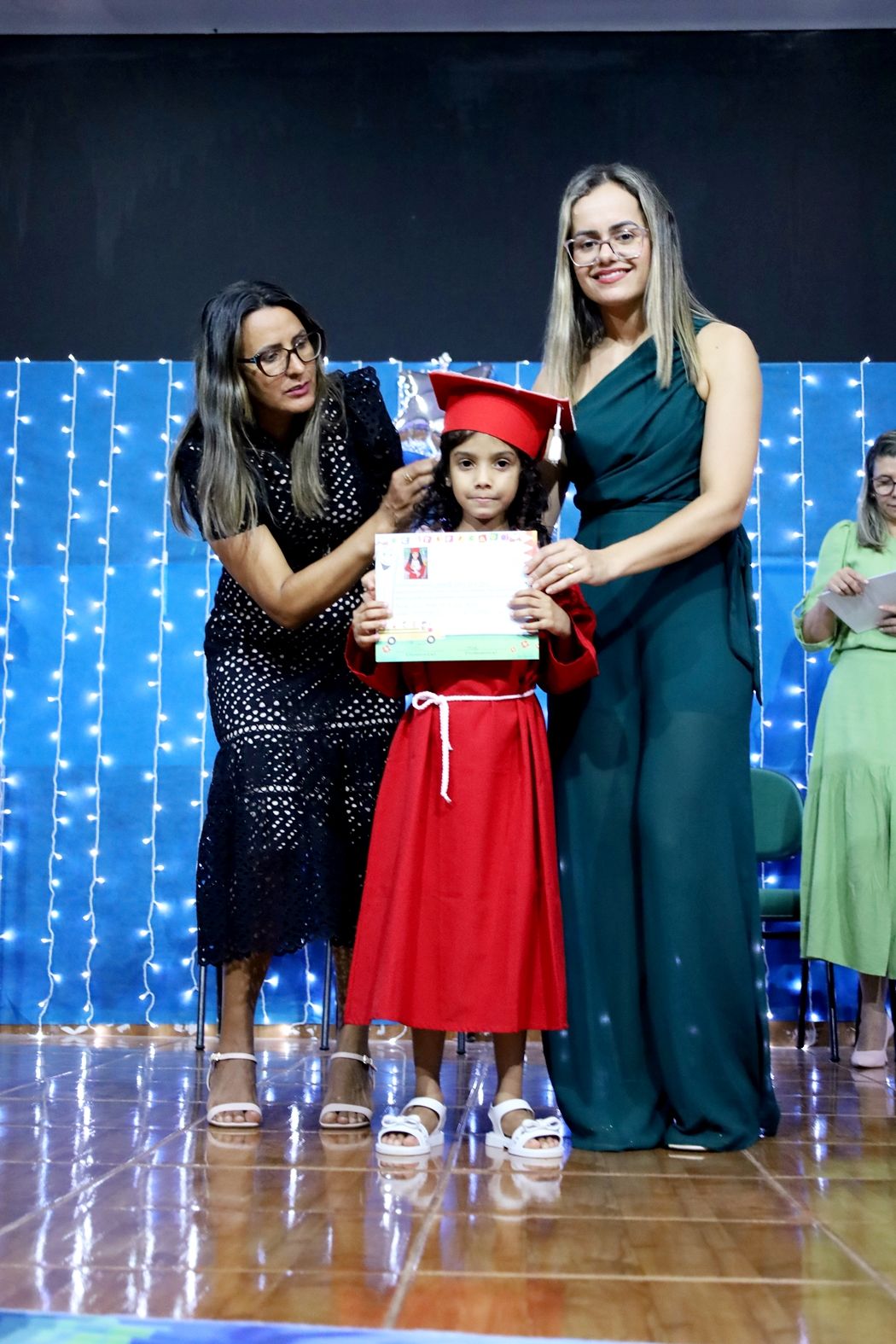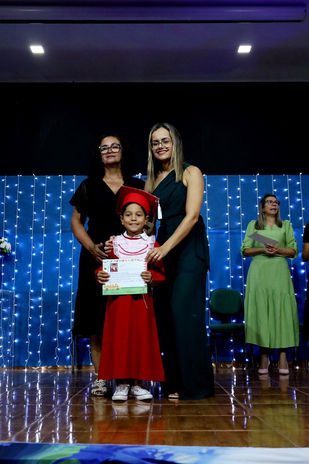 Na noite desta quinta-feira, 12 de dezembro, a Creche Betinho foi palco de uma emocionante cerimônia de formatura. O evento, que reuniu mais de 100 formandos, contou com a presença de familiares, amigos, professores e autoridades locais, incluindo a Secretária de Educação, Marcilene Rodrigues.