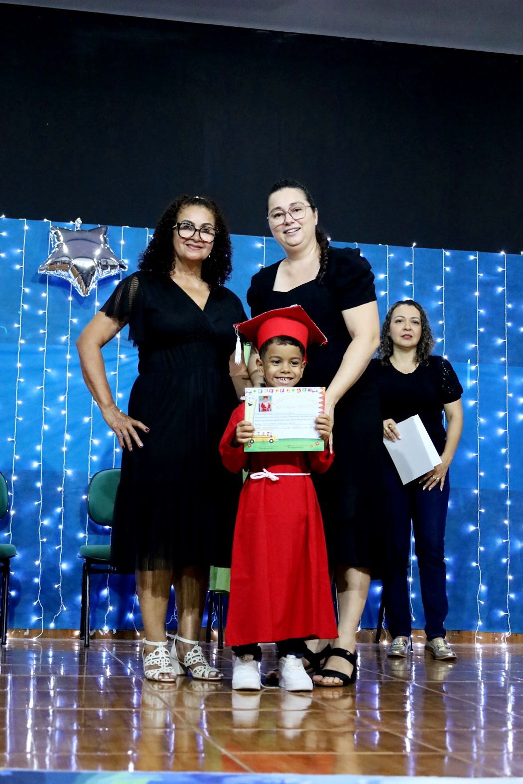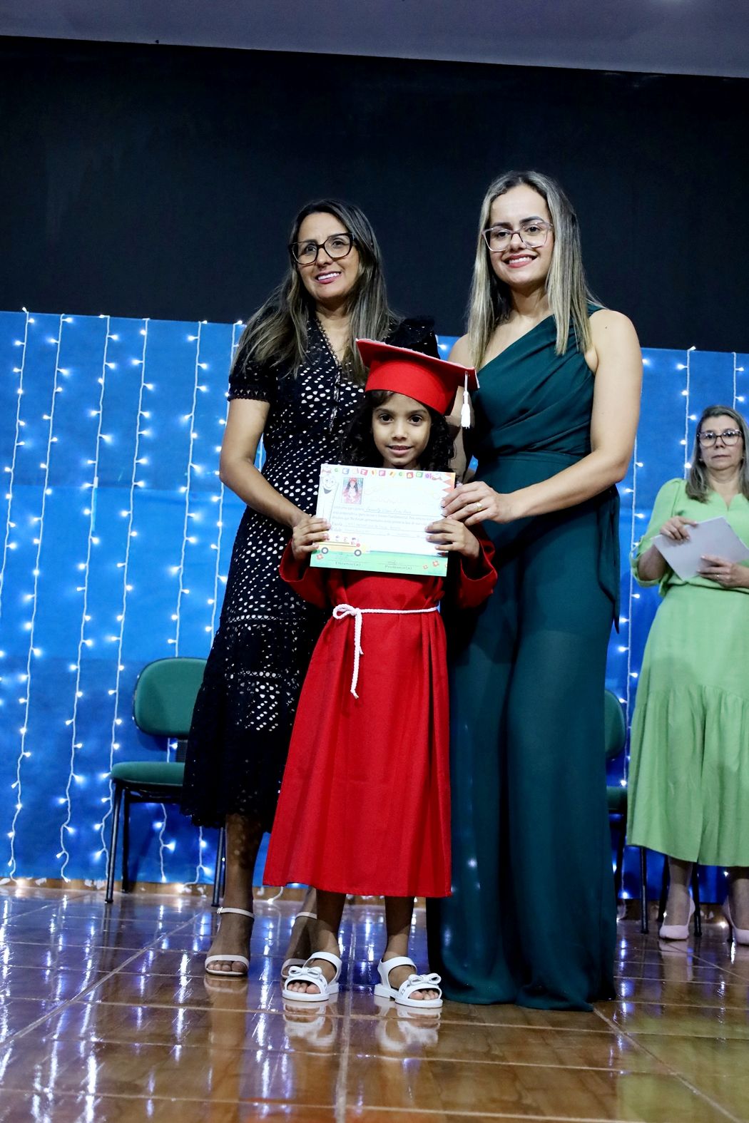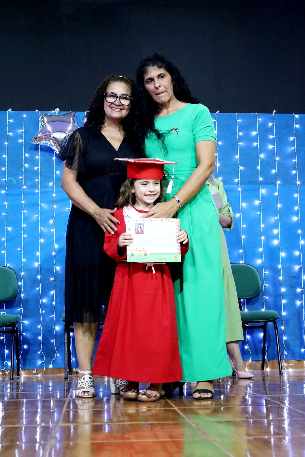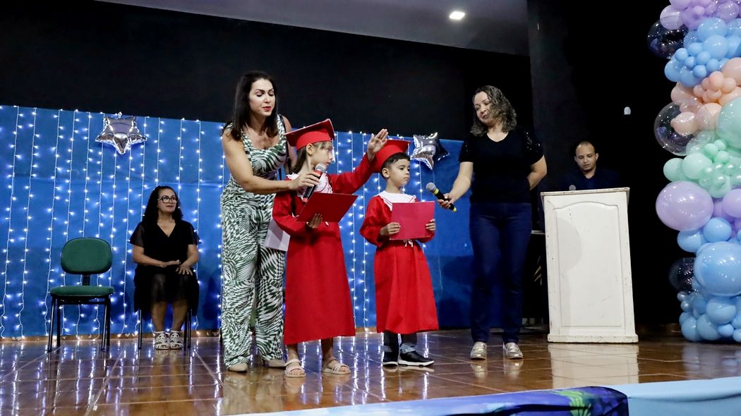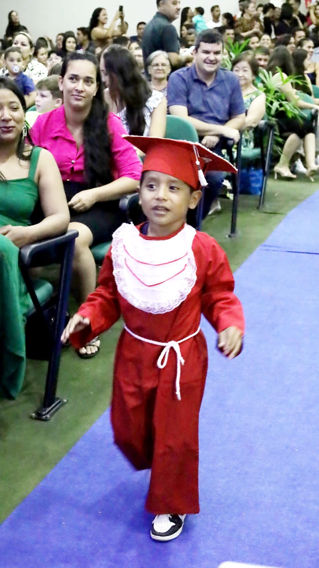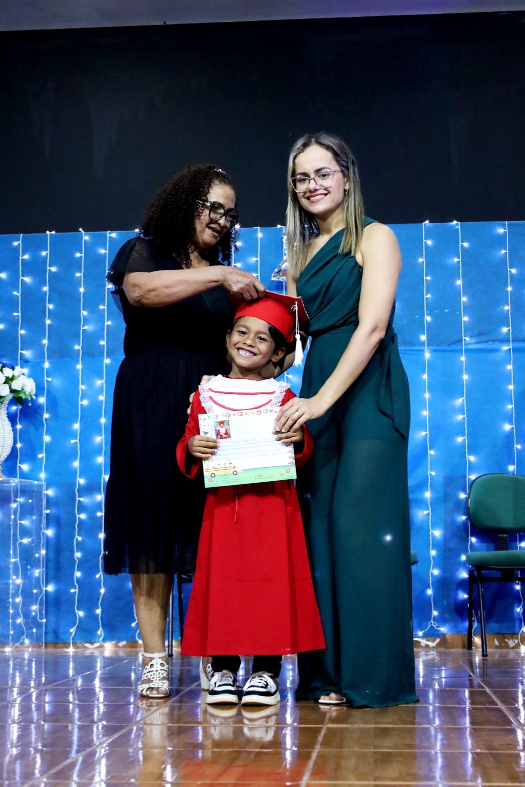 Na noite desta quinta-feira, 12 de dezembro, a Creche Betinho foi palco de uma emocionante cerimônia de formatura. O evento, que reuniu mais de 100 formandos, contou com a presença de familiares, amigos, professores e autoridades locais, incluindo a Secretária de Educação, Marcilene Rodrigues.