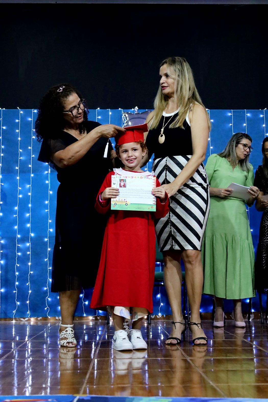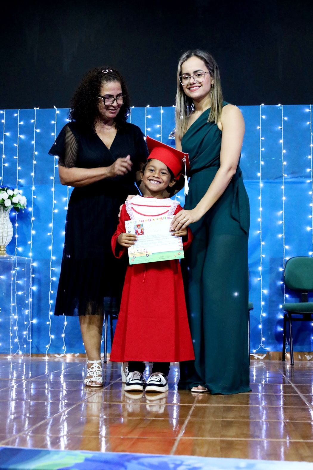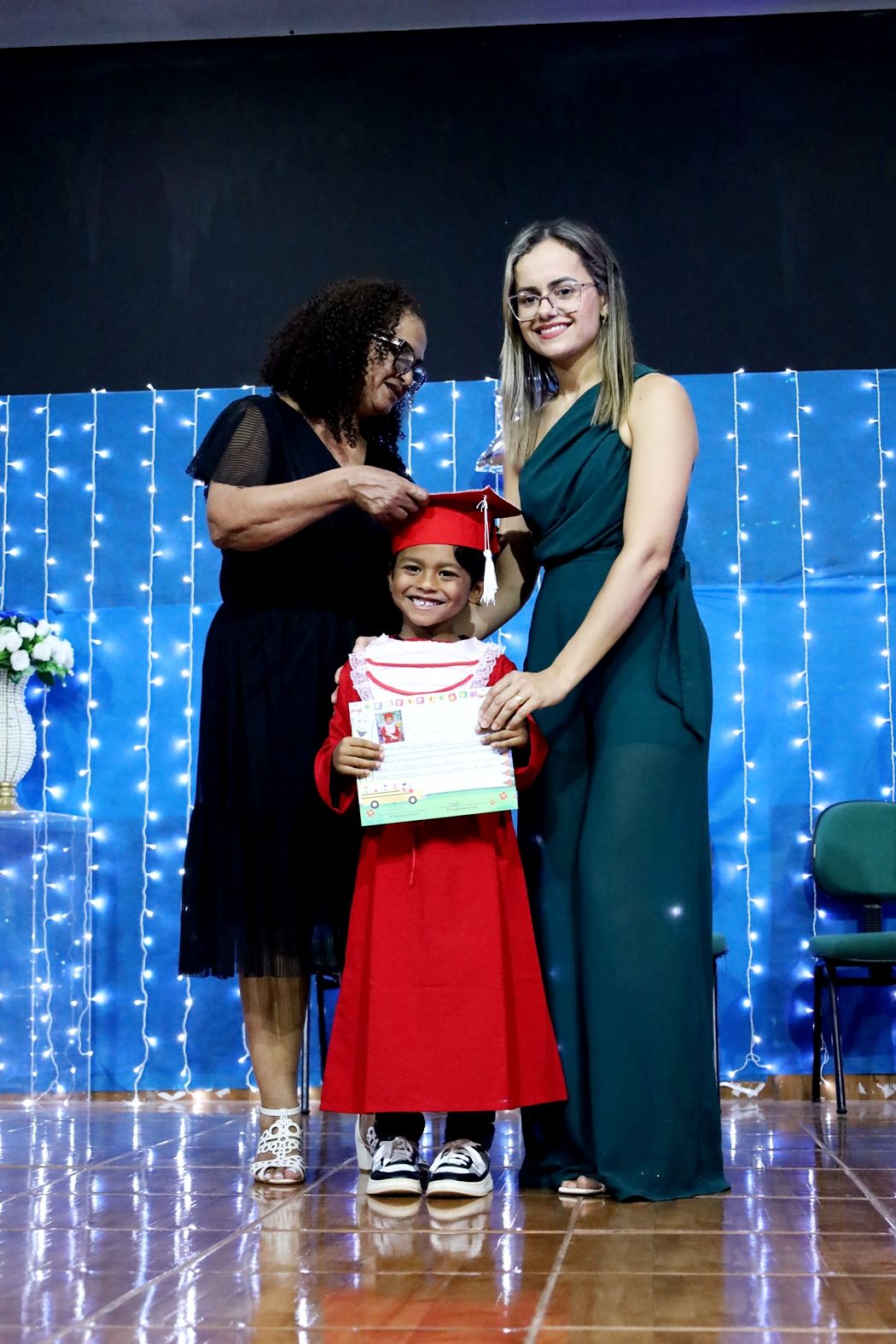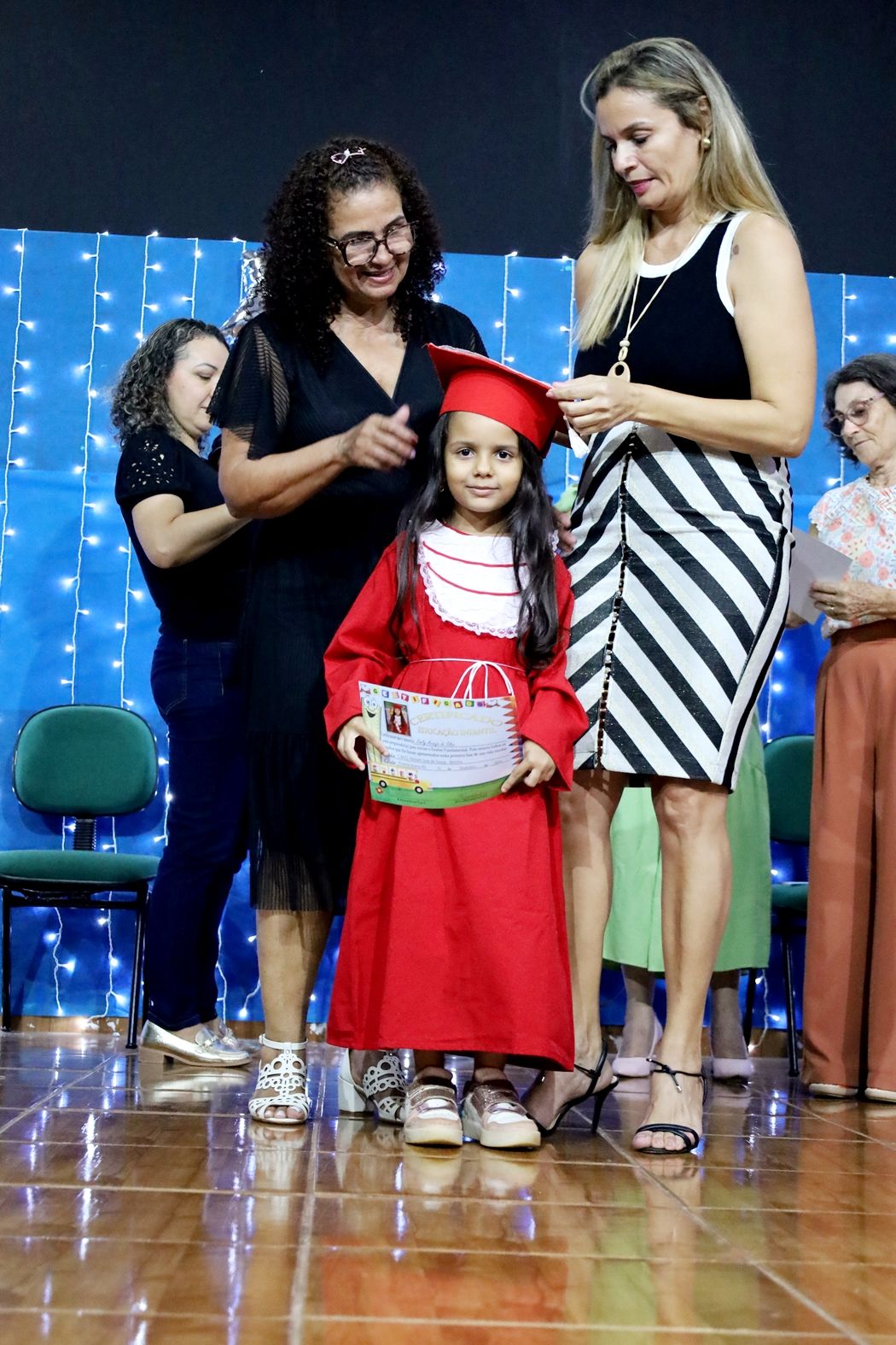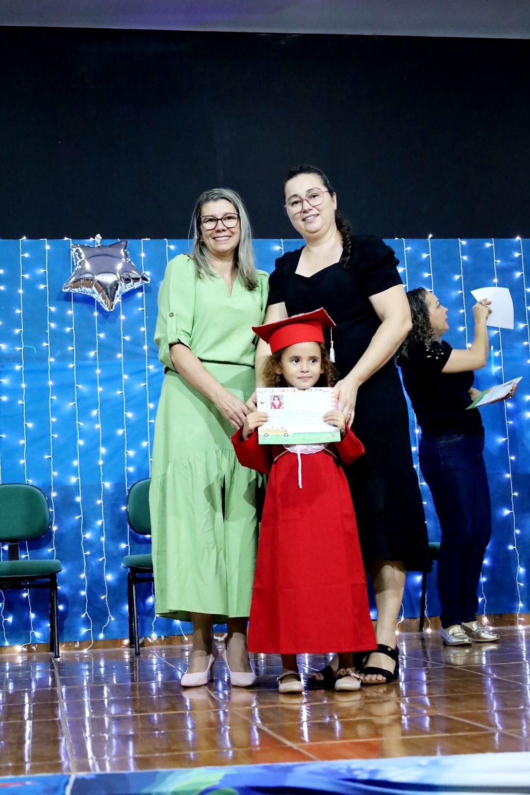 Na noite desta quinta-feira, 12 de dezembro, a Creche Betinho foi palco de uma emocionante cerimônia de formatura. O evento, que reuniu mais de 100 formandos, contou com a presença de familiares, amigos, professores e autoridades locais, incluindo a Secretária de Educação, Marcilene Rodrigues.