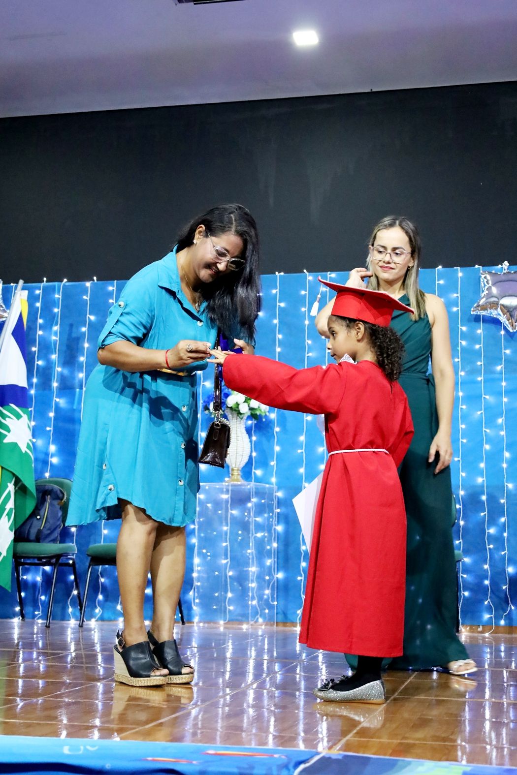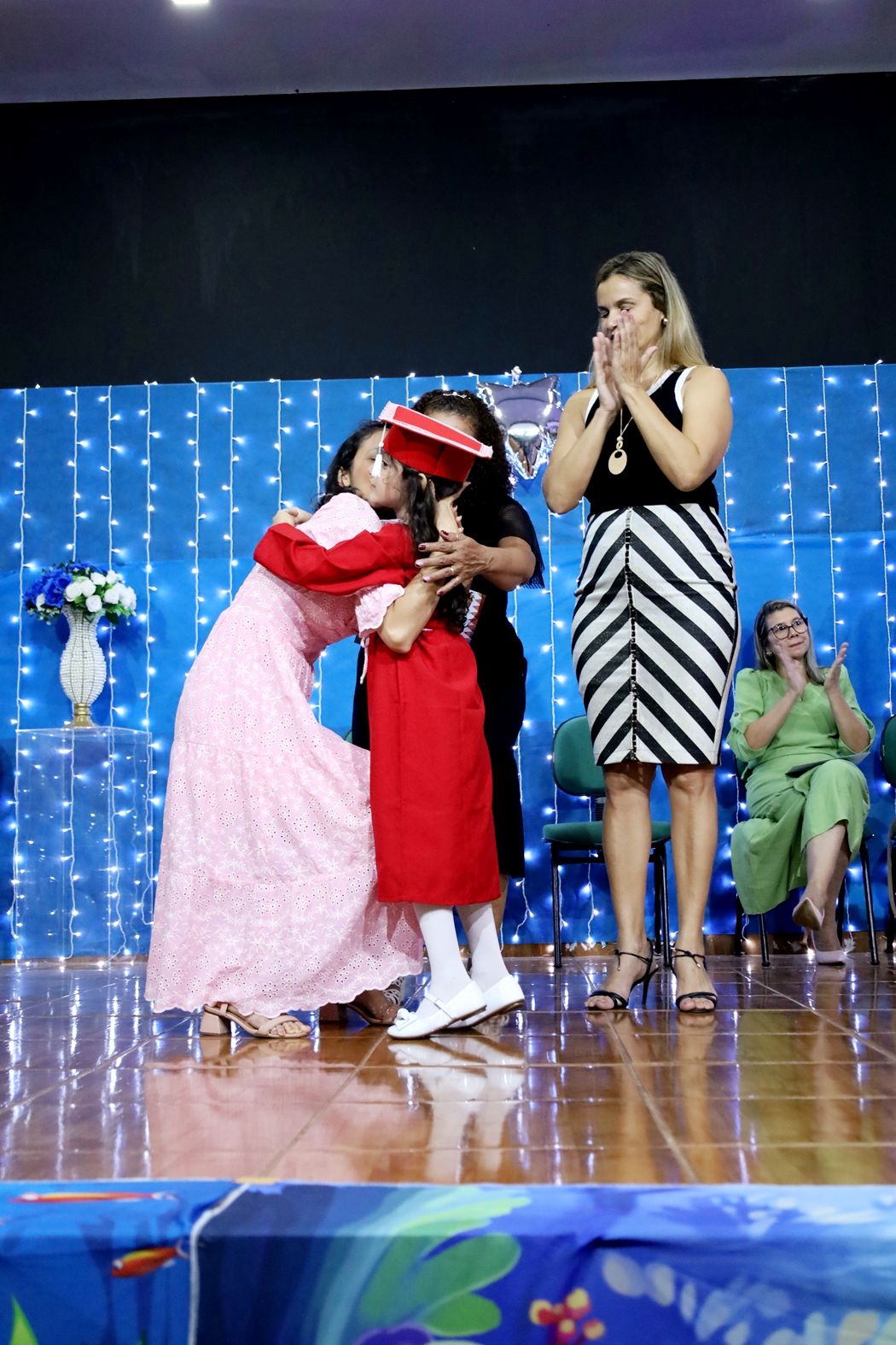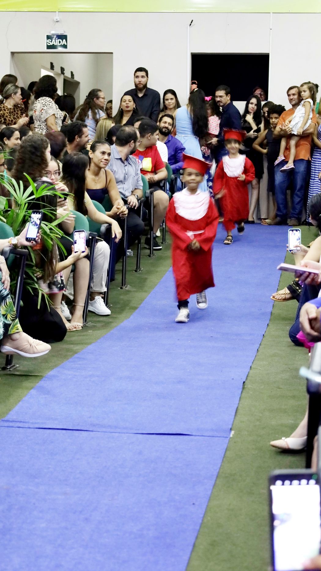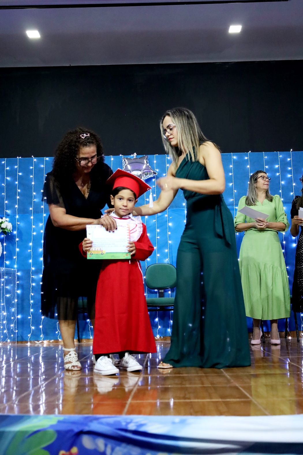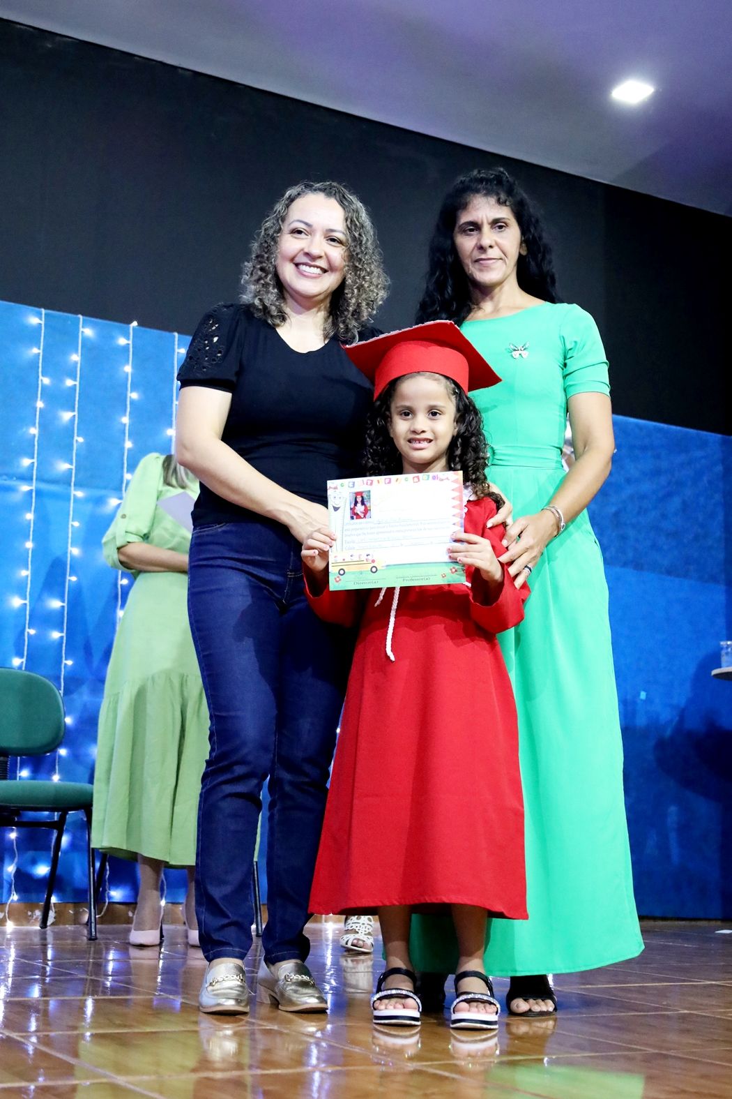 Na noite desta quinta-feira, 12 de dezembro, a Creche Betinho foi palco de uma emocionante cerimônia de formatura. O evento, que reuniu mais de 100 formandos, contou com a presença de familiares, amigos, professores e autoridades locais, incluindo a Secretária de Educação, Marcilene Rodrigues.