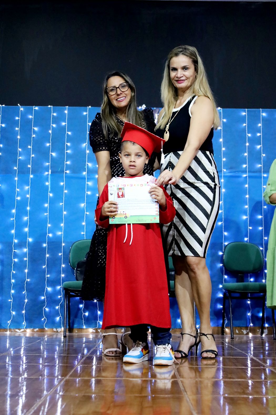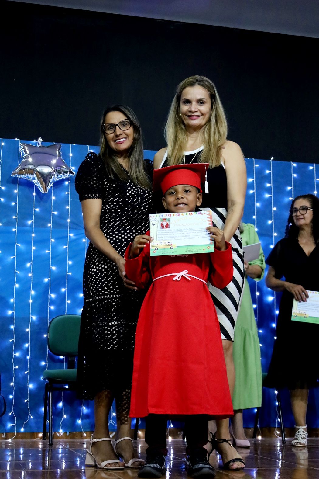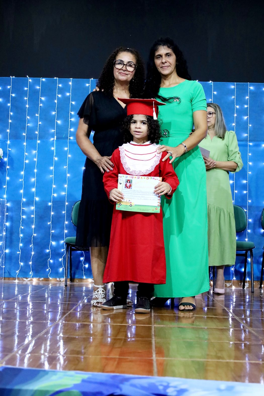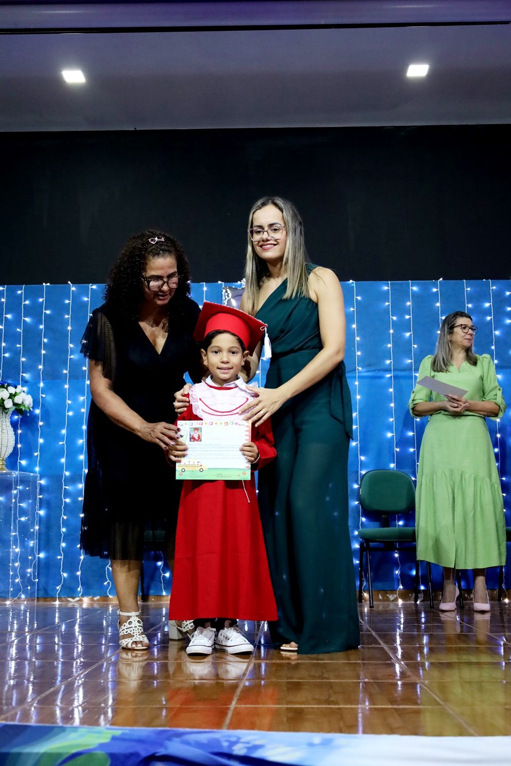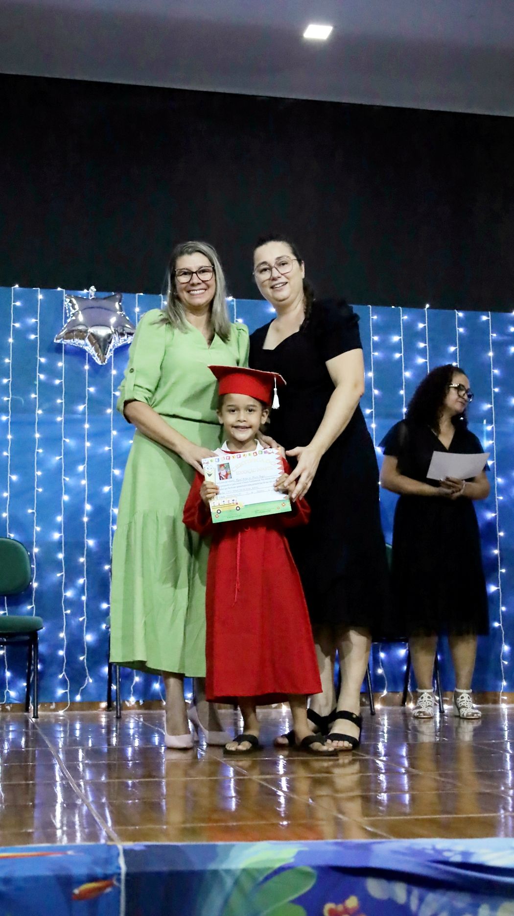 Na noite desta quinta-feira, 12 de dezembro, a Creche Betinho foi palco de uma emocionante cerimônia de formatura. O evento, que reuniu mais de 100 formandos, contou com a presença de familiares, amigos, professores e autoridades locais, incluindo a Secretária de Educação, Marcilene Rodrigues.