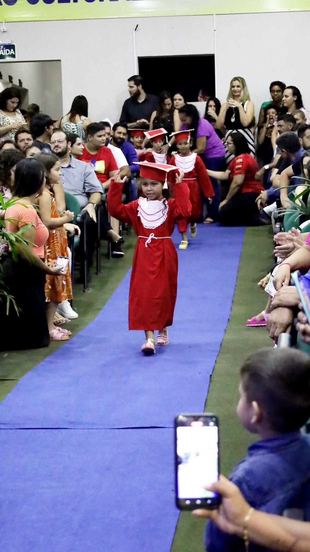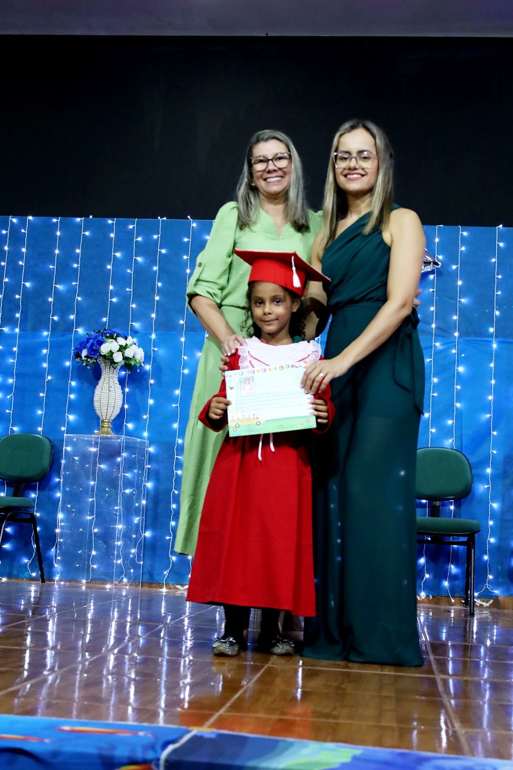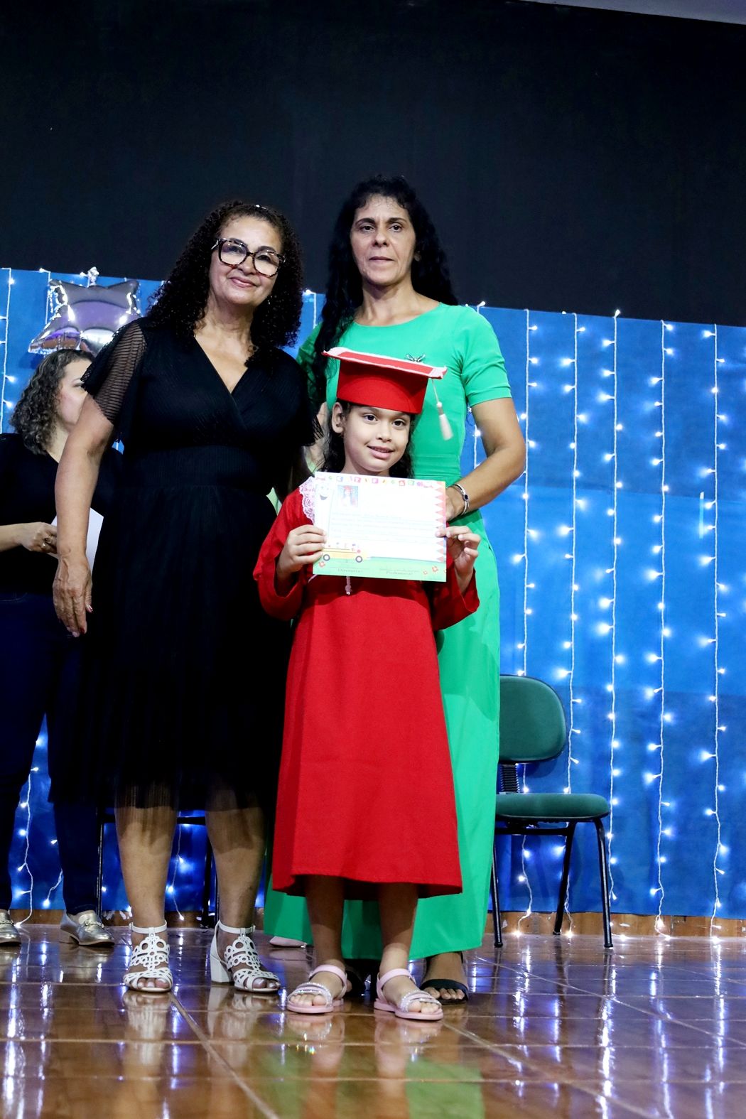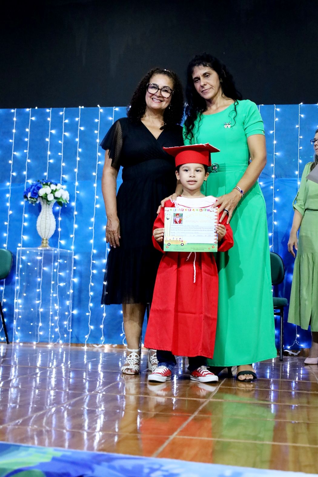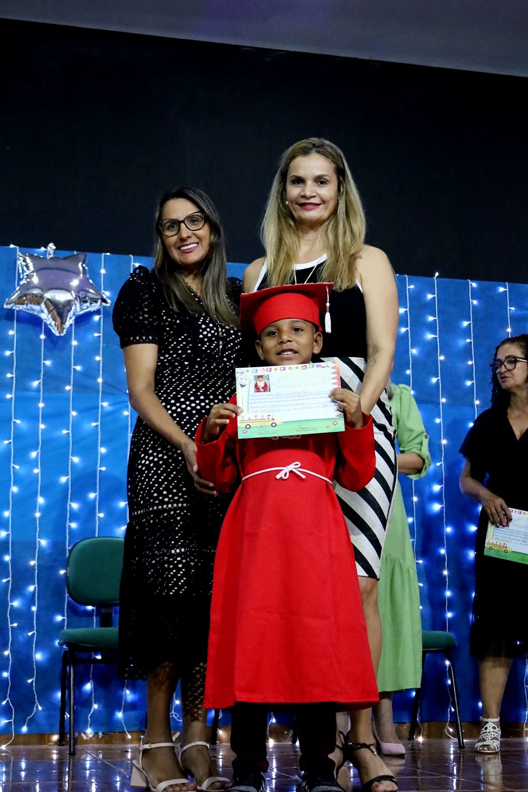 Na noite desta quinta-feira, 12 de dezembro, a Creche Betinho foi palco de uma emocionante cerimônia de formatura. O evento, que reuniu mais de 100 formandos, contou com a presença de familiares, amigos, professores e autoridades locais, incluindo a Secretária de Educação, Marcilene Rodrigues.